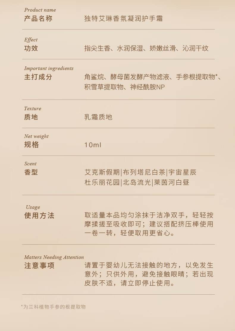 独特艾琳(Dear lrean)联名款香氛沐浴露护手霜礼盒手膜保湿补水中小样便携体验旅行装 香氛凝润护手霜35ml*2(香味随机)