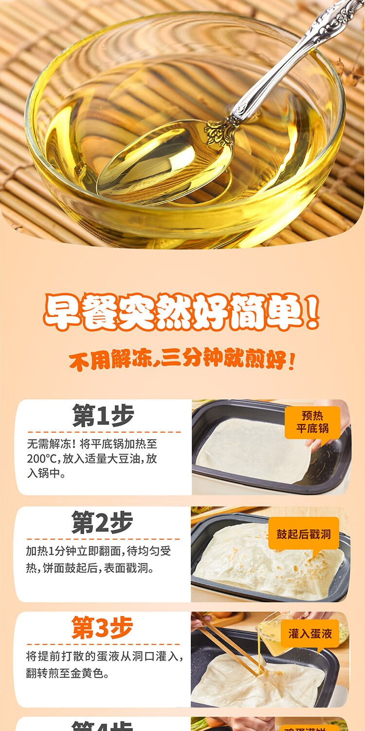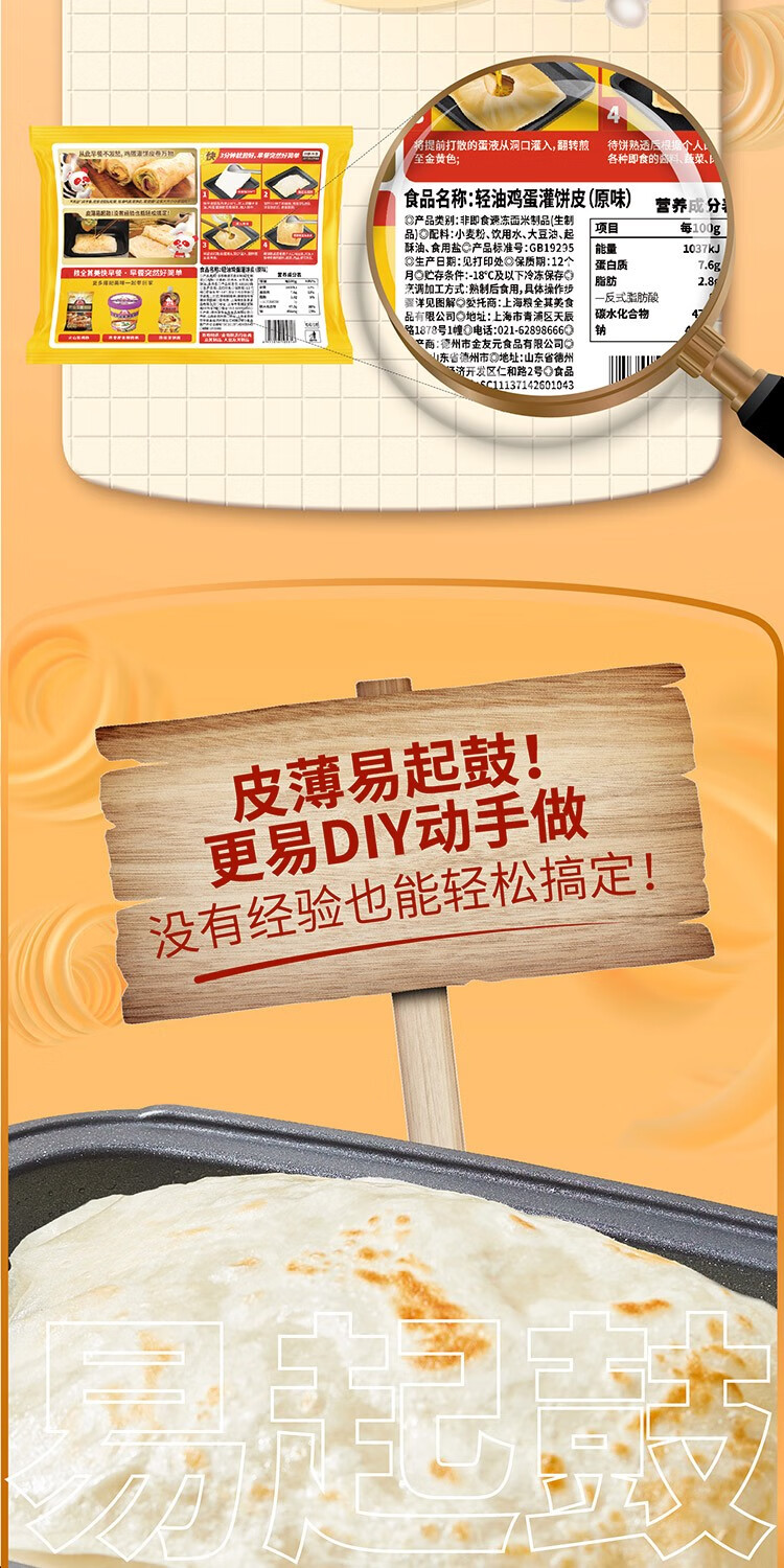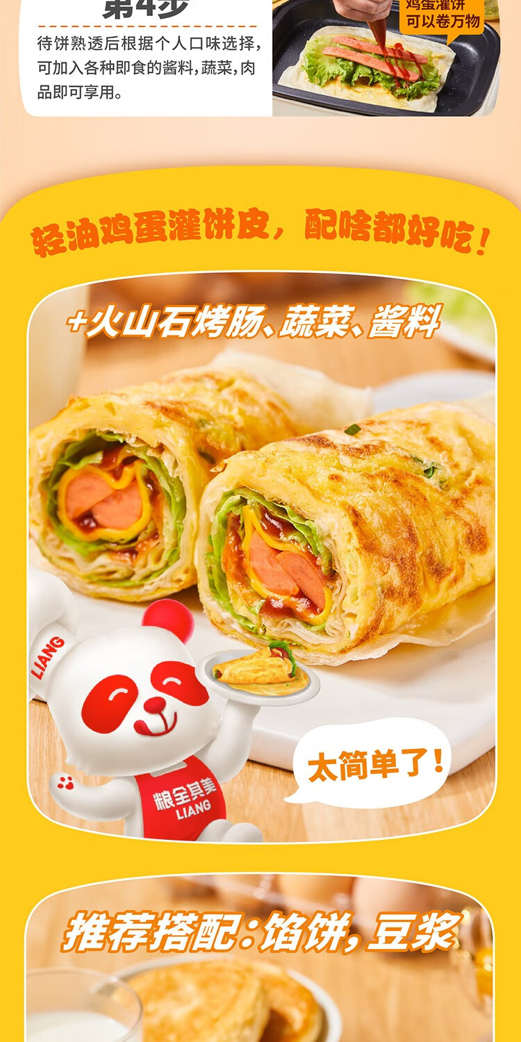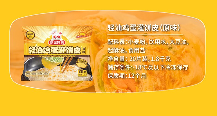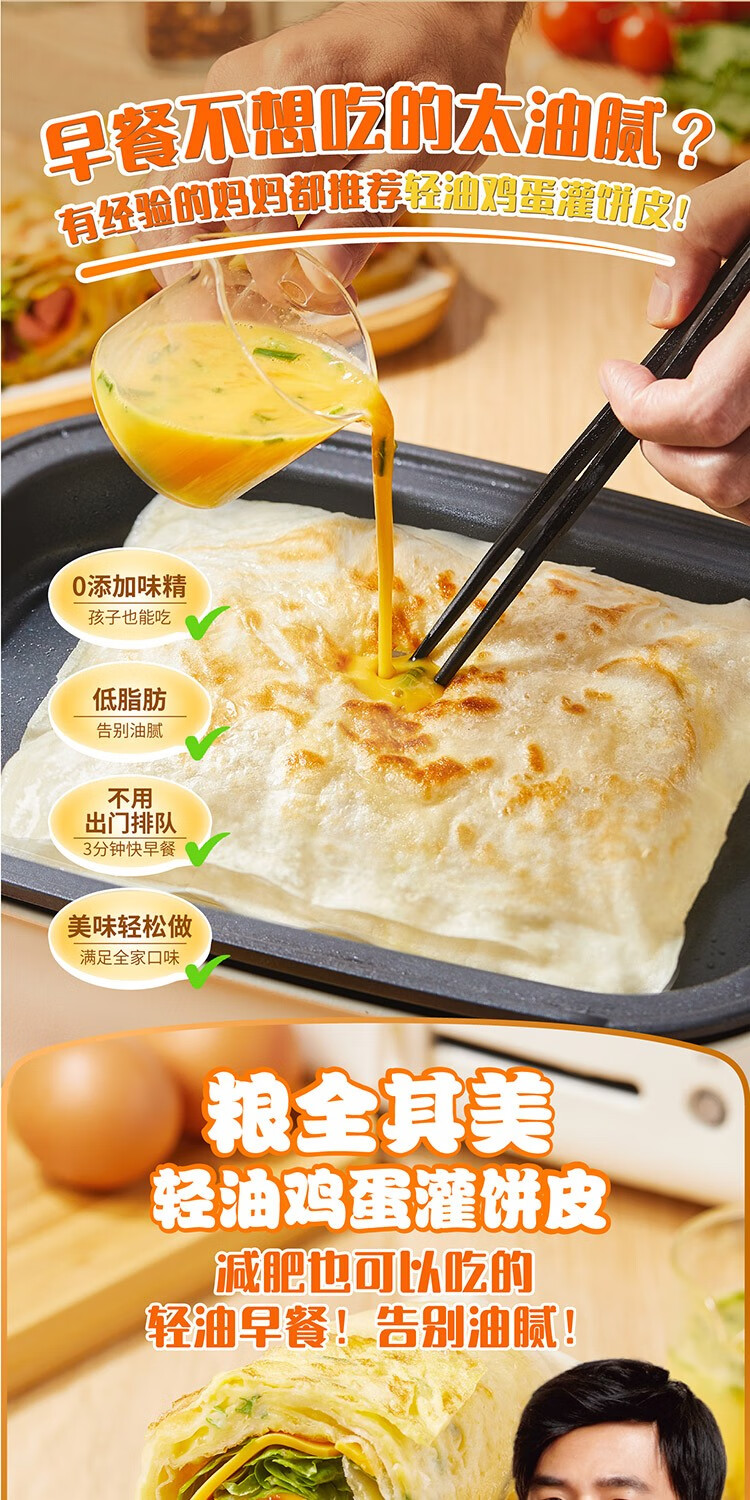 粮全其美 轻油鸡蛋灌饼 饼皮 家庭装儿童营养早餐食品半成品速食 鸡蛋灌饼90g*20片
