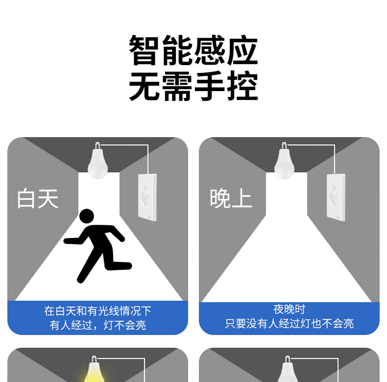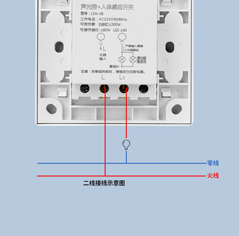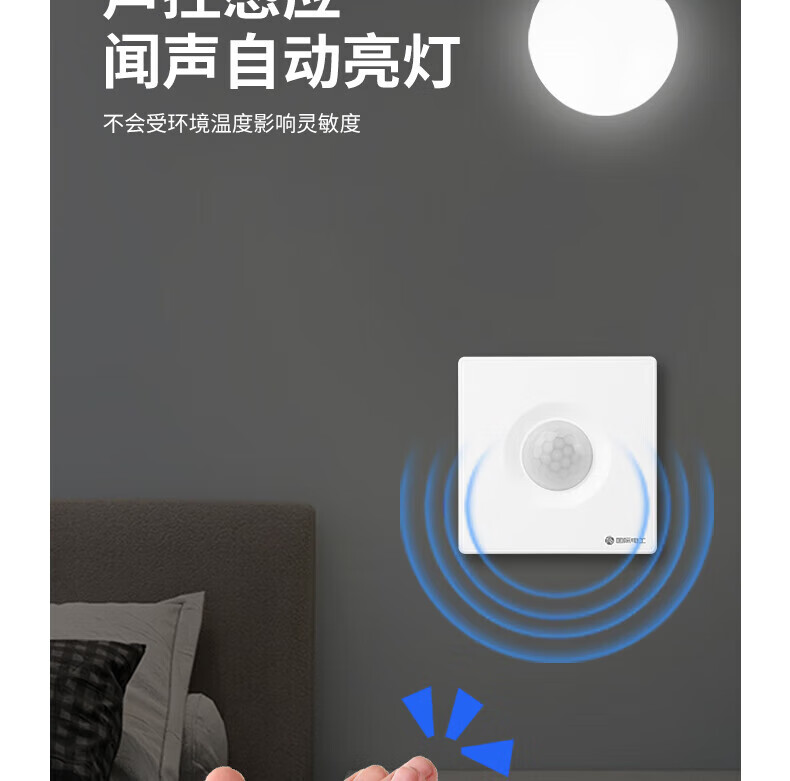 国际电工86型延时声光控人体感应开关LED灯高灵敏220v可调楼道走廊 86型暗装【声光控+人体感应】白