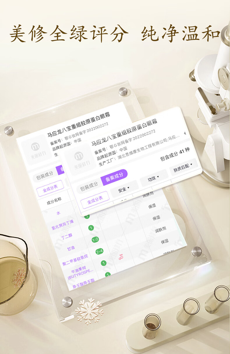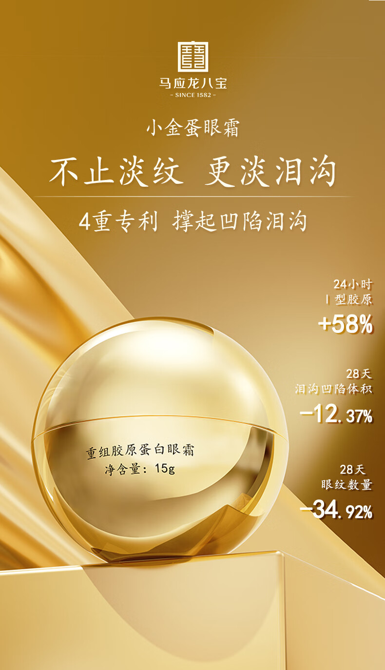马应龙八宝重组胶原蛋白眼霜15g淡化细纹紧致改善泪沟胶原蛋白淡纹修护 1盒