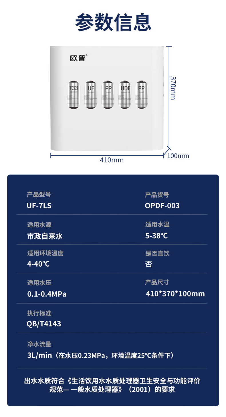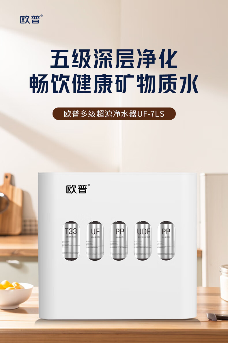 欧普照明净水器家用厨房自来水前置过滤器超滤净水机箱式净化器 欧普照明水龙头大流量 缓垢除氯UF-7LS 厨下超滤机