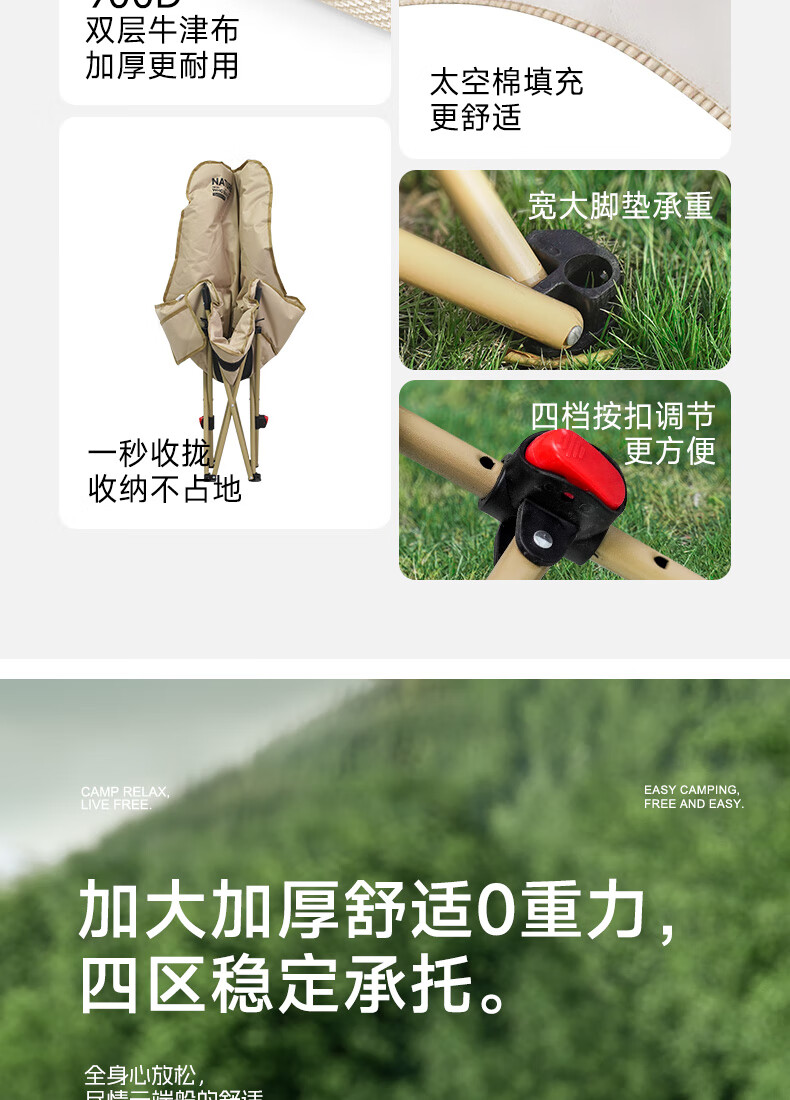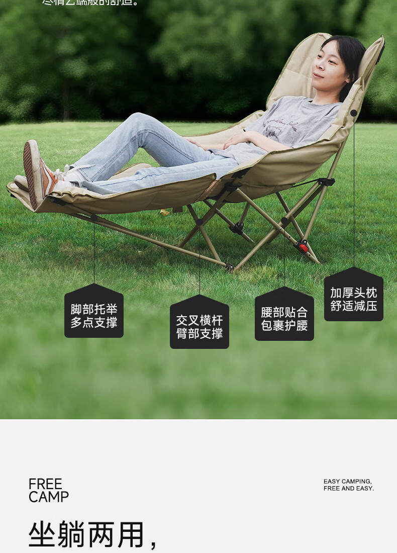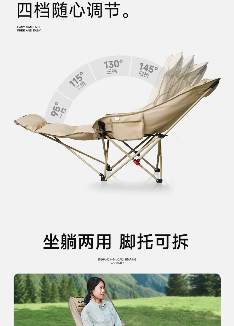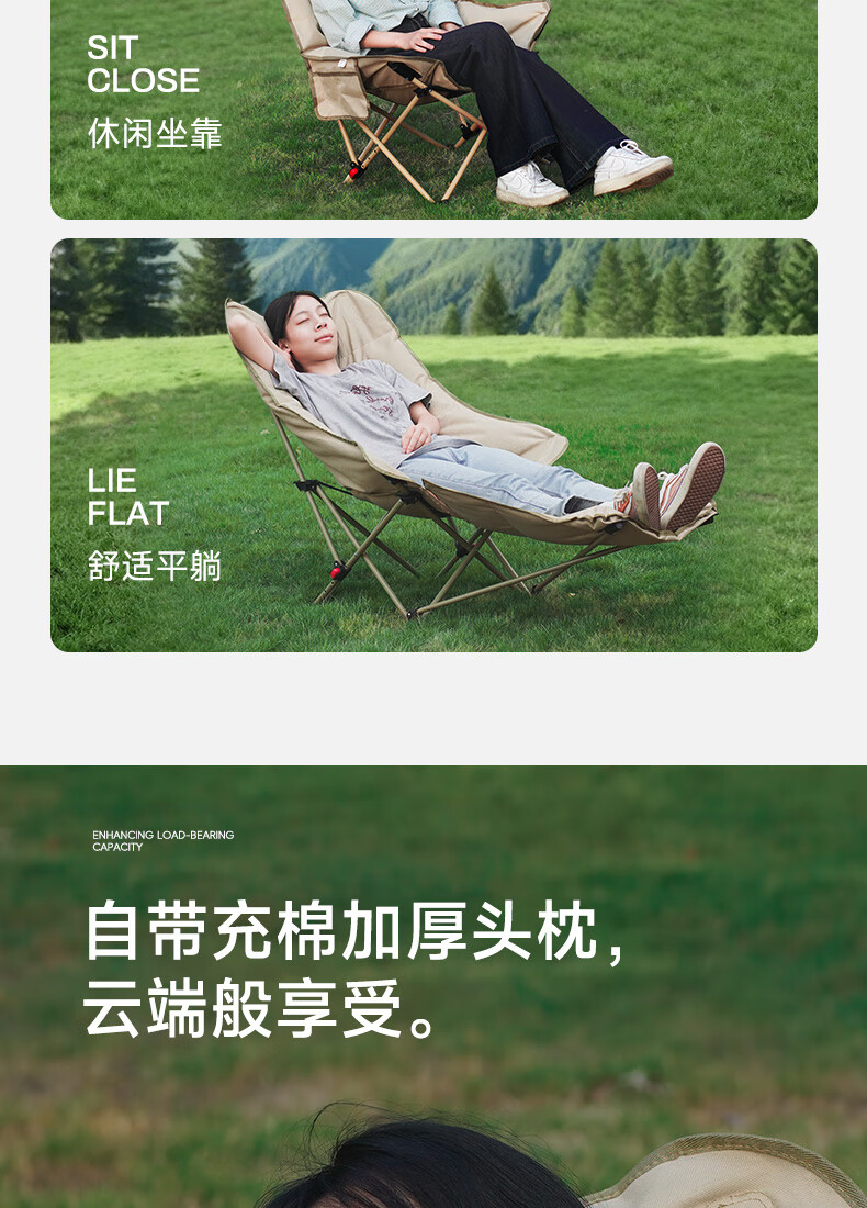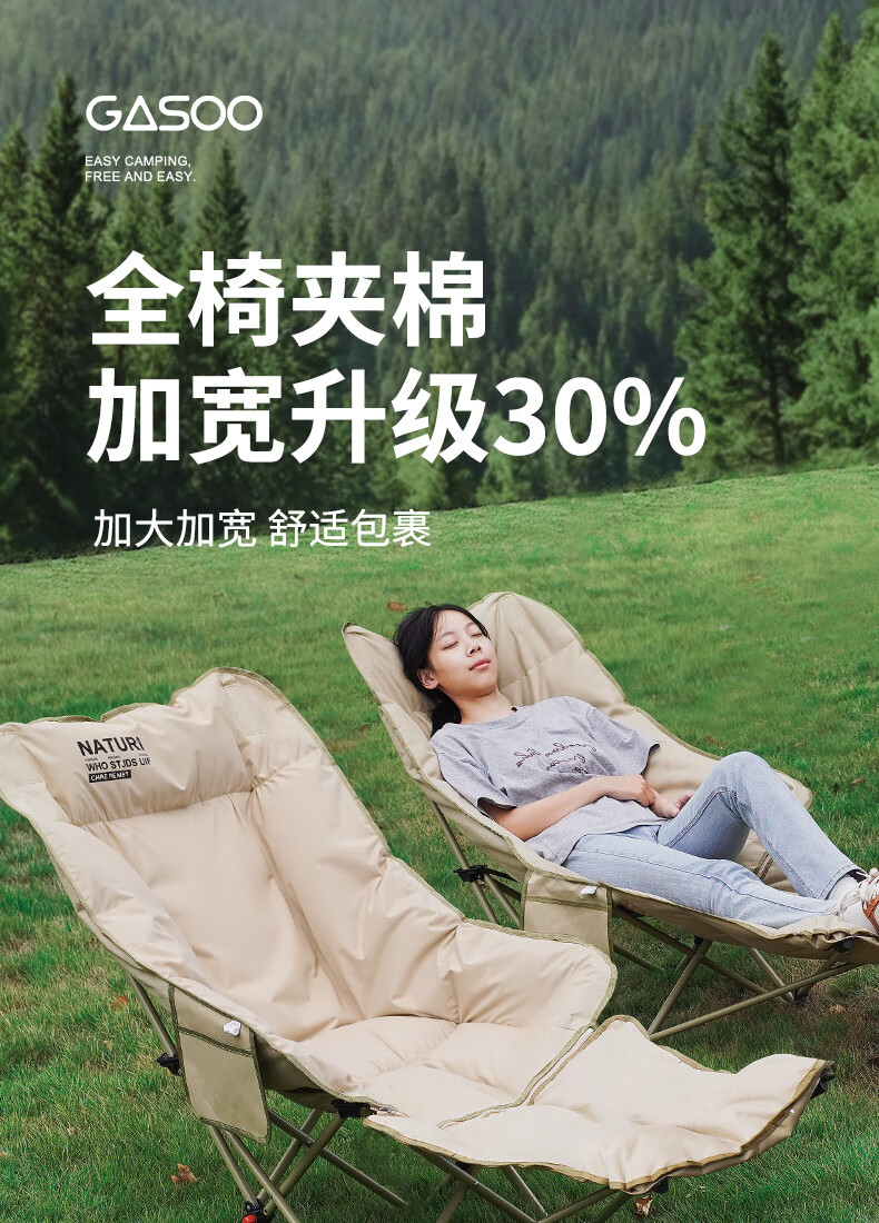 gosoo躺椅午睡椅一体户外折叠椅露营椅子加棉月亮椅可躺可睡午休折叠床