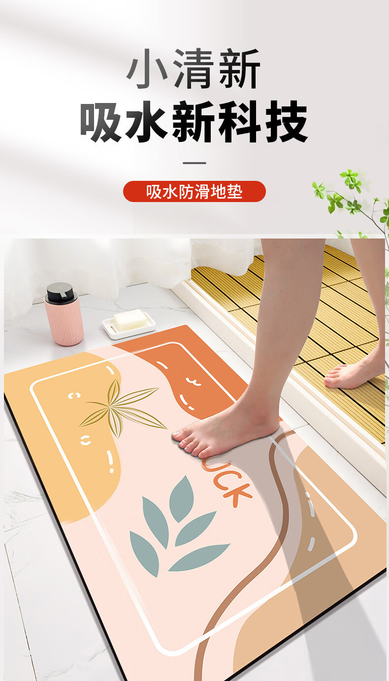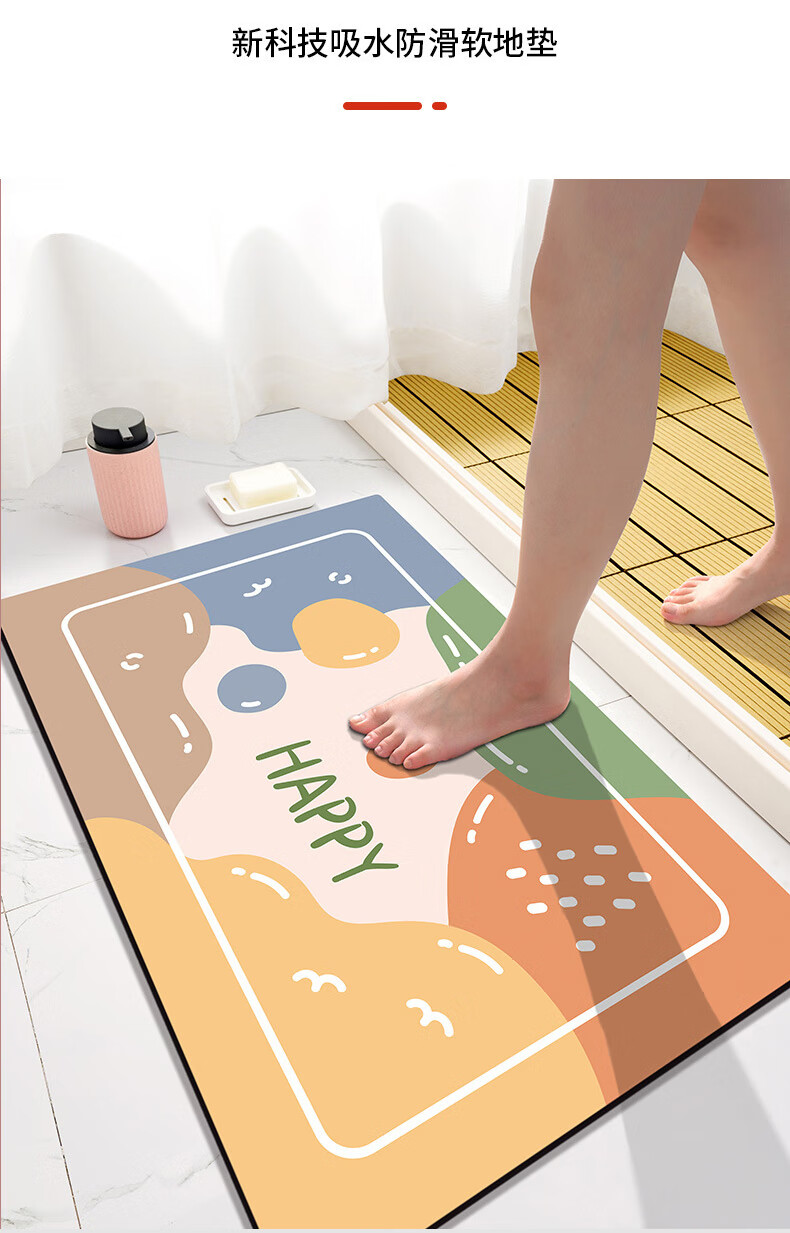 金玉铭川浴室地垫加厚家用入户厕所卫生间门口吸水脚垫卫浴洗手间防滑垫子 GZN-快乐-紫 60X90cm【Q弹柔软防潮】