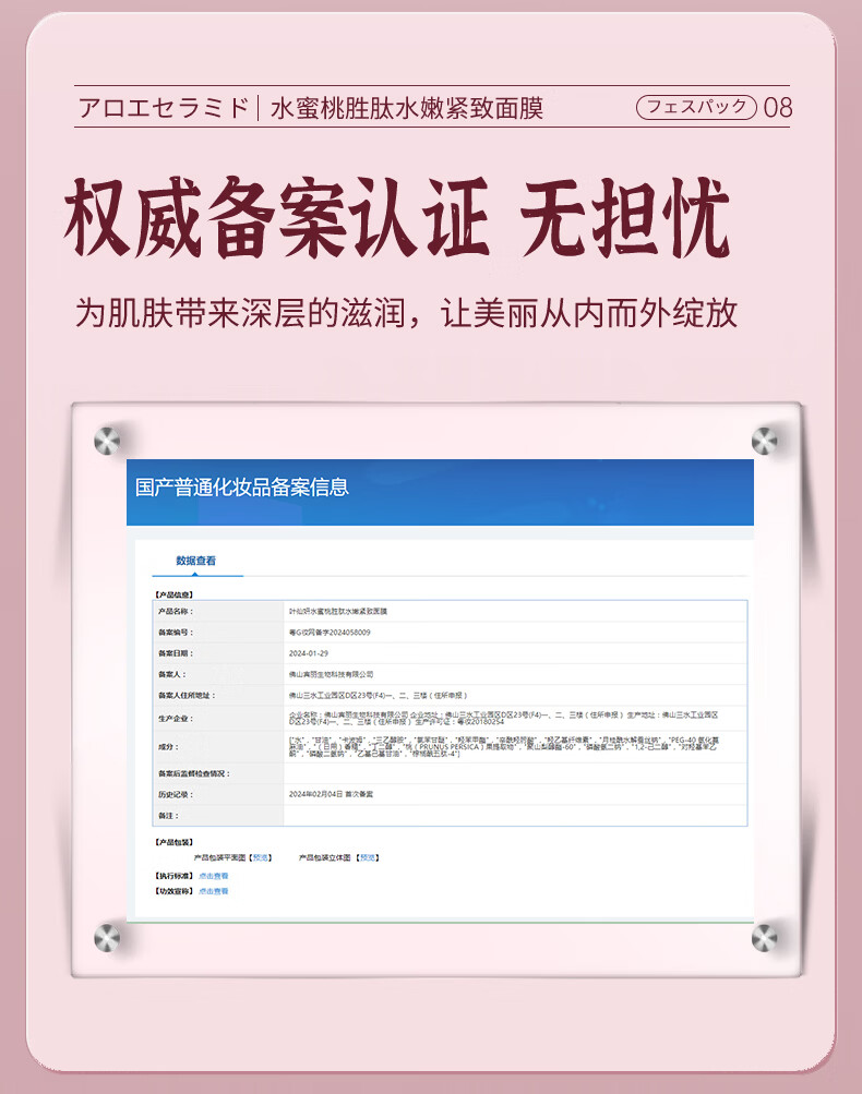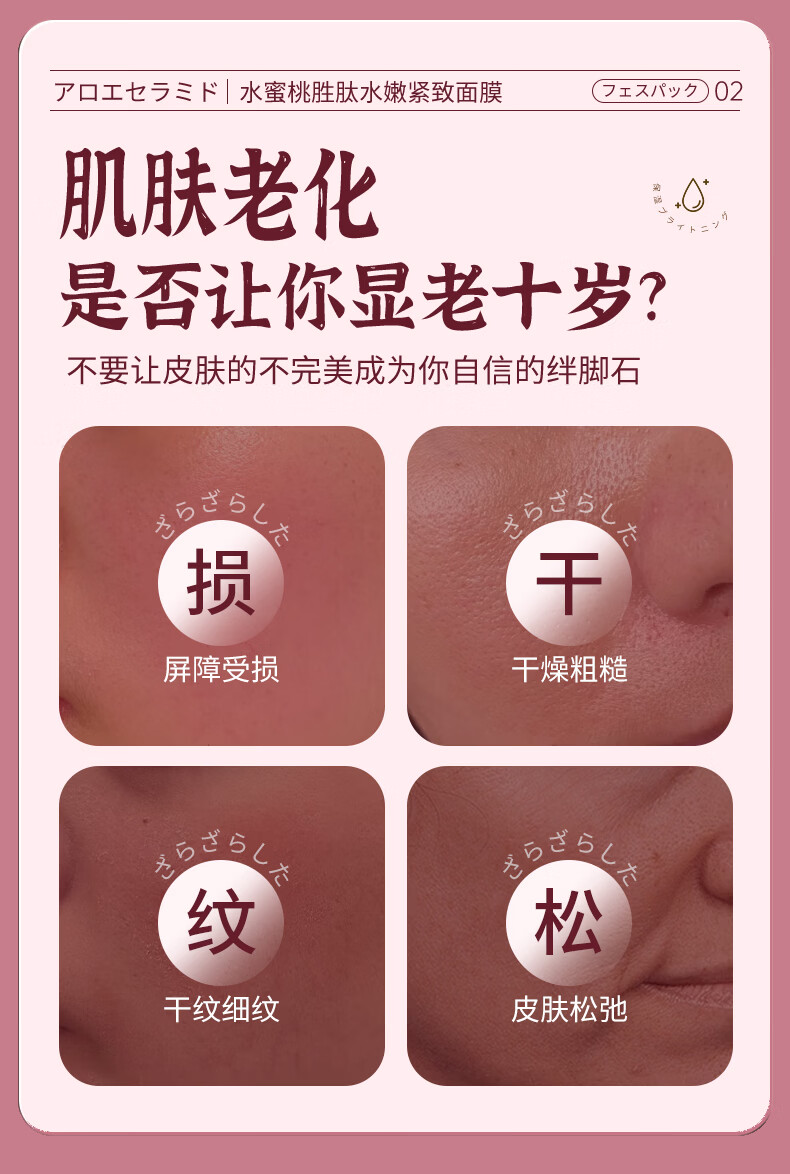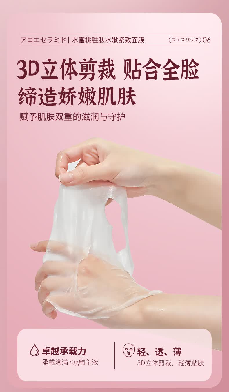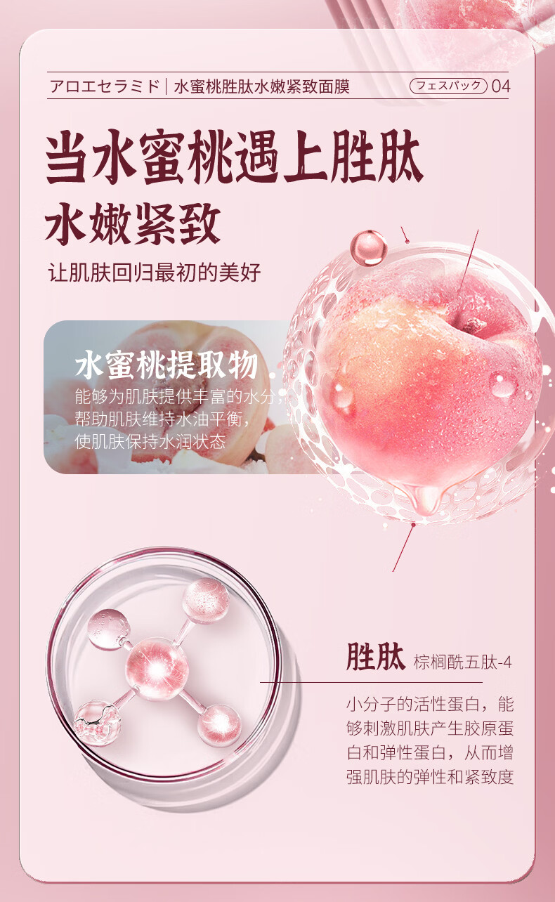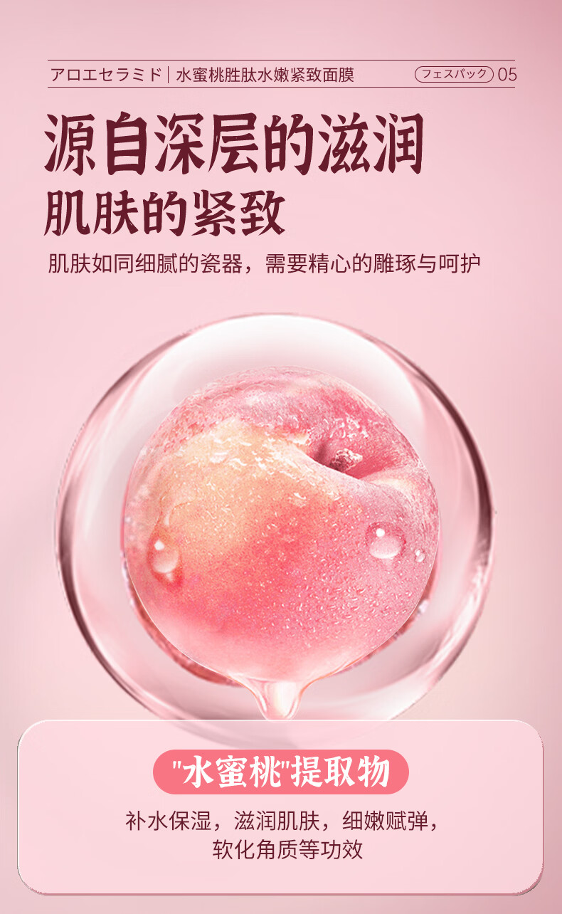 叶仙妍面膜水蜜桃胜肽水嫩紧致30g片装保湿抗皱紧致肌肤面膜 30g*5片