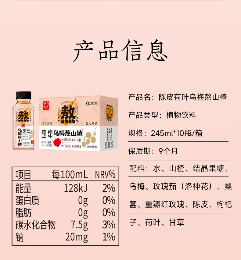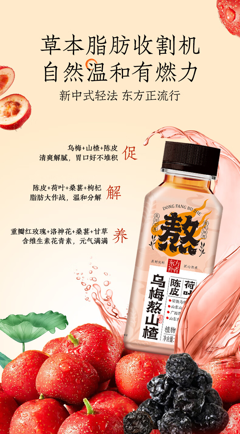 轻上陈皮荷叶乌梅熬山楂植物饮品中医院乌梅汤解渴饮料 荔枝汁245ml*10瓶-