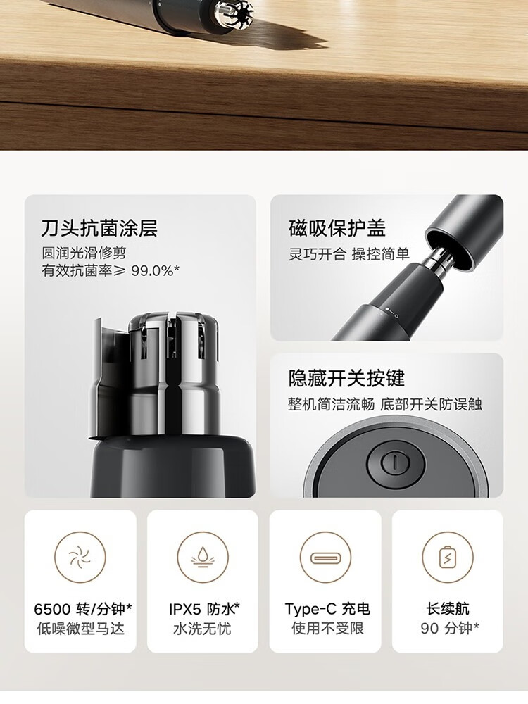米家米家鼻毛修剪器 便携迷你 磁吸解压刀头盖 鼻毛修剪刀 鼻毛剪鼻孔清洁器节日礼物