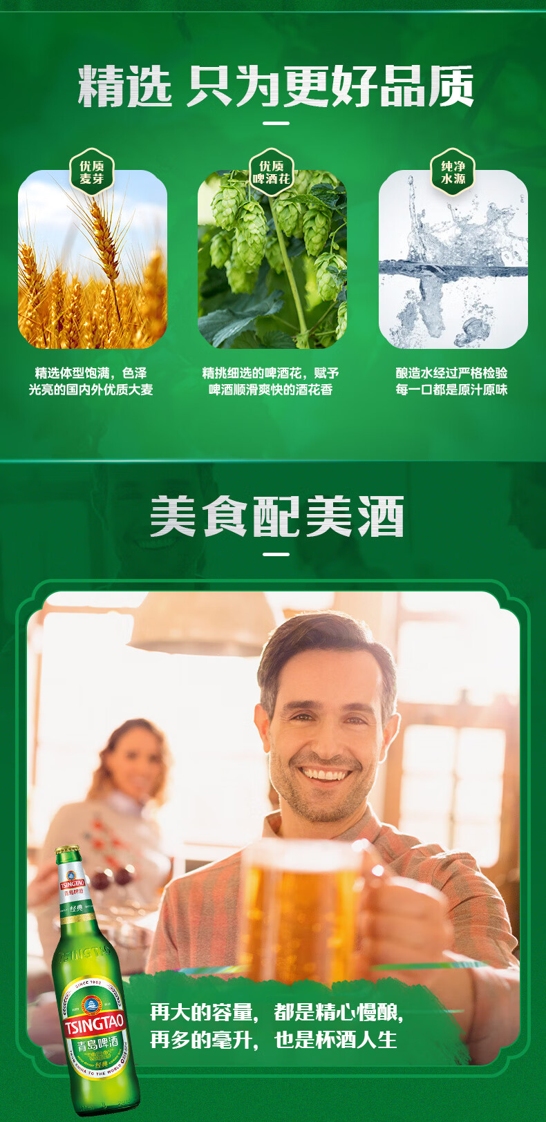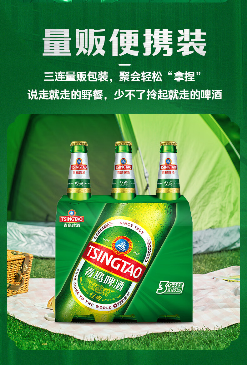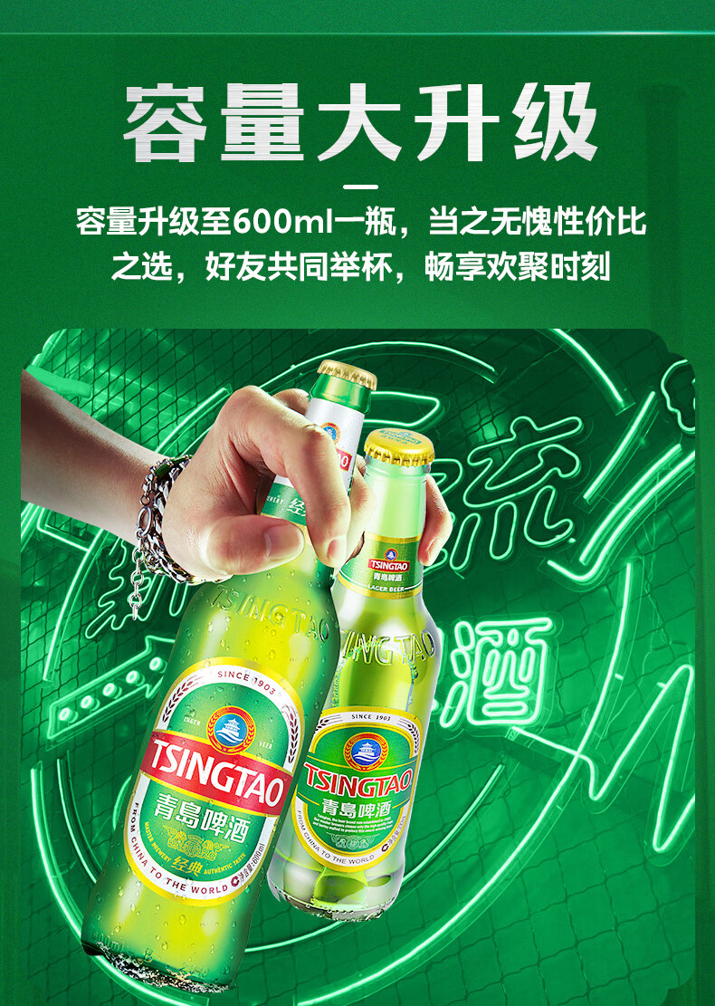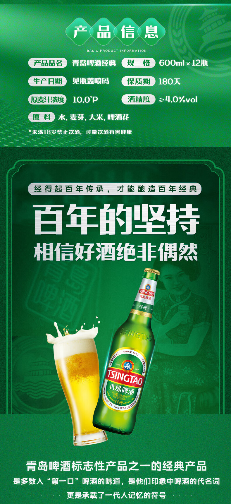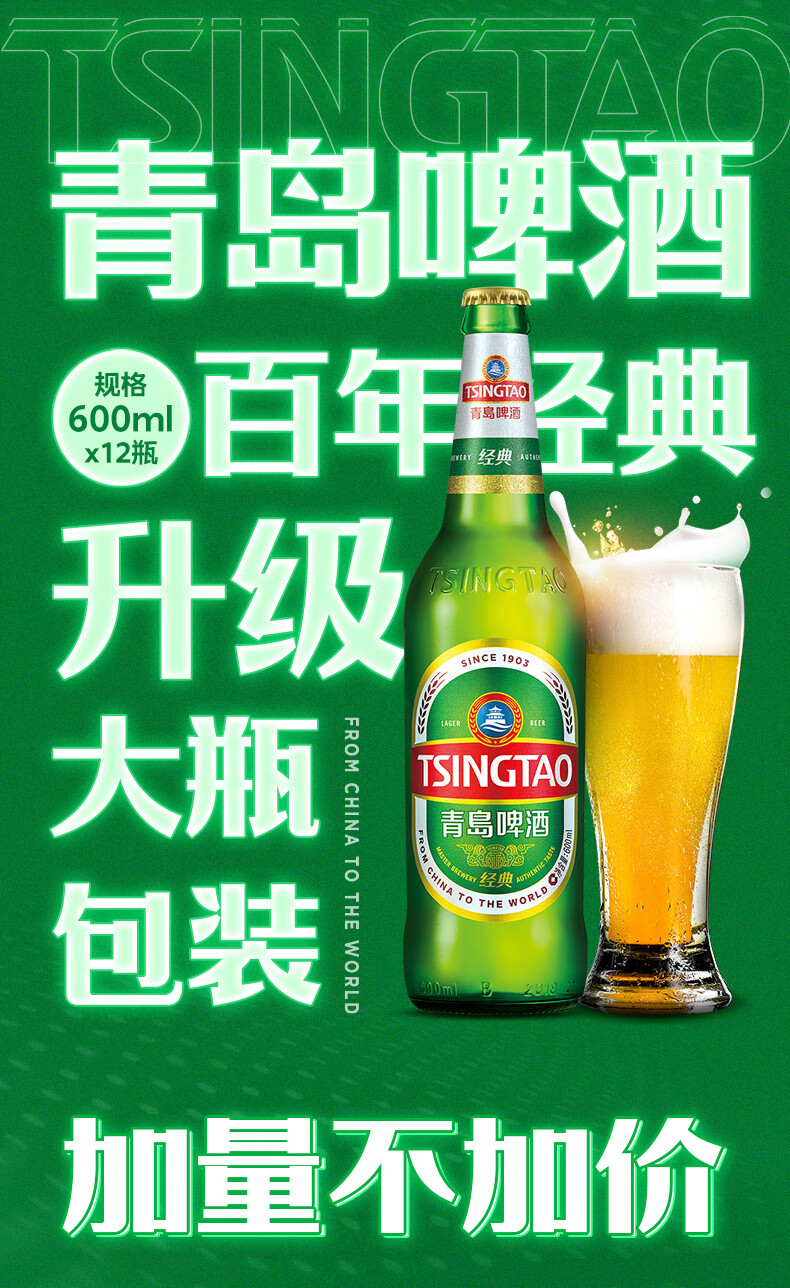 青岛啤酒经典啤酒原麦汁浓度10°P 600mL 12瓶