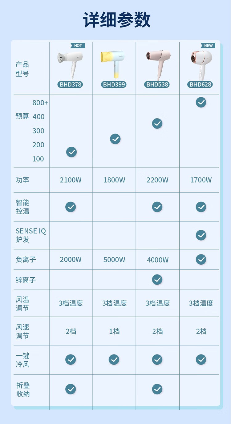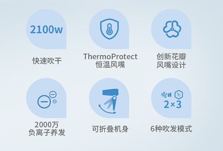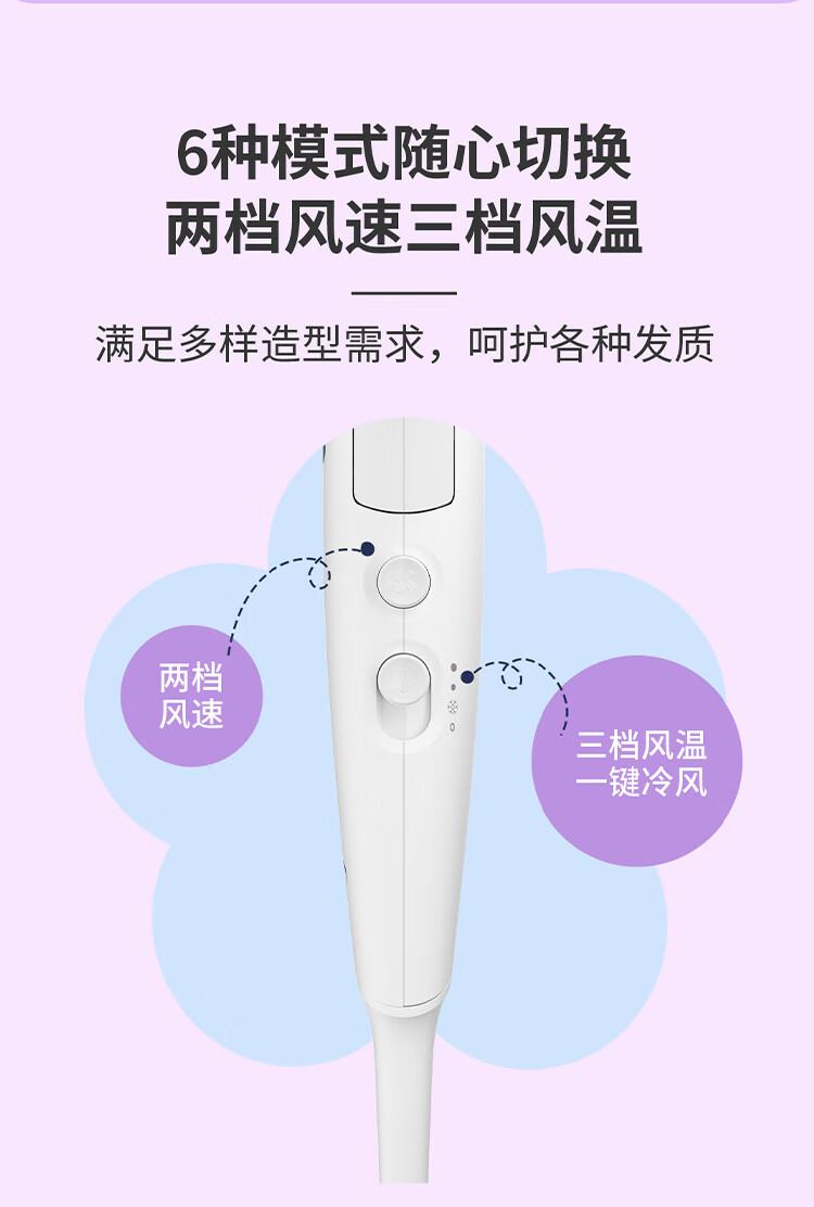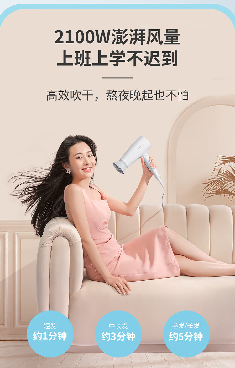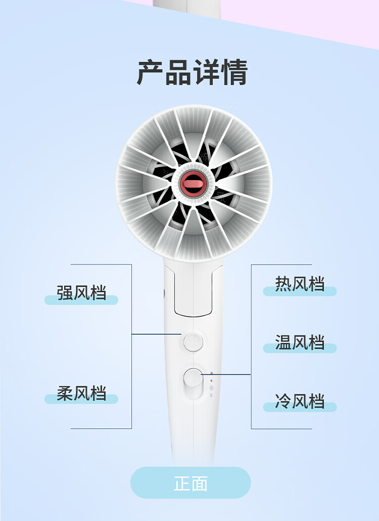 飞利浦(PHILIPS)电吹风机 3系小花筒 57°C低温速干 负离子护发小花筒白色可折叠家用 学生宿舍专用 圣诞生日礼物