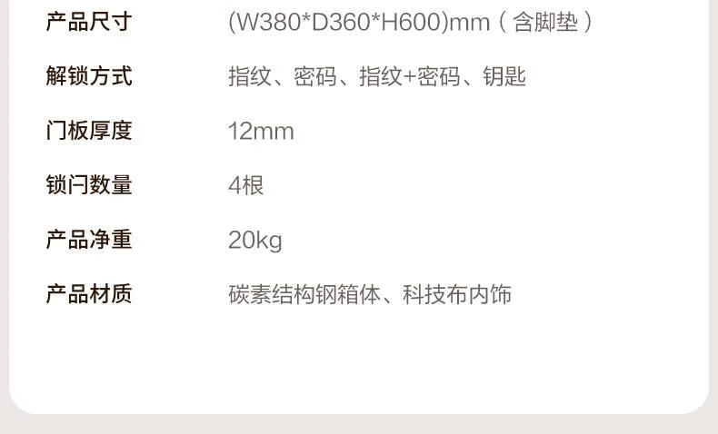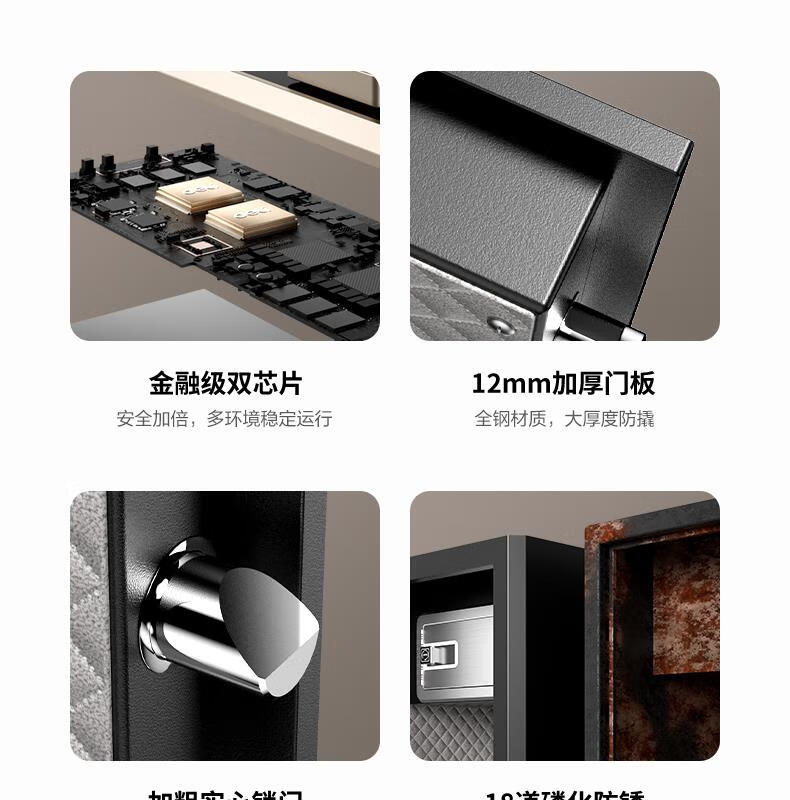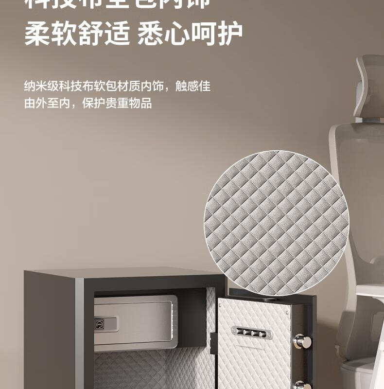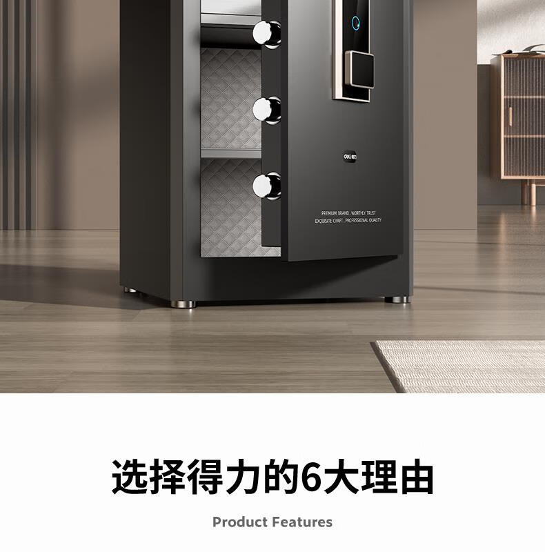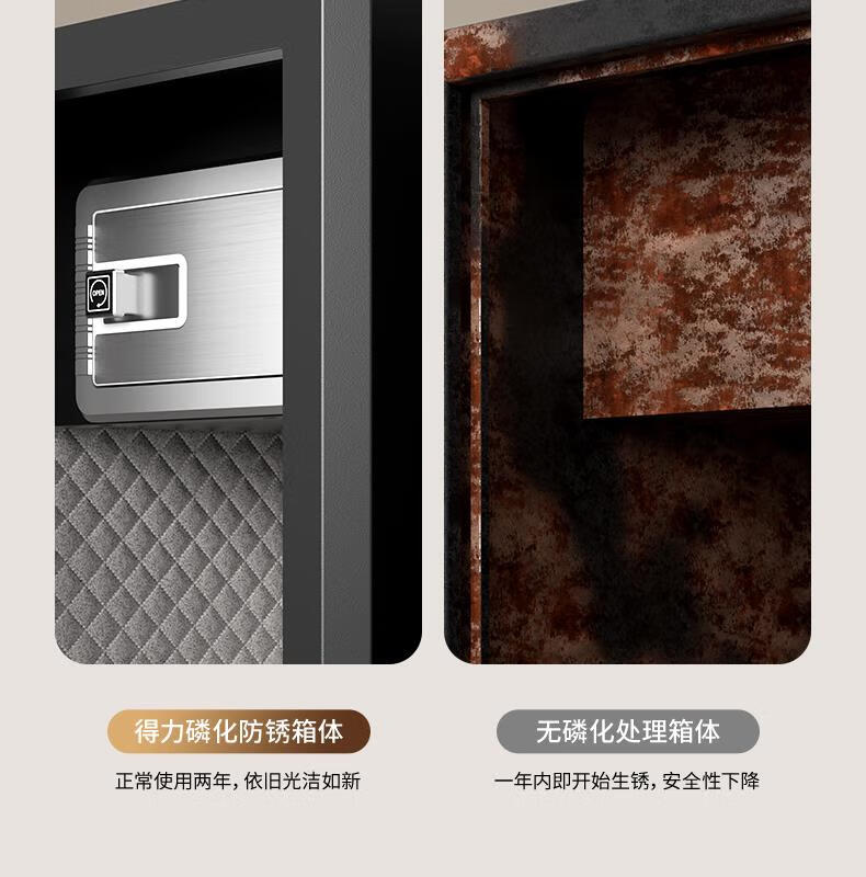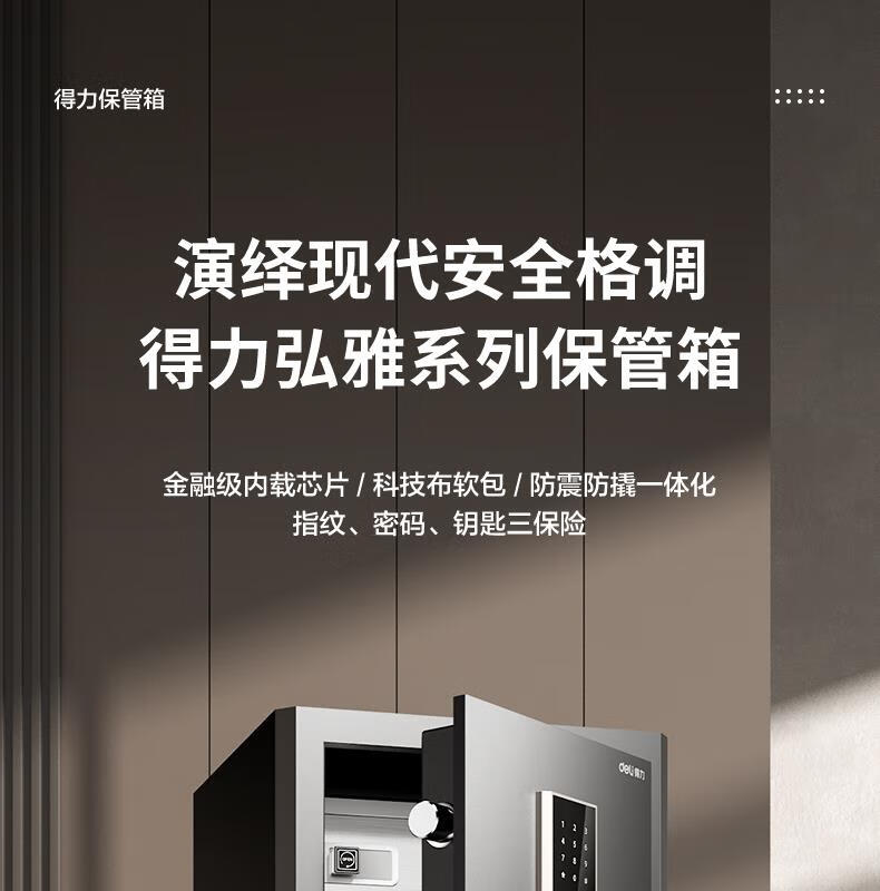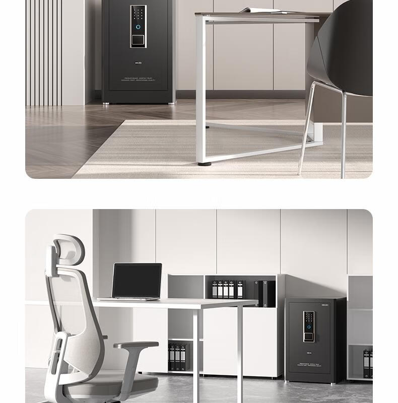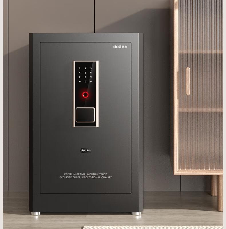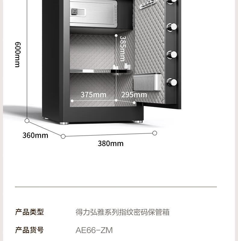 得力(deli)保险柜家用型 指纹密码4种解锁方式办公文件柜可入墙入柜床头保管箱60cm 黑弘雅AE66-ZM