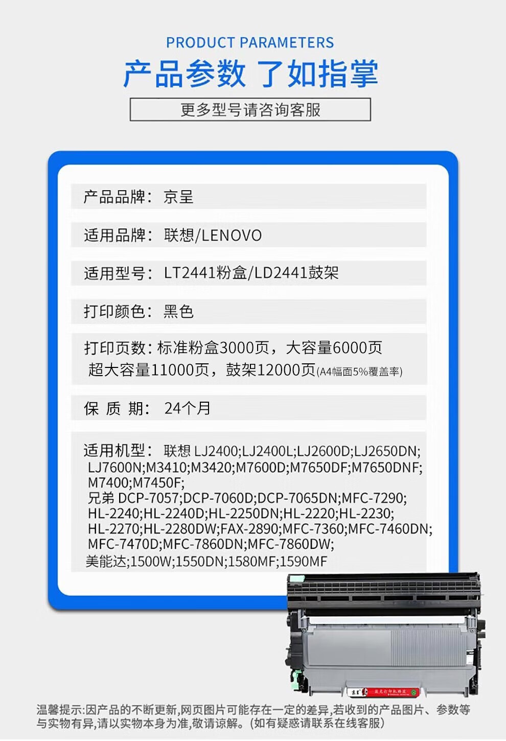 京呈适用联想M7400硒鼓M7450F粉盒LJ2400墨盒M7600D墨粉盒m7650dnf打印机 LT2441/2641H大容量粉盒(6000页)