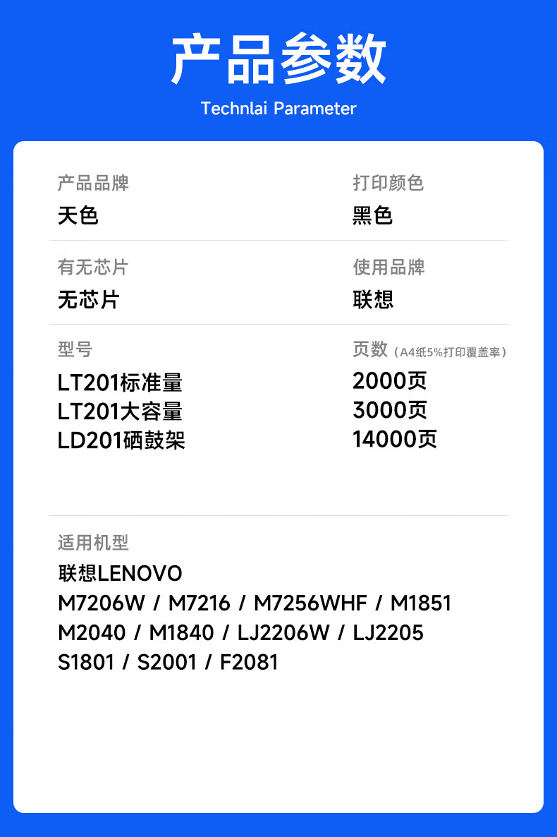天色适用联想m7206硒鼓m7256whf兄弟mfc1919nw1906 dcp1618w1680 1519打印机墨盒tn1035粉盒t201