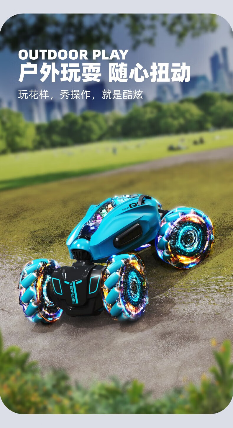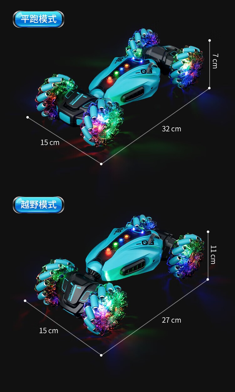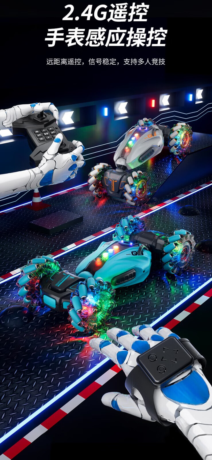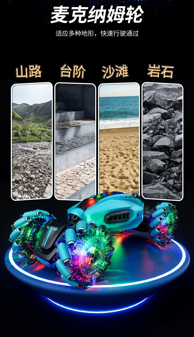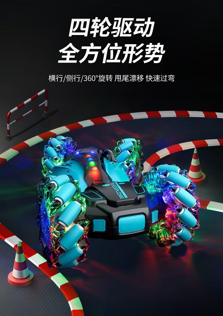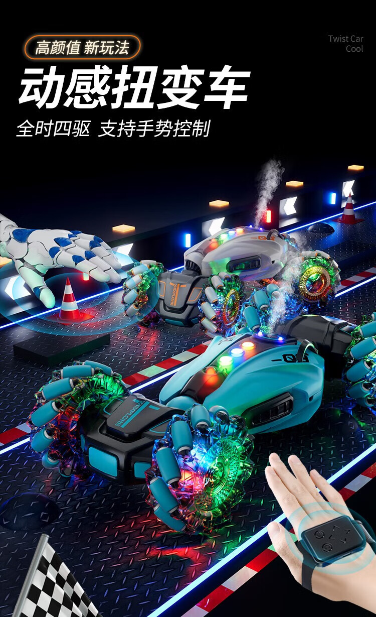 4DRC遥控汽车四驱越野扭变形特技车3-6-8-10岁儿童玩具车男孩生日礼物 蓝【遥控+手表+喷雾】32CM特技车 2组电池+遥控电池
