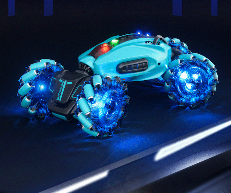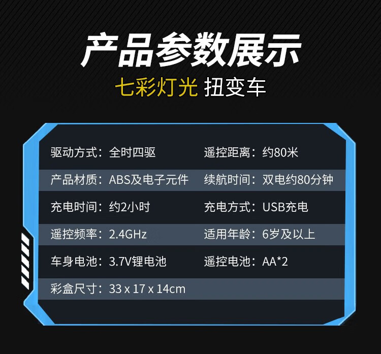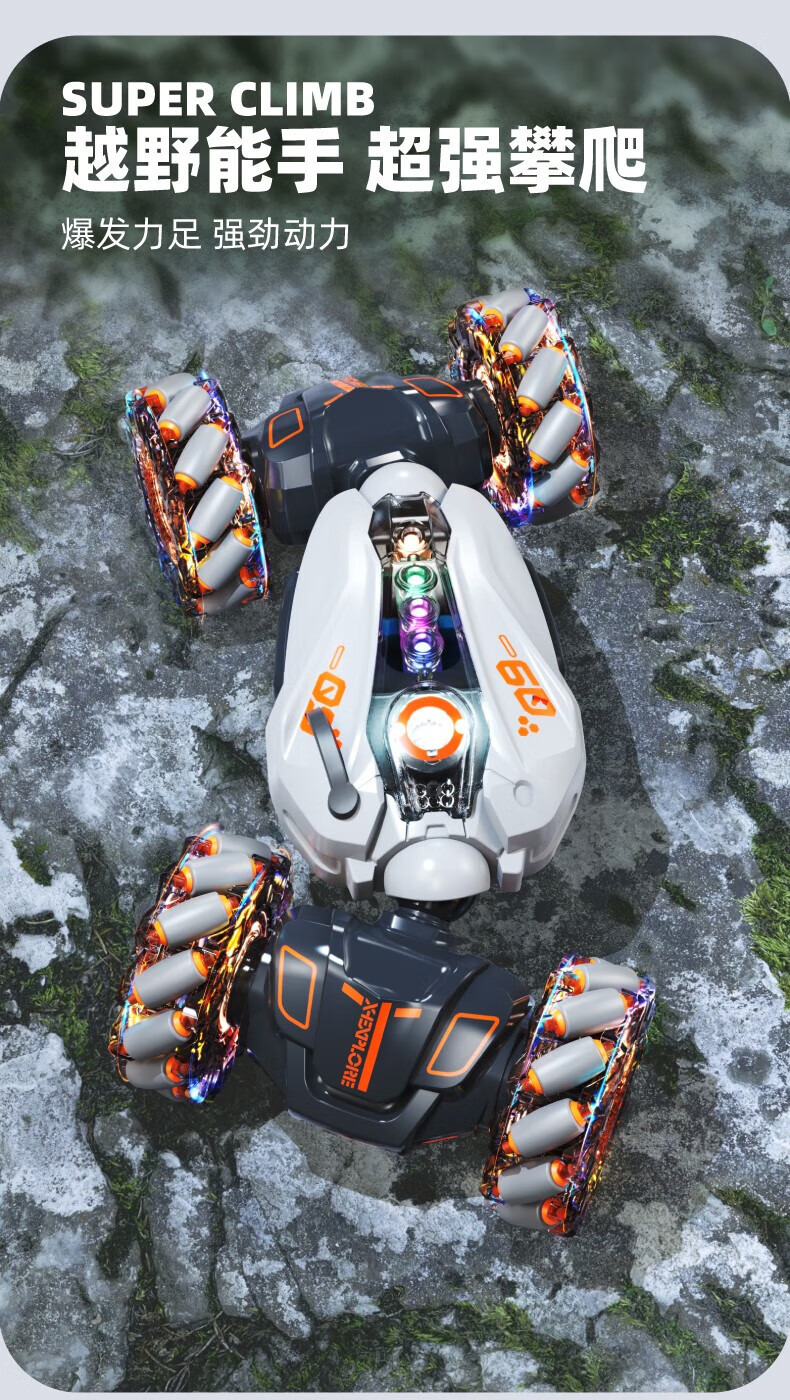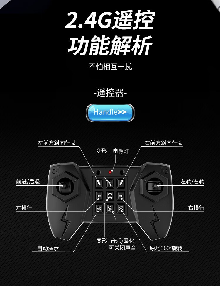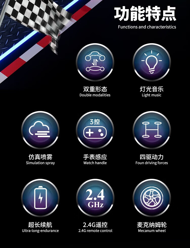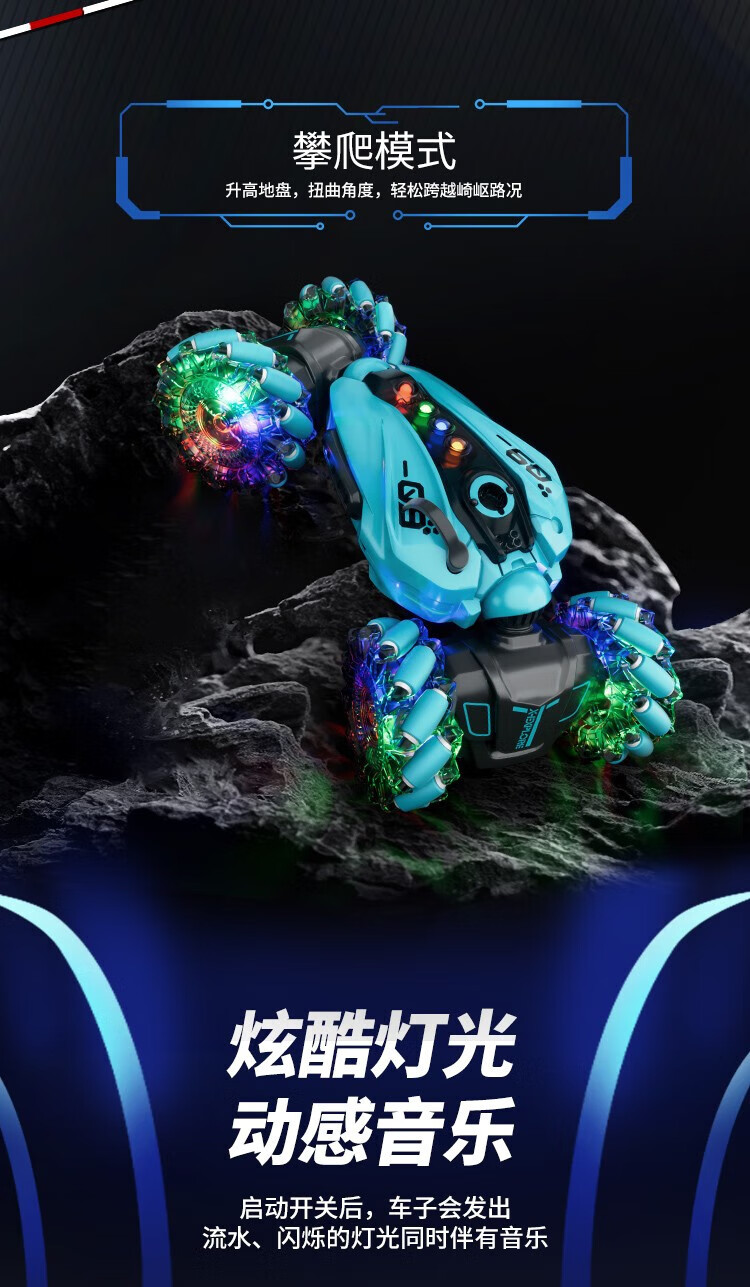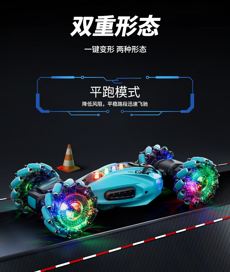 4DRC遥控汽车四驱越野扭变形特技车3-6-8-10岁儿童玩具车男孩生日礼物 蓝【遥控+手表+喷雾】32CM特技车 2组电池+遥控电池