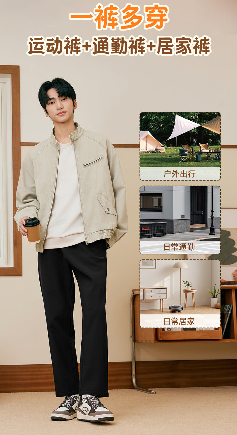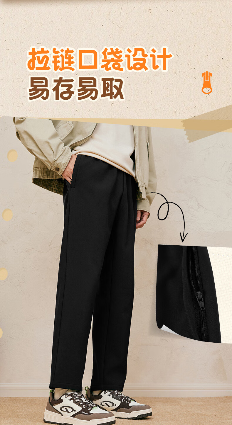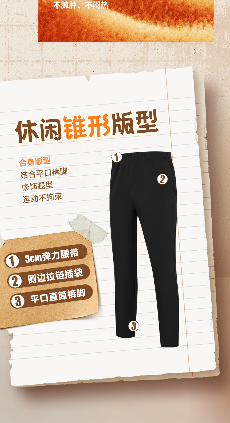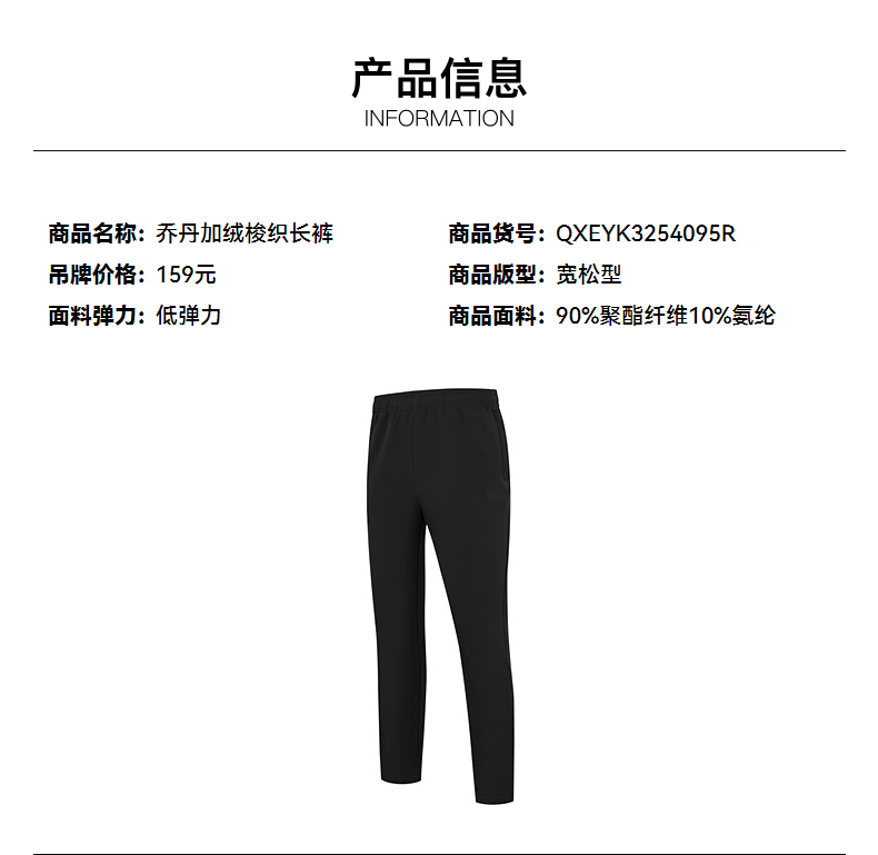 乔丹加绒运动裤男士休闲卫裤子男冬季保暖直筒束脚梭织长裤 黑色 丨直筒拉链 3XL