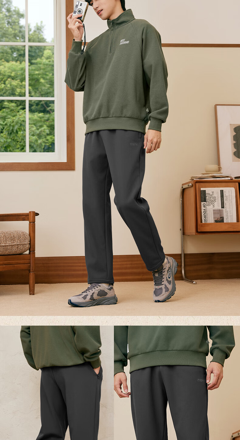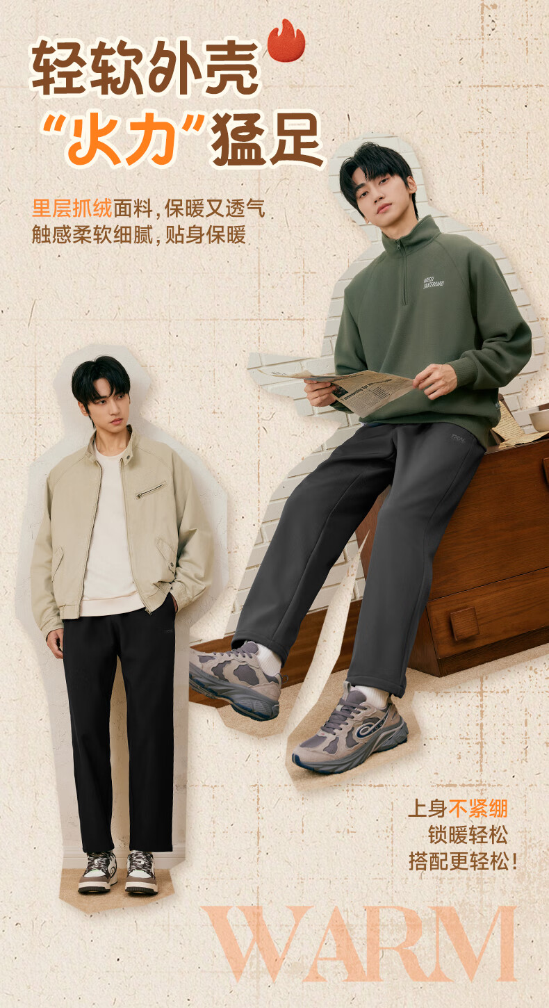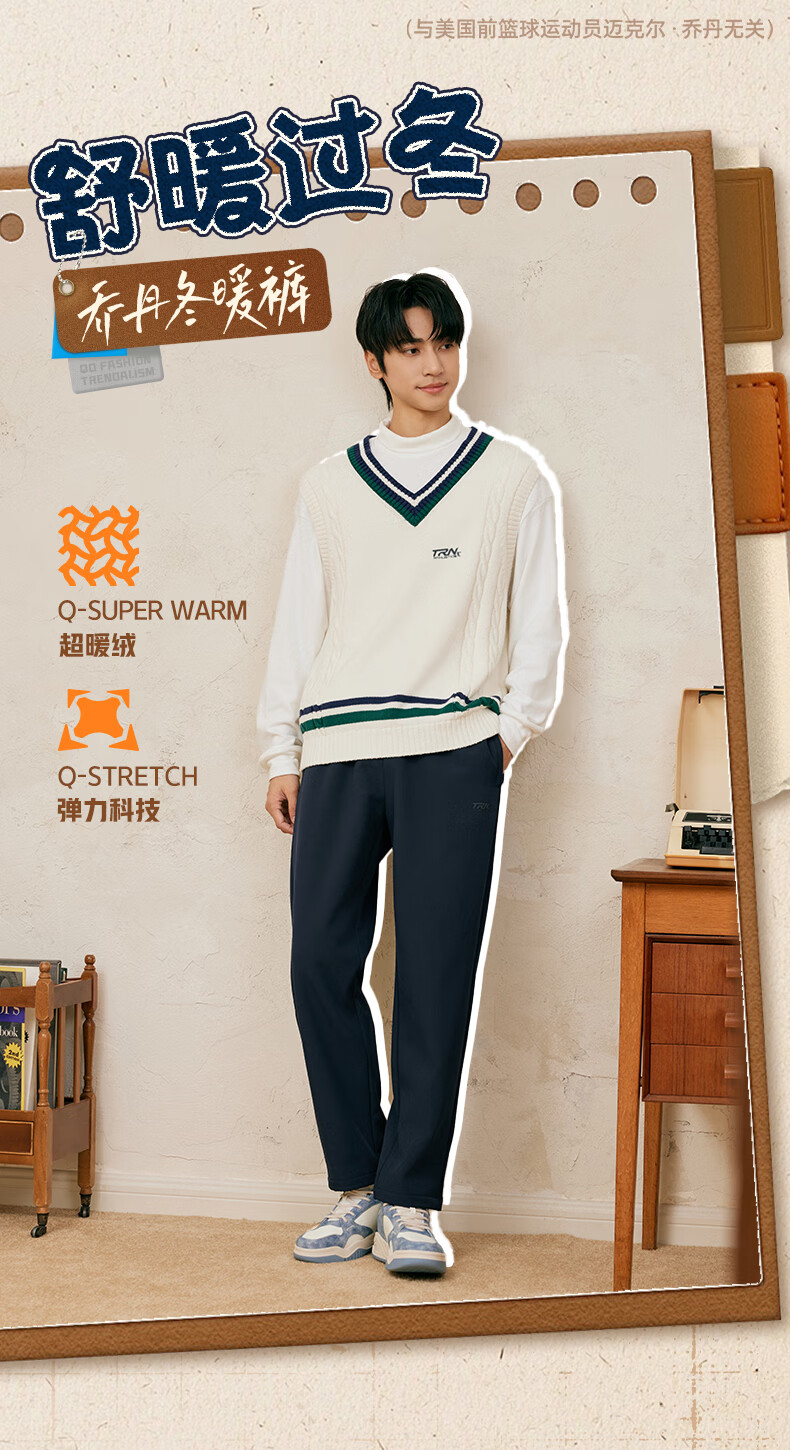 乔丹加绒运动裤男士休闲卫裤子男冬季保暖直筒束脚梭织长裤 黑色 丨直筒拉链 3XL