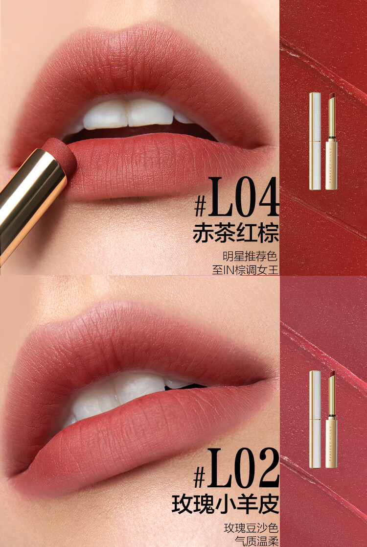 完美日记【直播专享】小细跟丝绒细管口红L02蜜桃豆沙0.8g新年礼物女