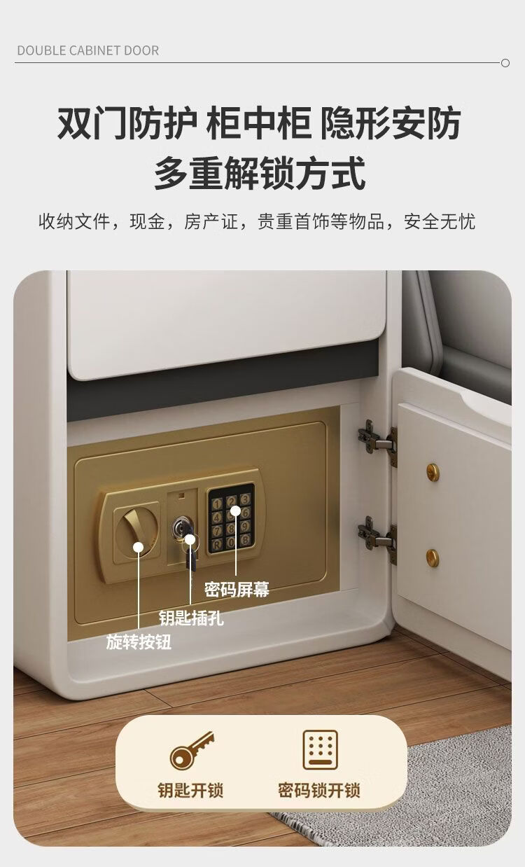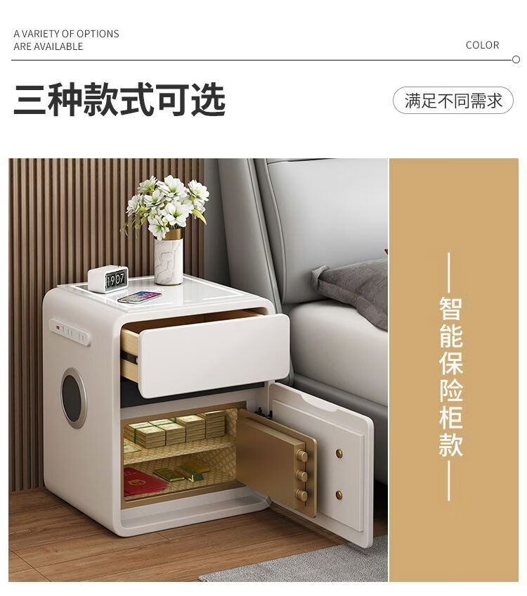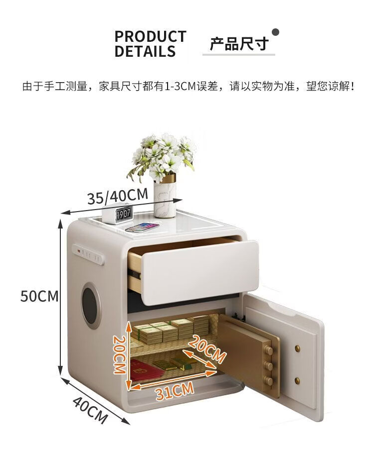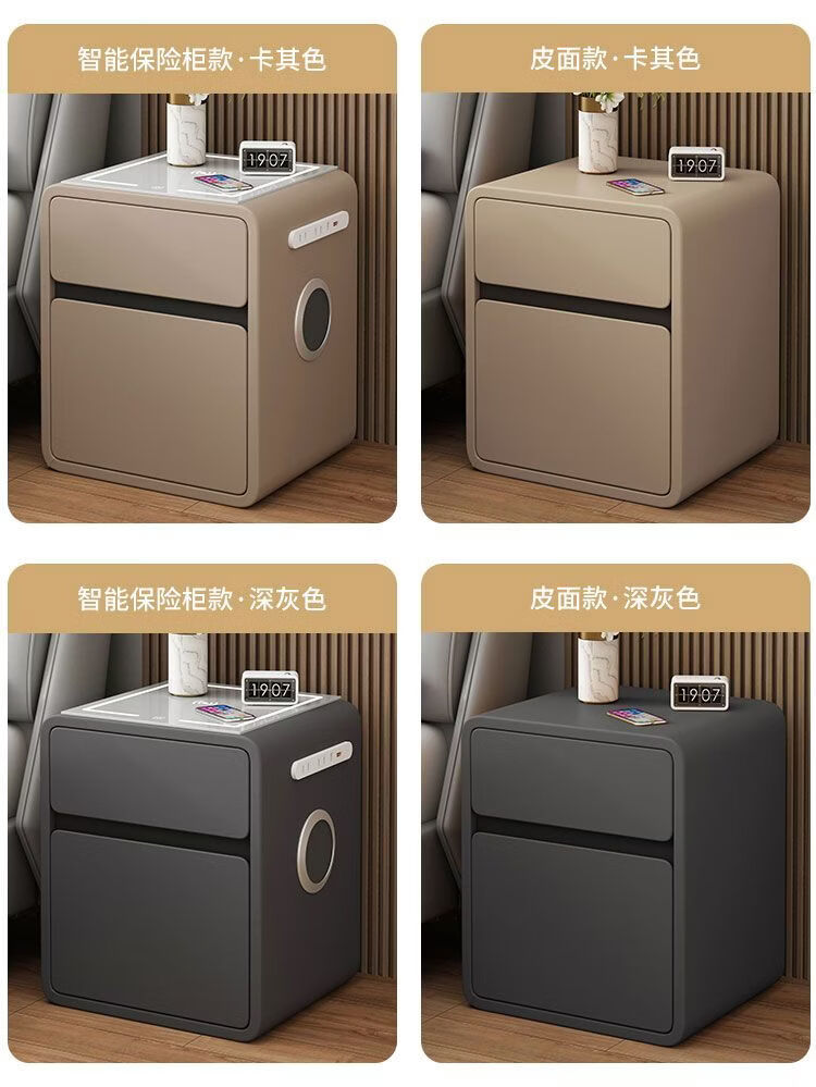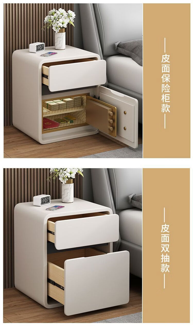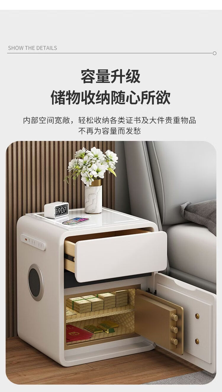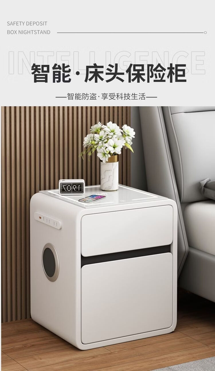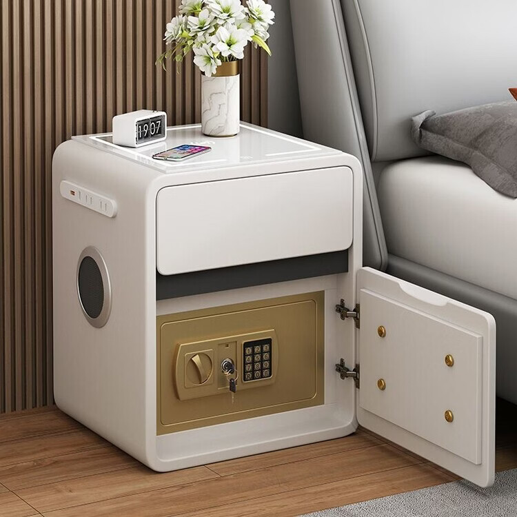 欣慕雅奶油风智能床头柜保险箱一体ins风家用卧室床边柜高级感轻奢实木 奶油保险箱-35宽+米白【智能】