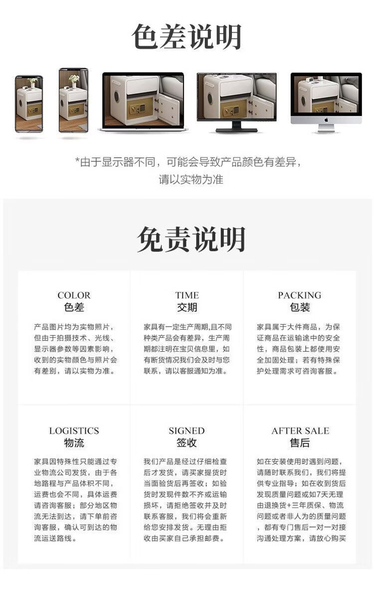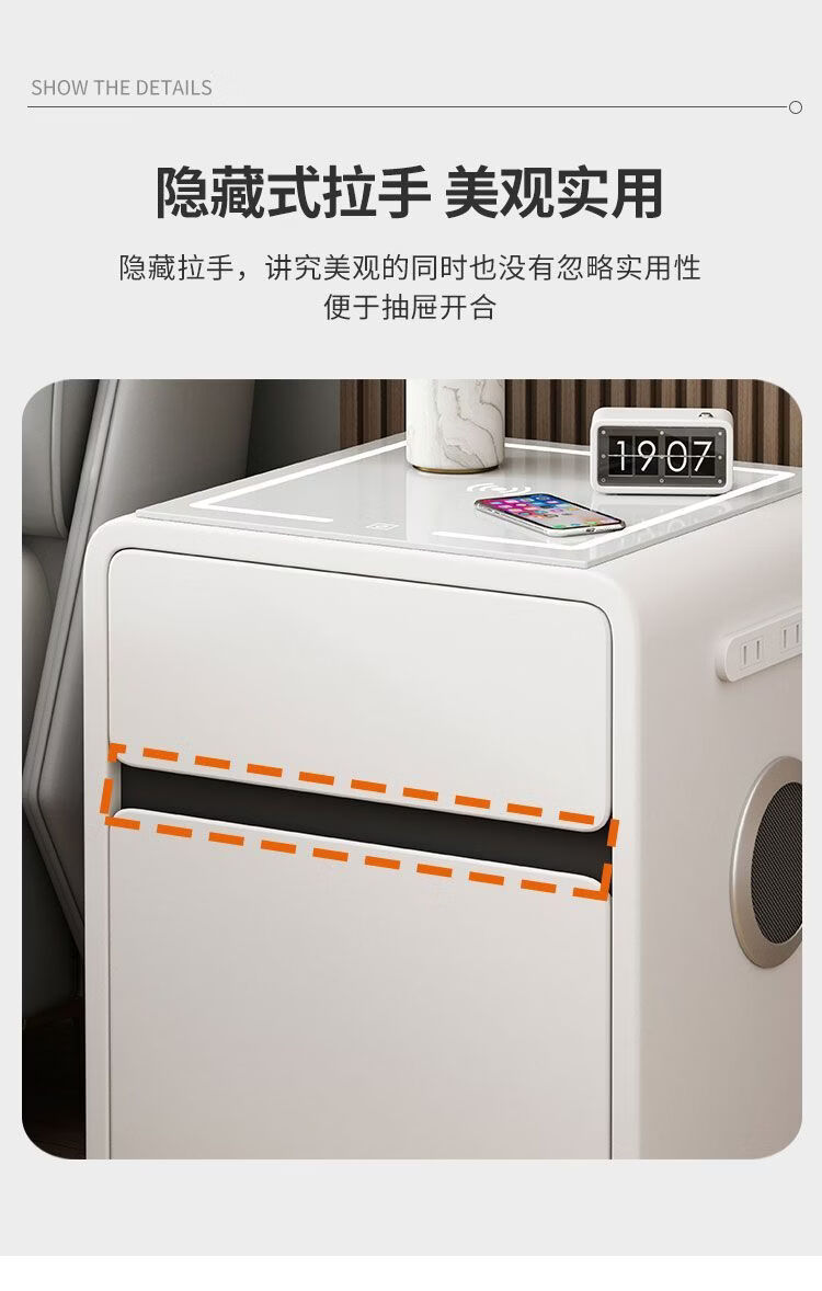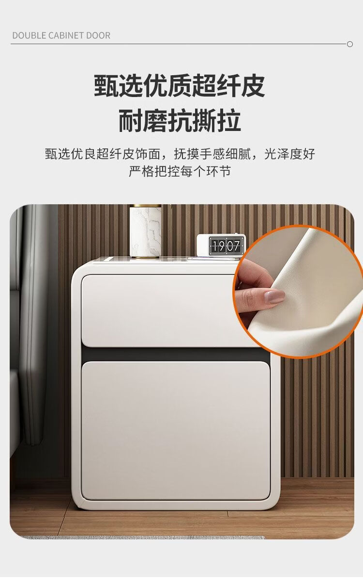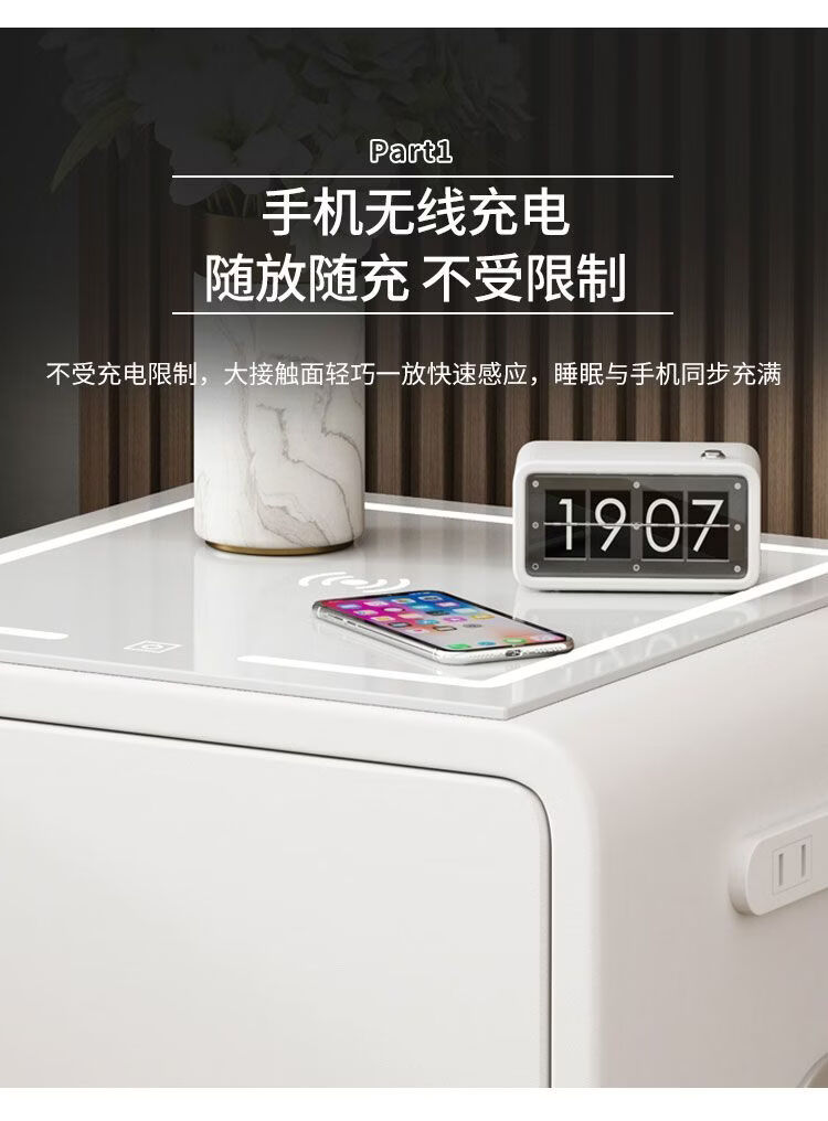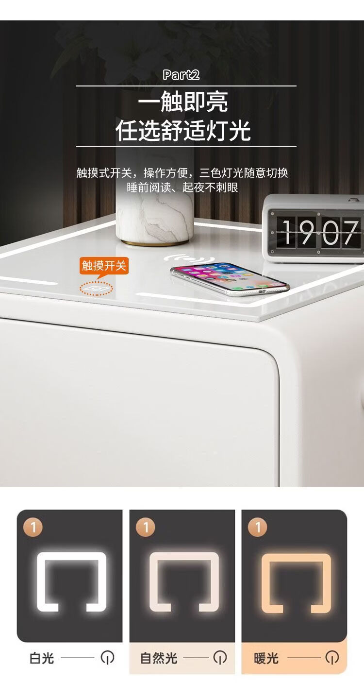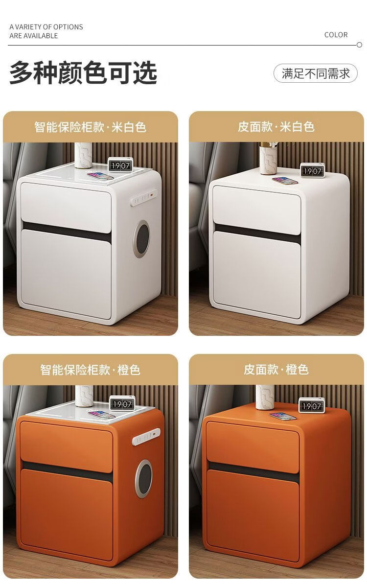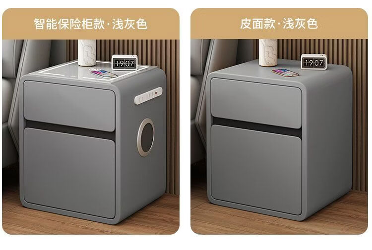 欣慕雅奶油风智能床头柜保险箱一体ins风家用卧室床边柜高级感轻奢实木 奶油保险箱-35宽+米白【智能】