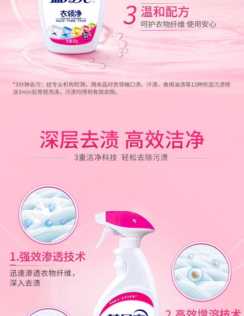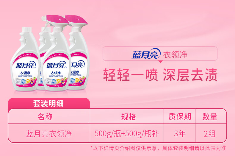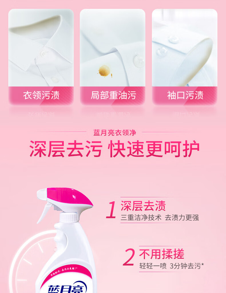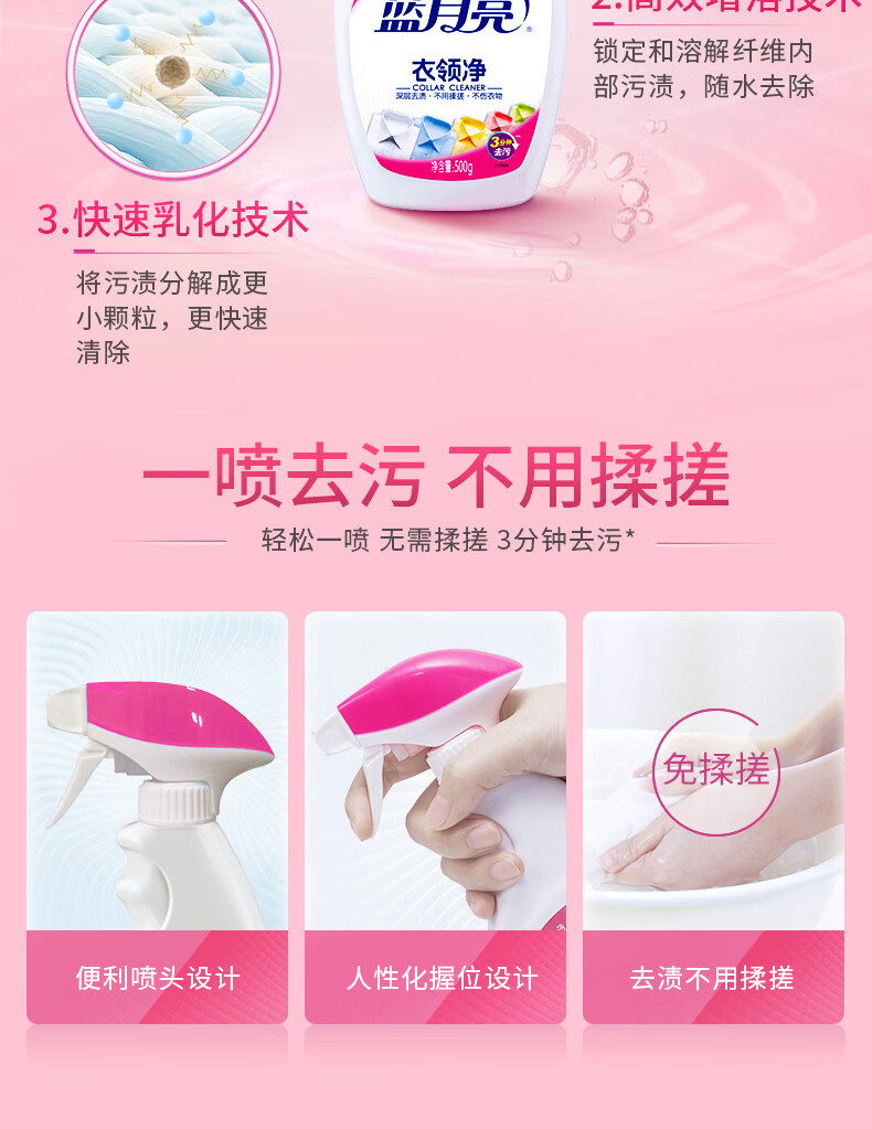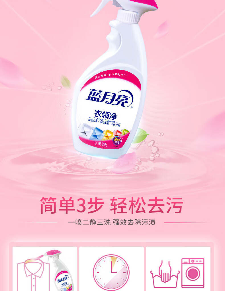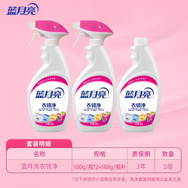 蓝月亮衣领净套装 喷雾型 表面活性有效去污 衣领净500g*6(3瓶+3瓶补)