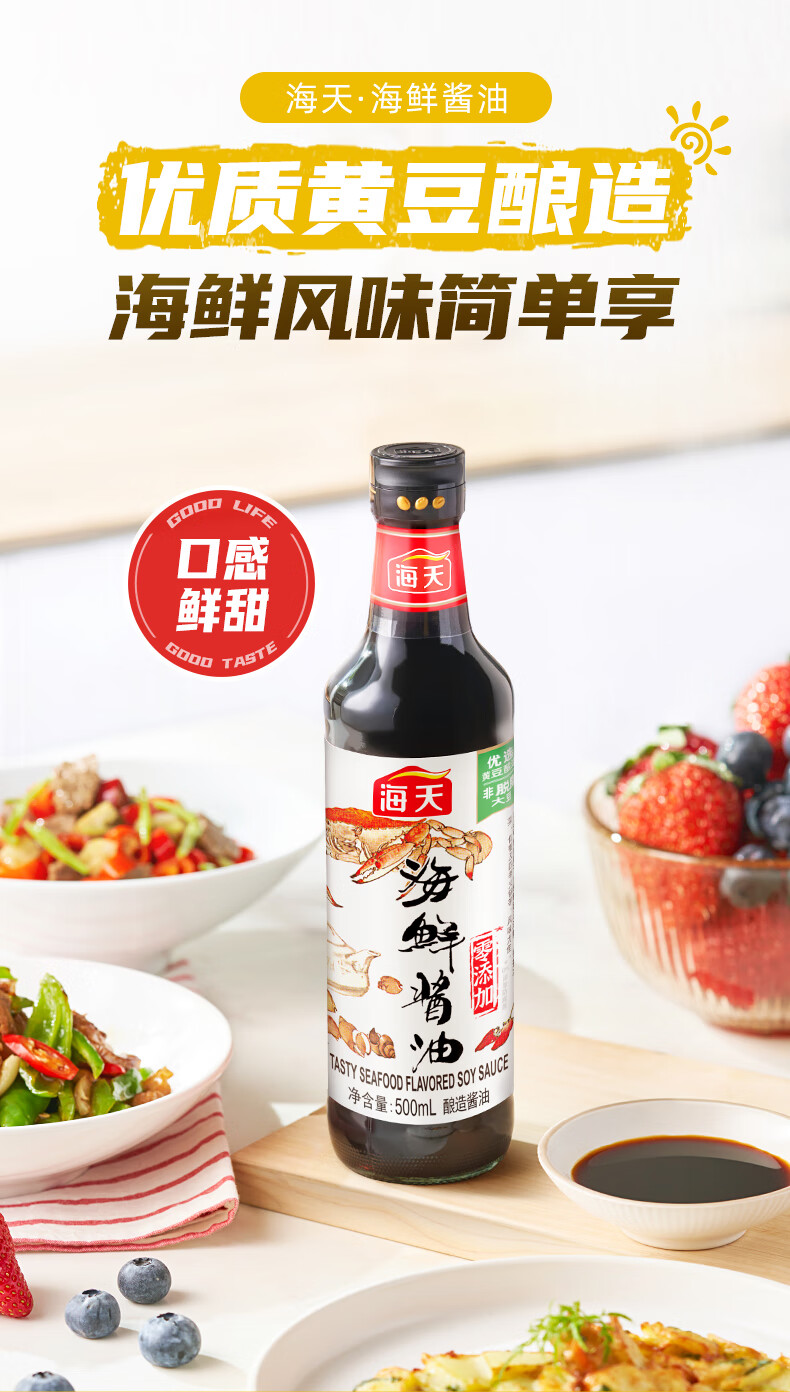 海天 海鲜生抽酱油500ml 【一级酱油】经典系列 海鲜提鲜炒菜