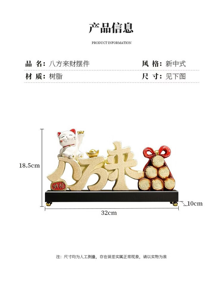 OYKTN开业礼物高档摆件八方来财招财猫开店送礼公司乔迁办公室前台装饰 八方來财-没木座【无礼盒】A1 11