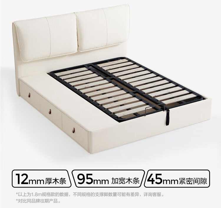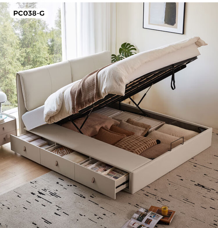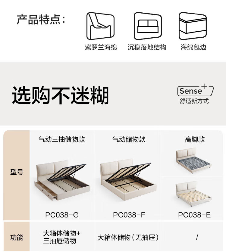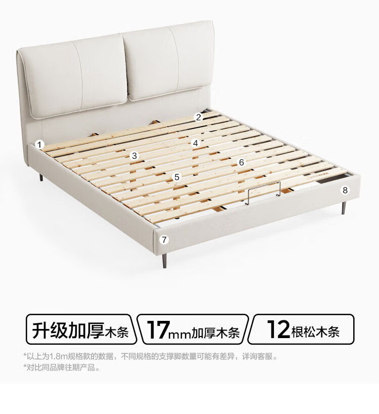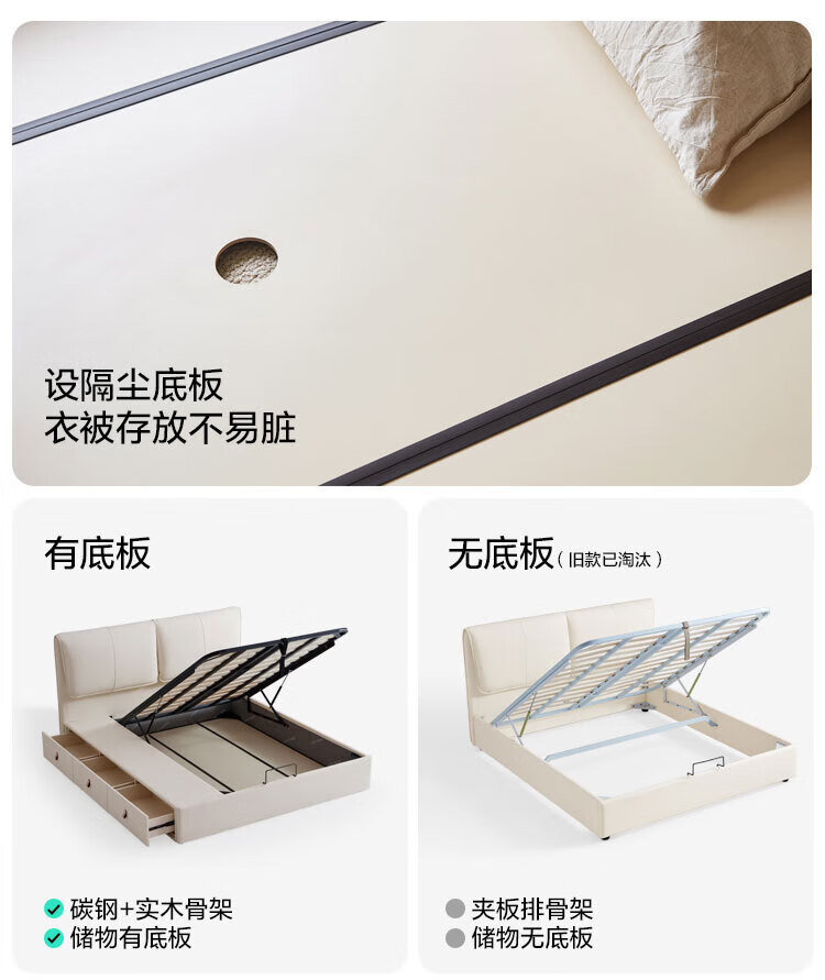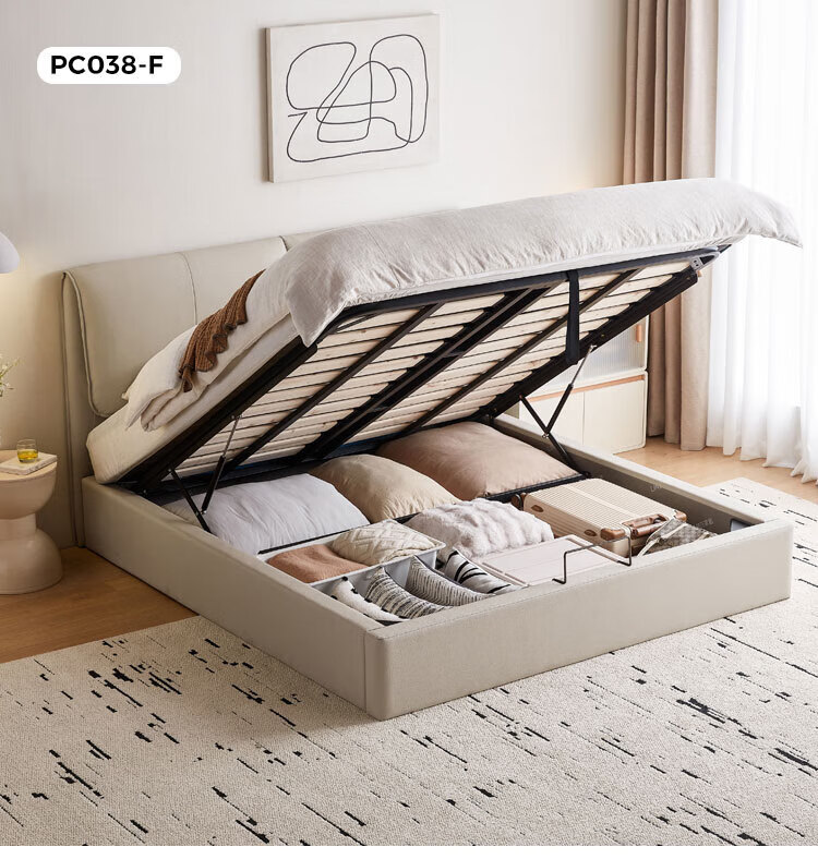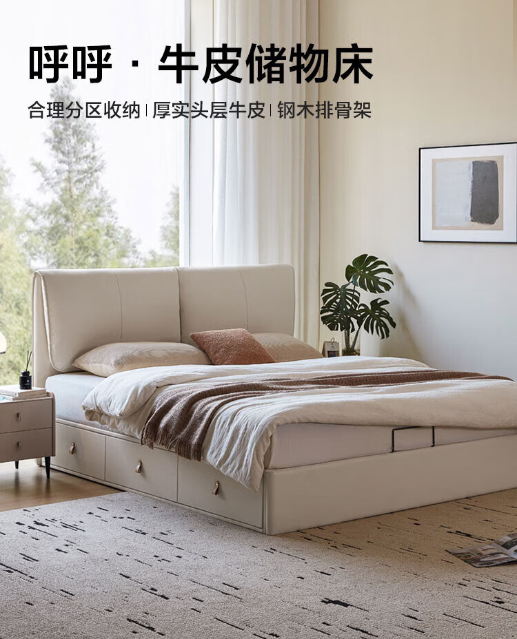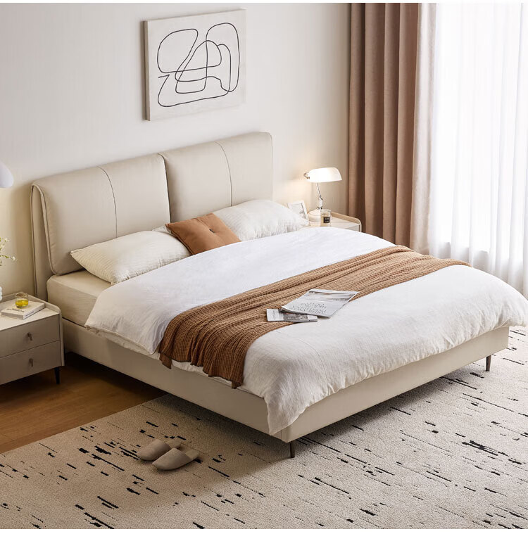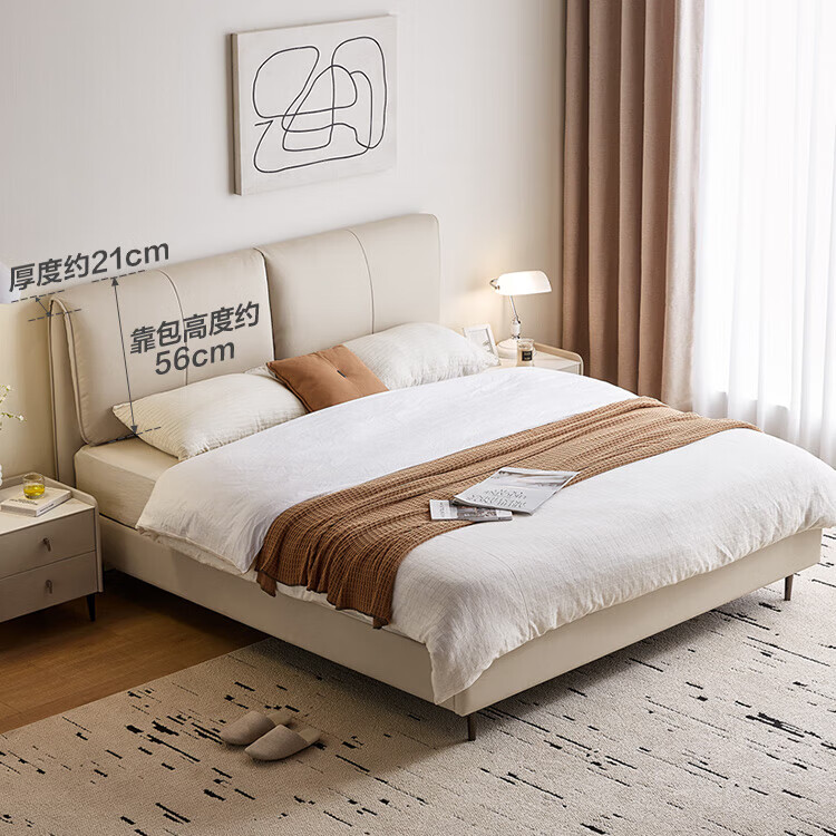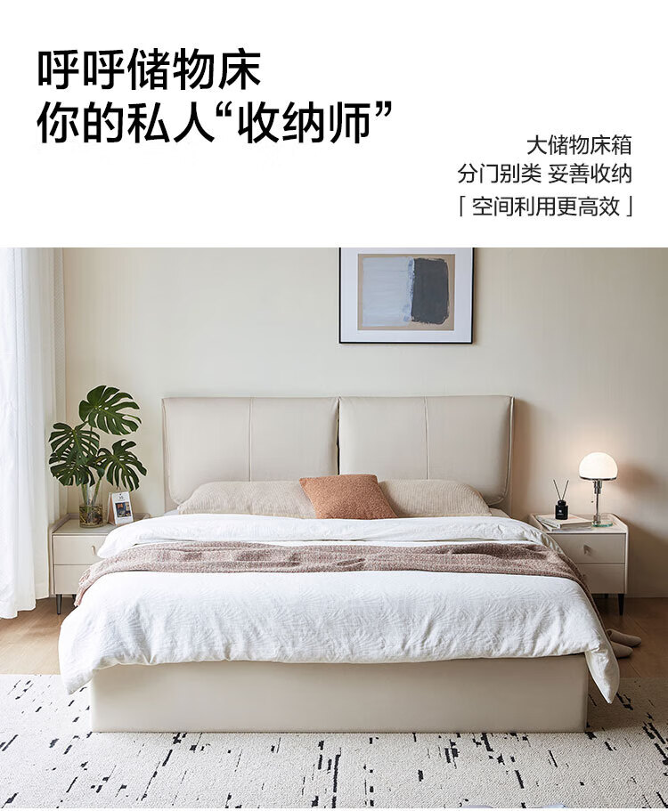 LINSY KIDS林氏家居皮艺床双人床1.8米2米主卧大床大象耳朵真皮床高箱储物床 柔沙色【高脚床】 1.8x2.0米