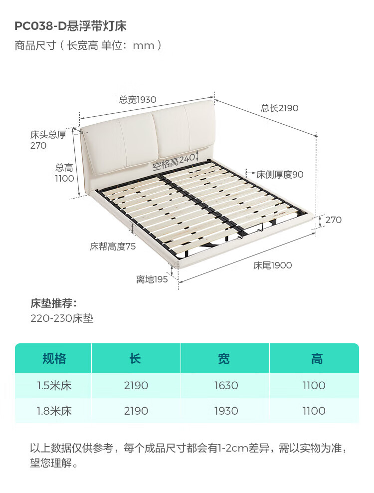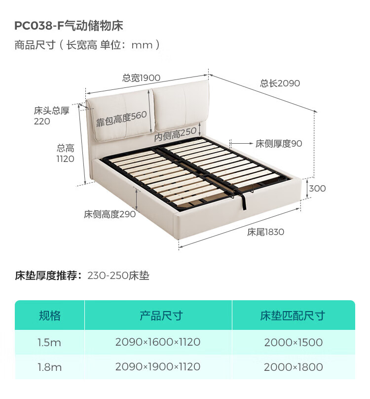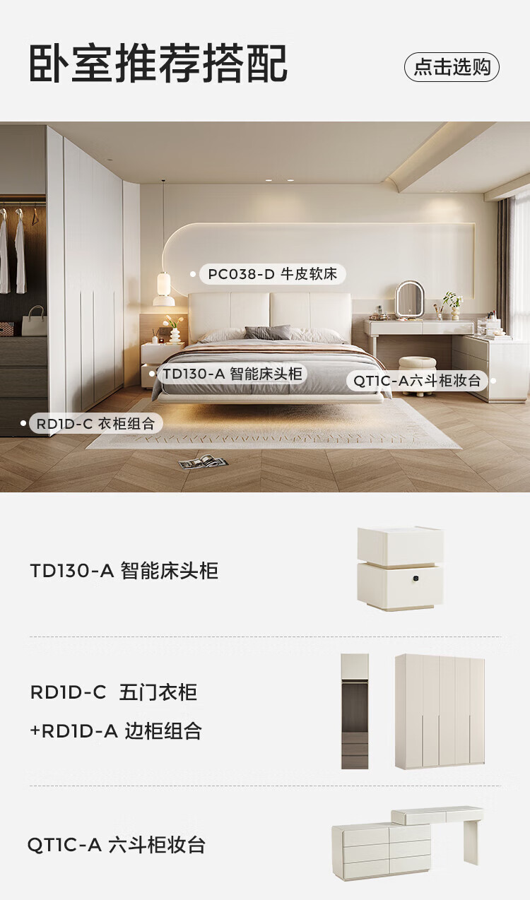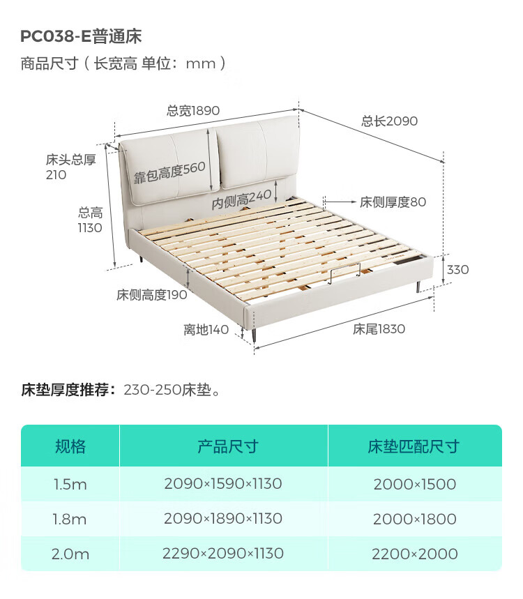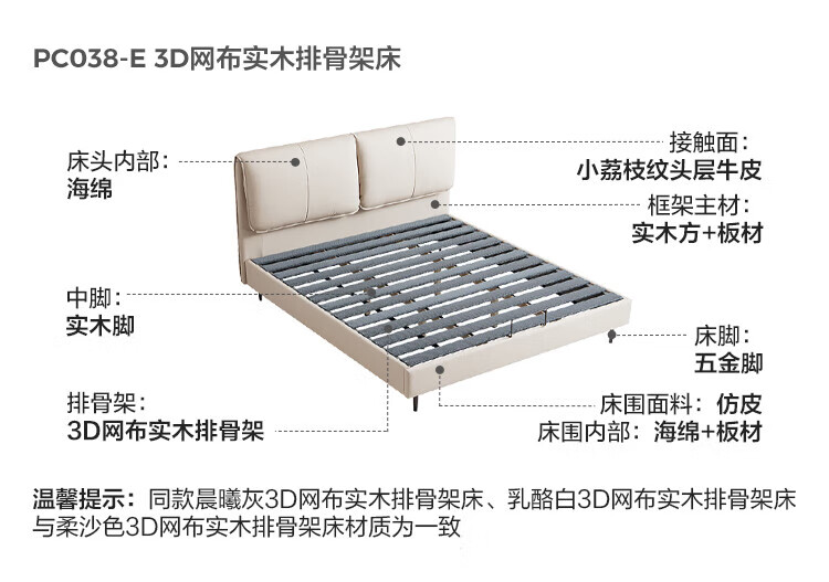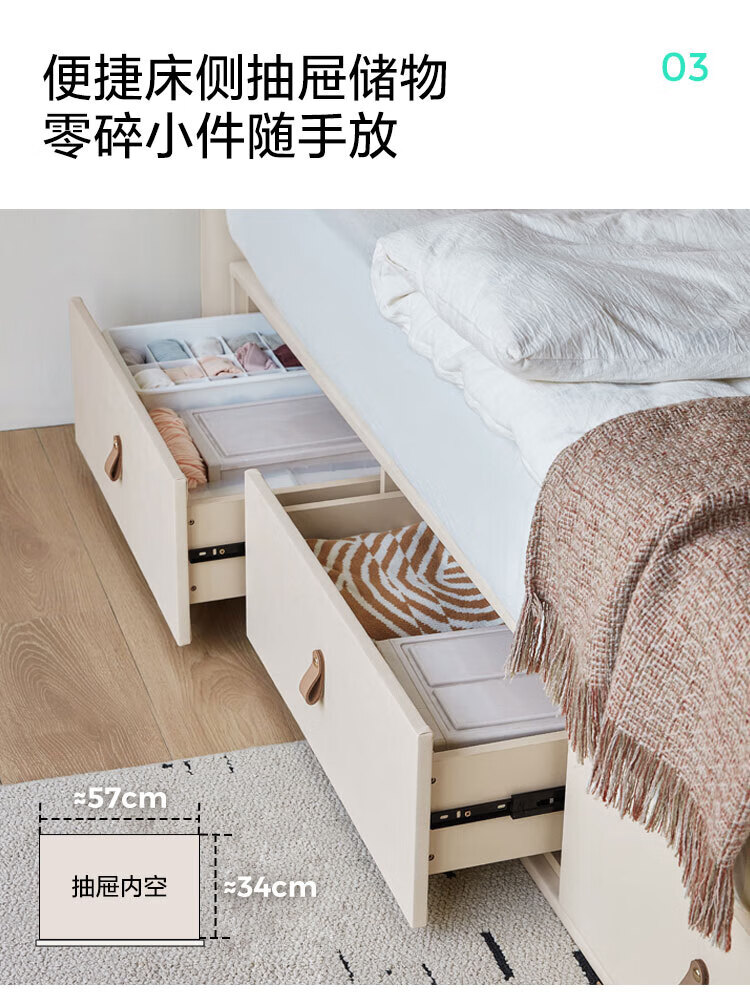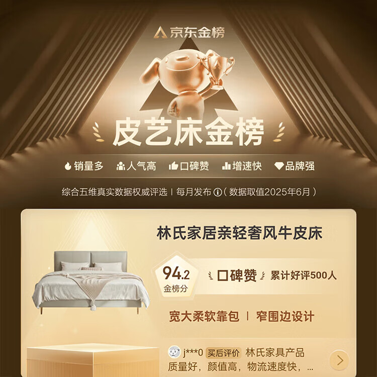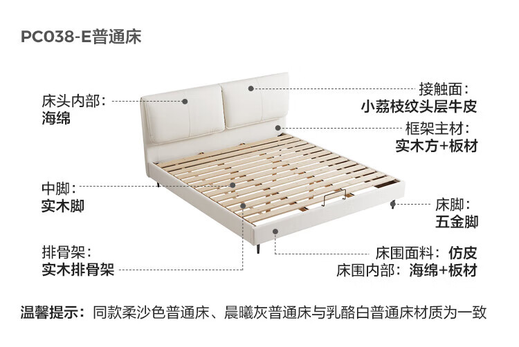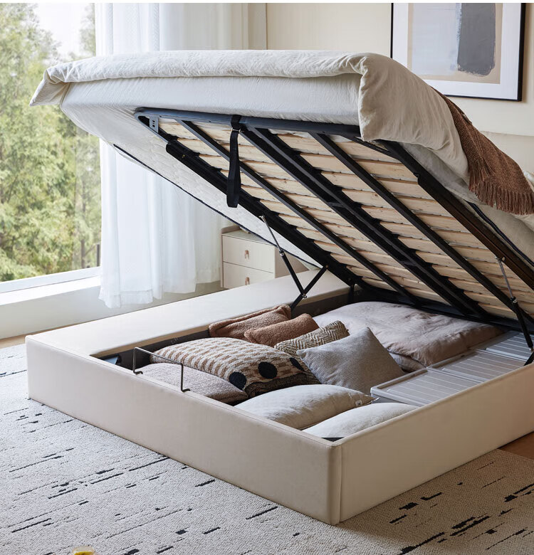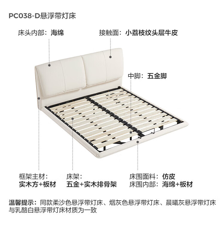 LINSY KIDS林氏家居皮艺床双人床1.8米2米主卧大床大象耳朵真皮床高箱储物床 柔沙色【高脚床】 1.8x2.0米