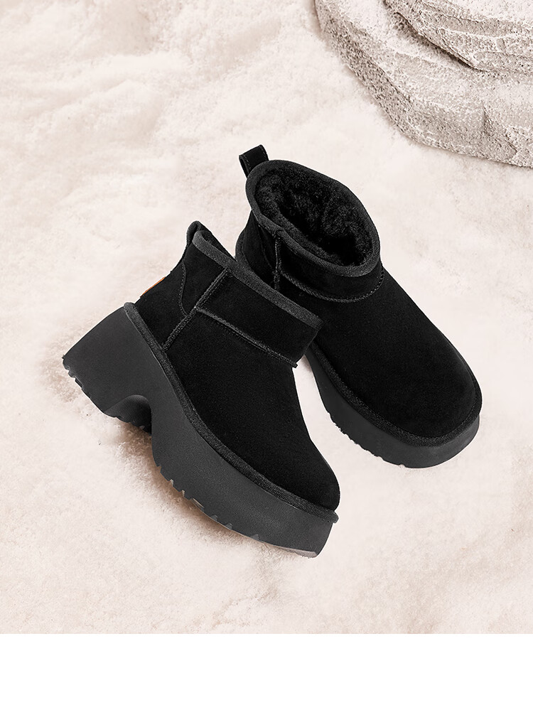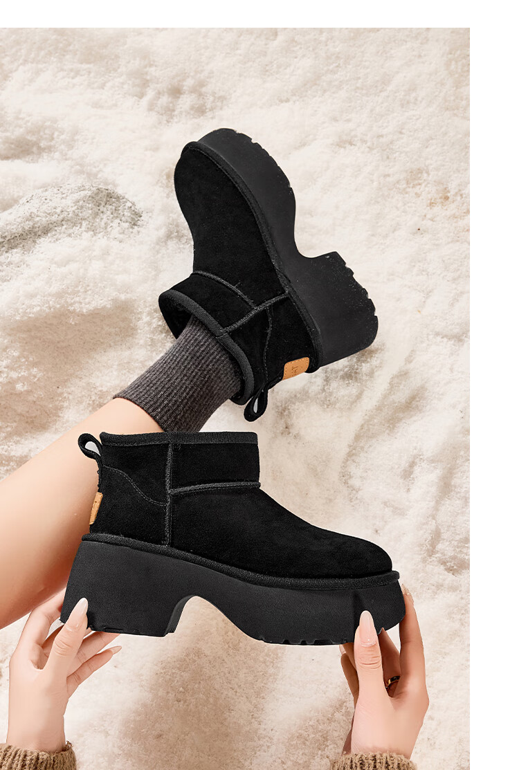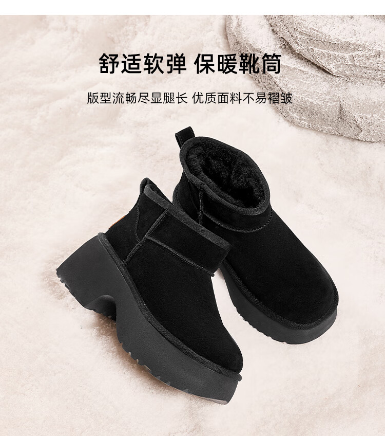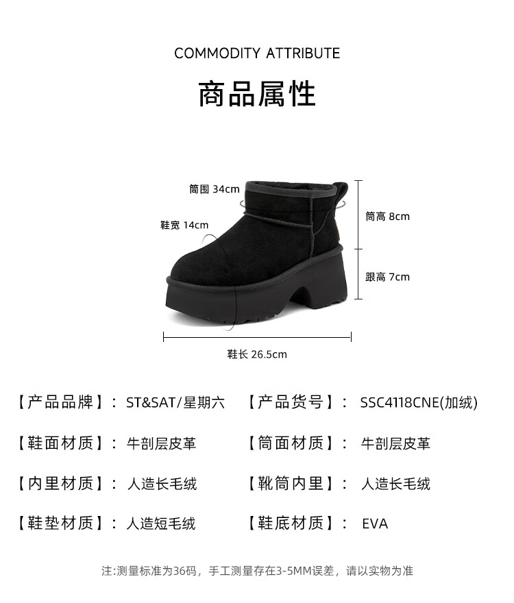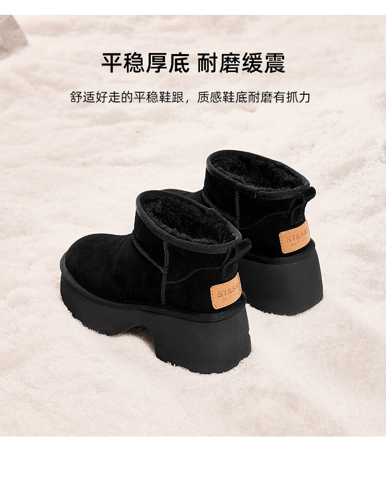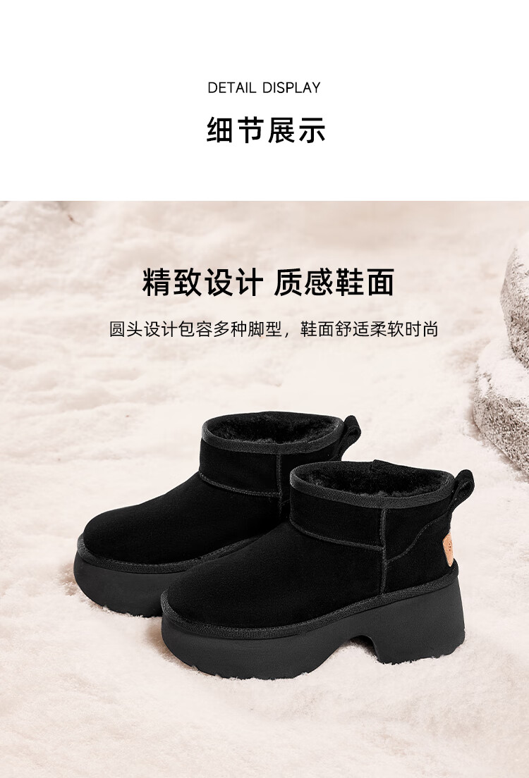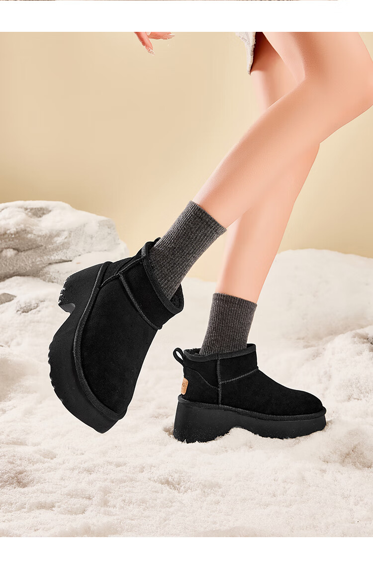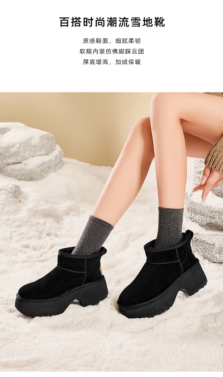 星期六加绒保暖雪地靴2025冬季新款百搭厚底增高女靴防滑东北棉鞋 黑色 39