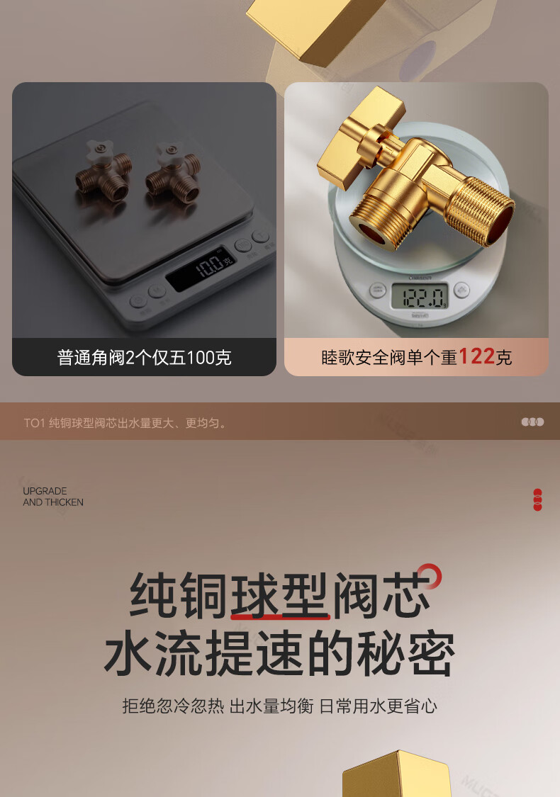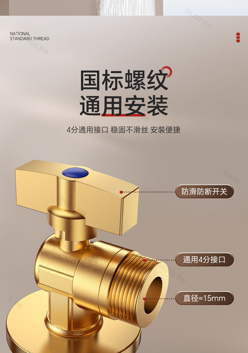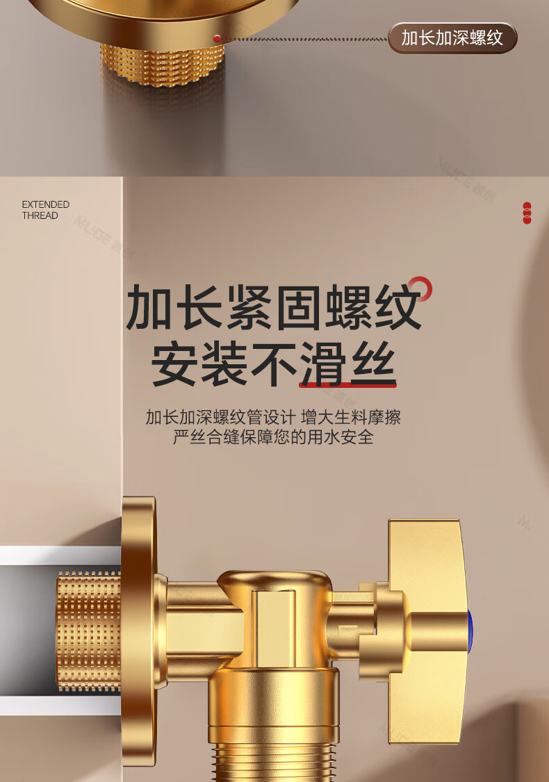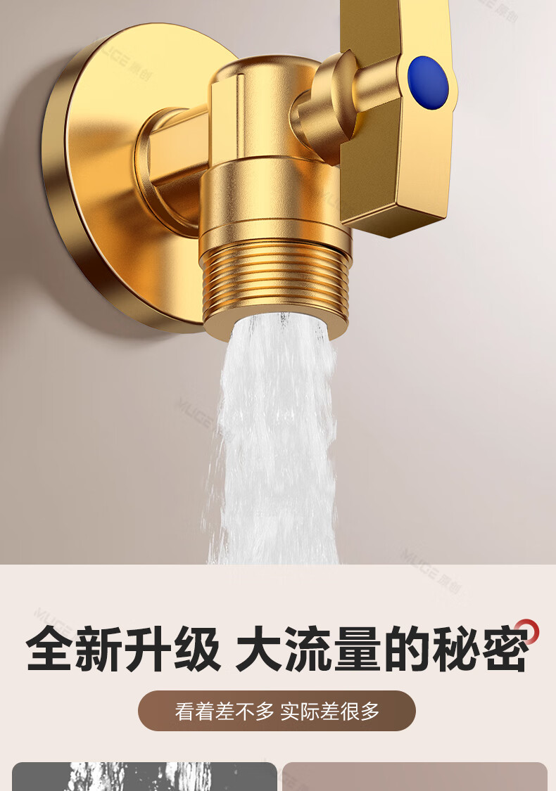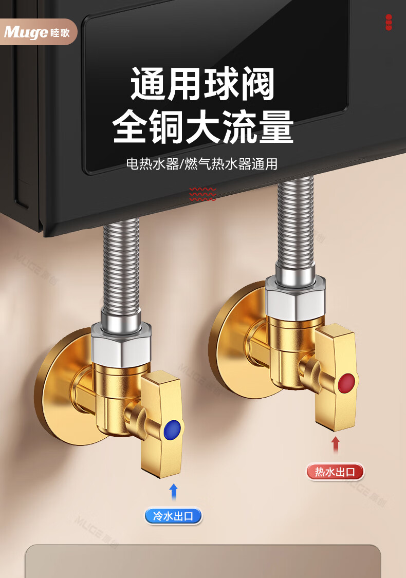 睦歌(MUGE)四分热水器冷热水角阀全铜三角阀全开大流量止水阀门开关球阀套装 全铜加厚【1蓝1红】大流量角阀套装