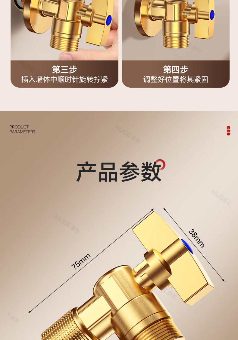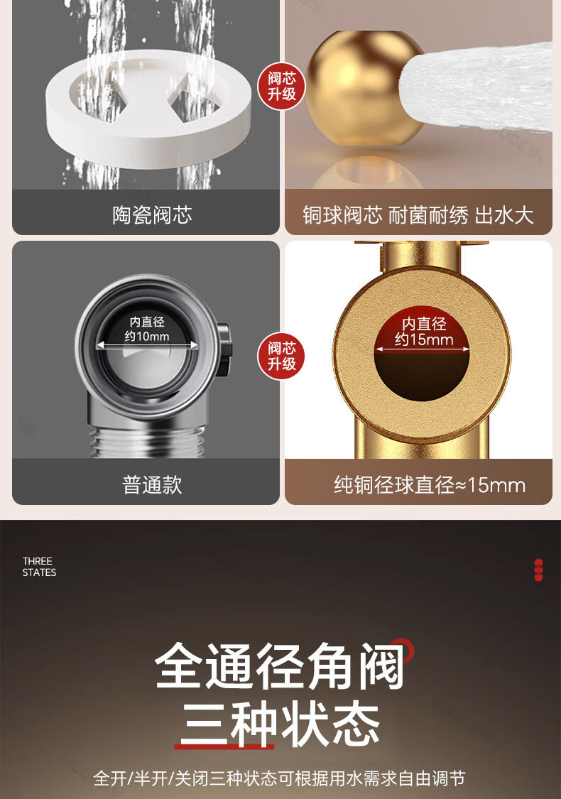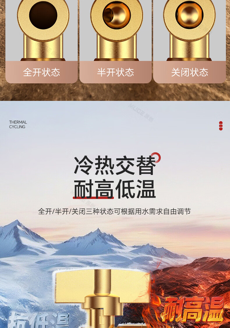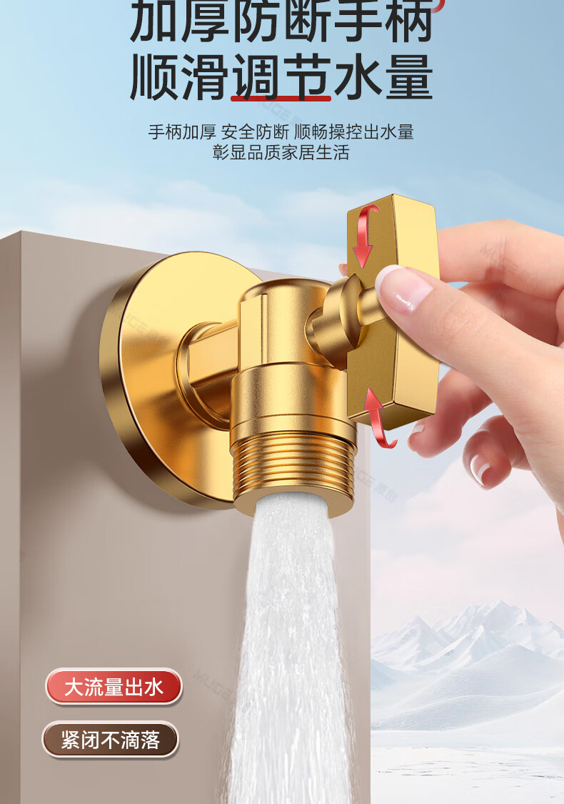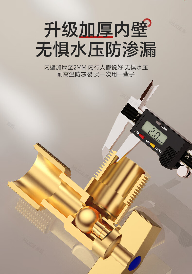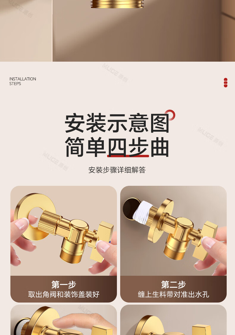 睦歌(MUGE)四分热水器冷热水角阀全铜三角阀全开大流量止水阀门开关球阀套装 全铜加厚【1蓝1红】大流量角阀套装