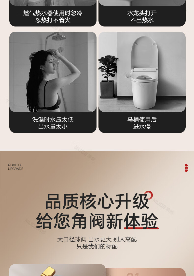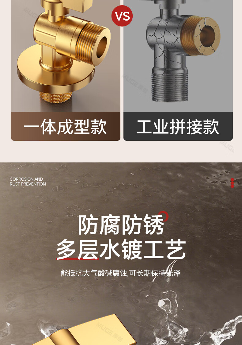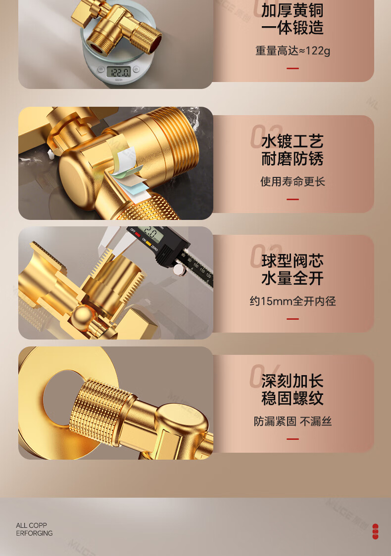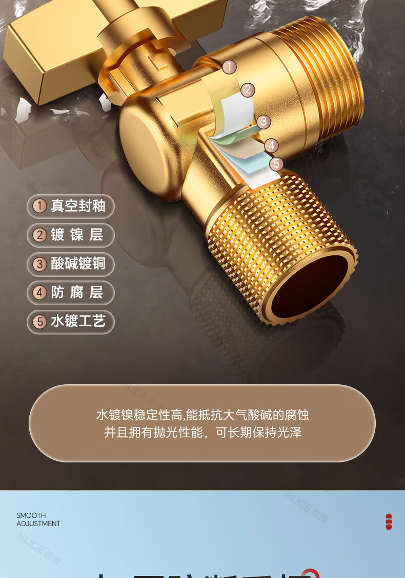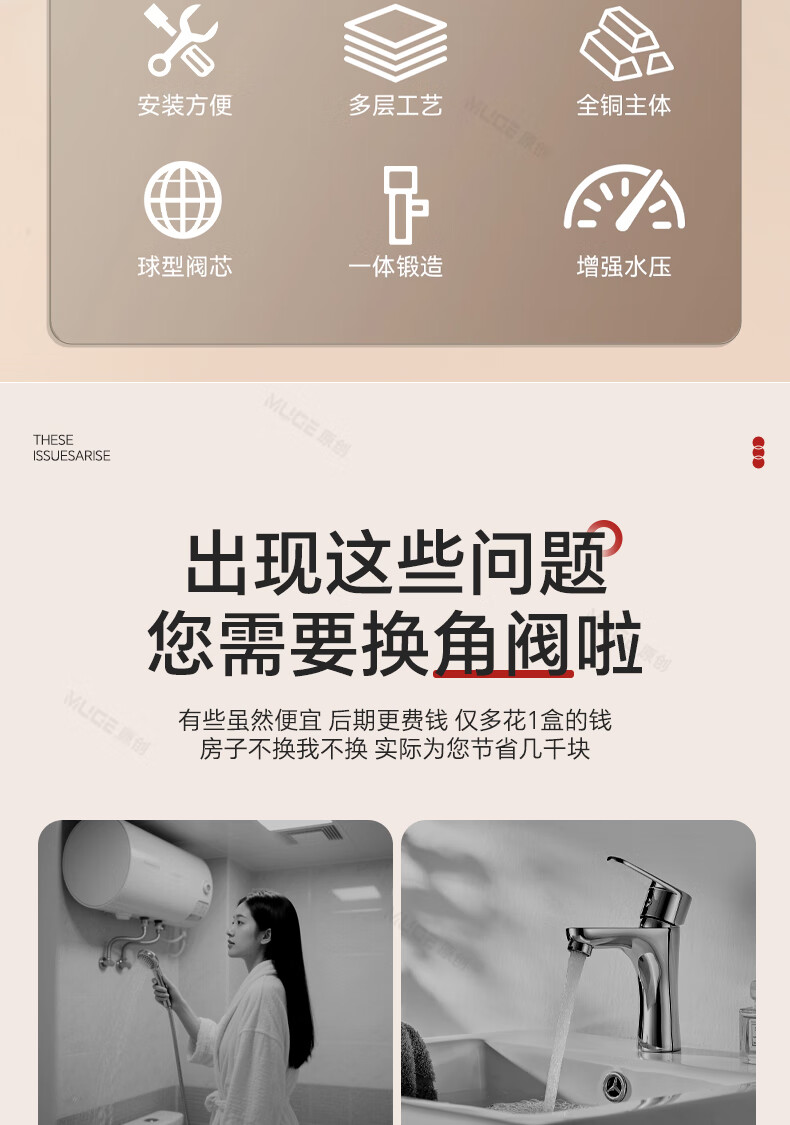睦歌(MUGE)四分热水器冷热水角阀全铜三角阀全开大流量止水阀门开关球阀套装 全铜加厚【1蓝1红】大流量角阀套装