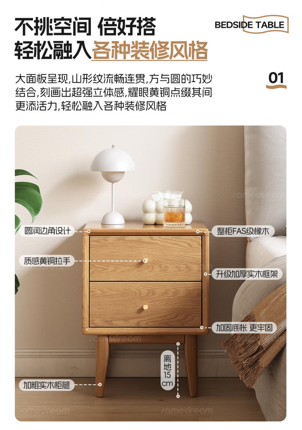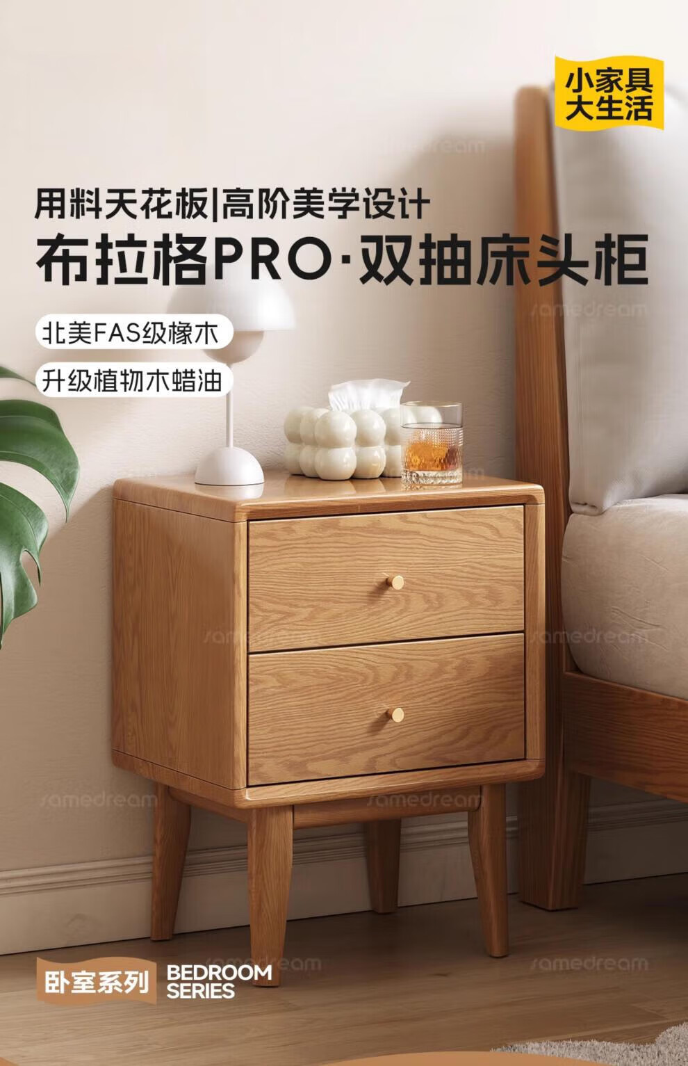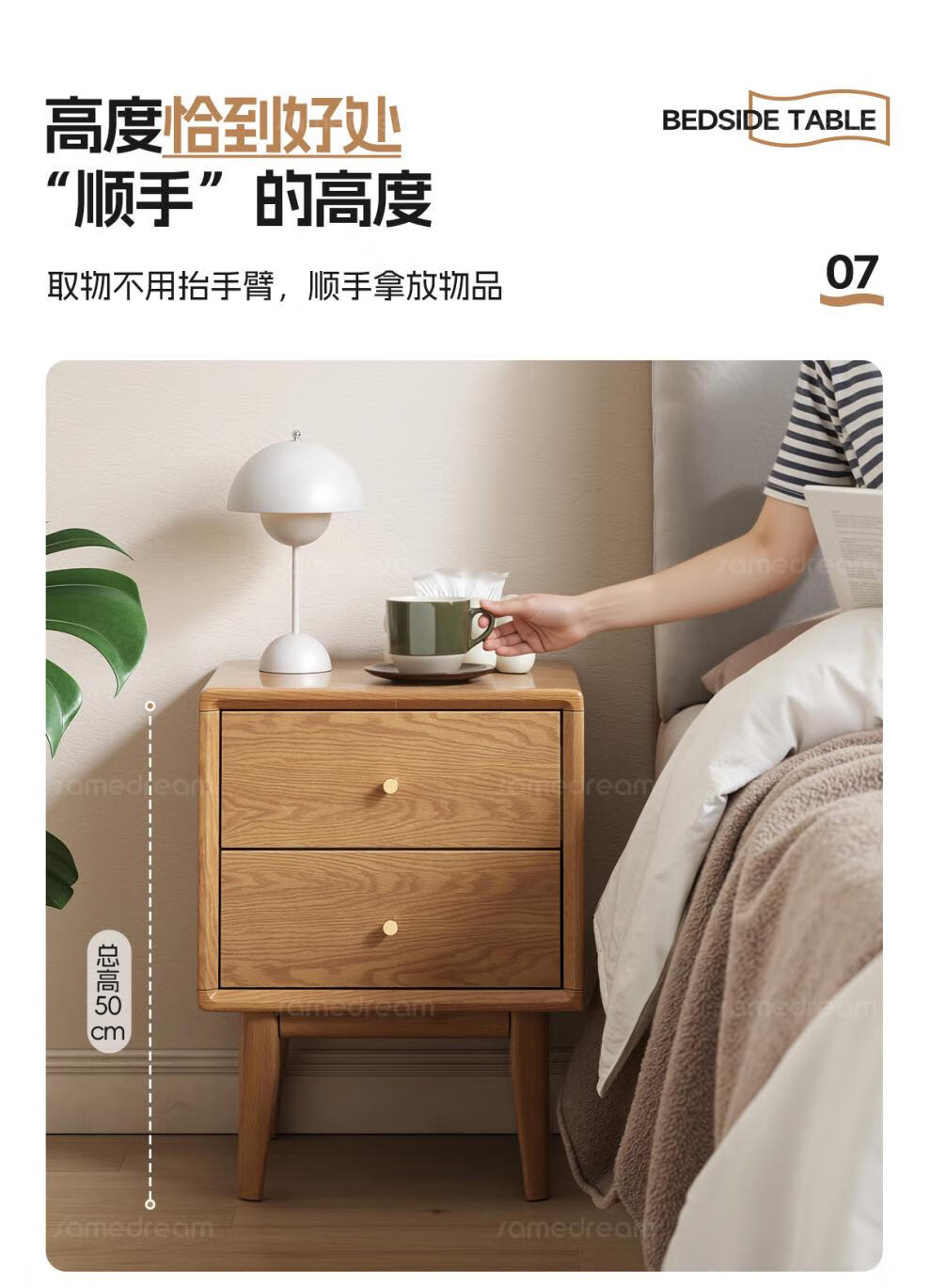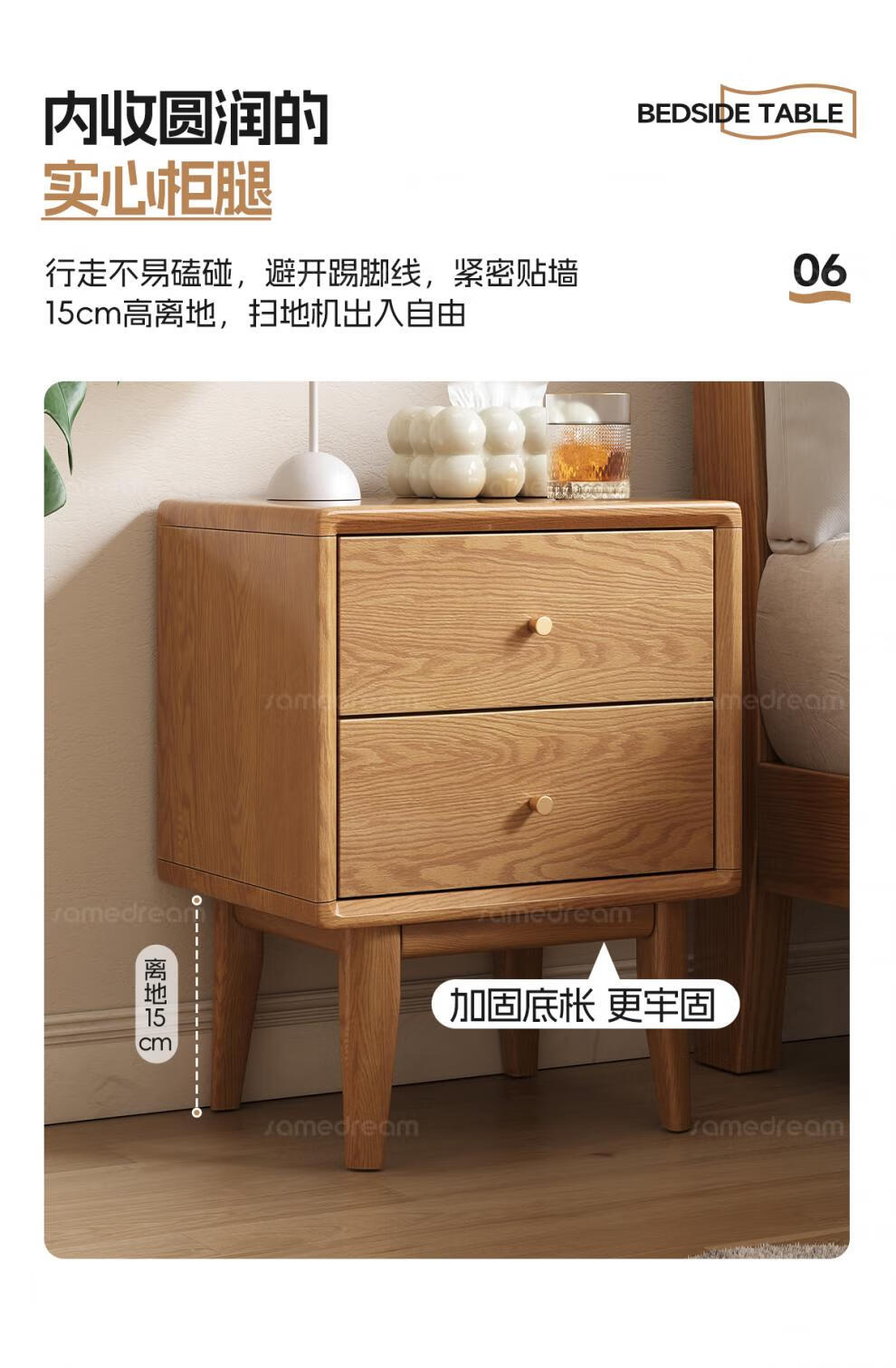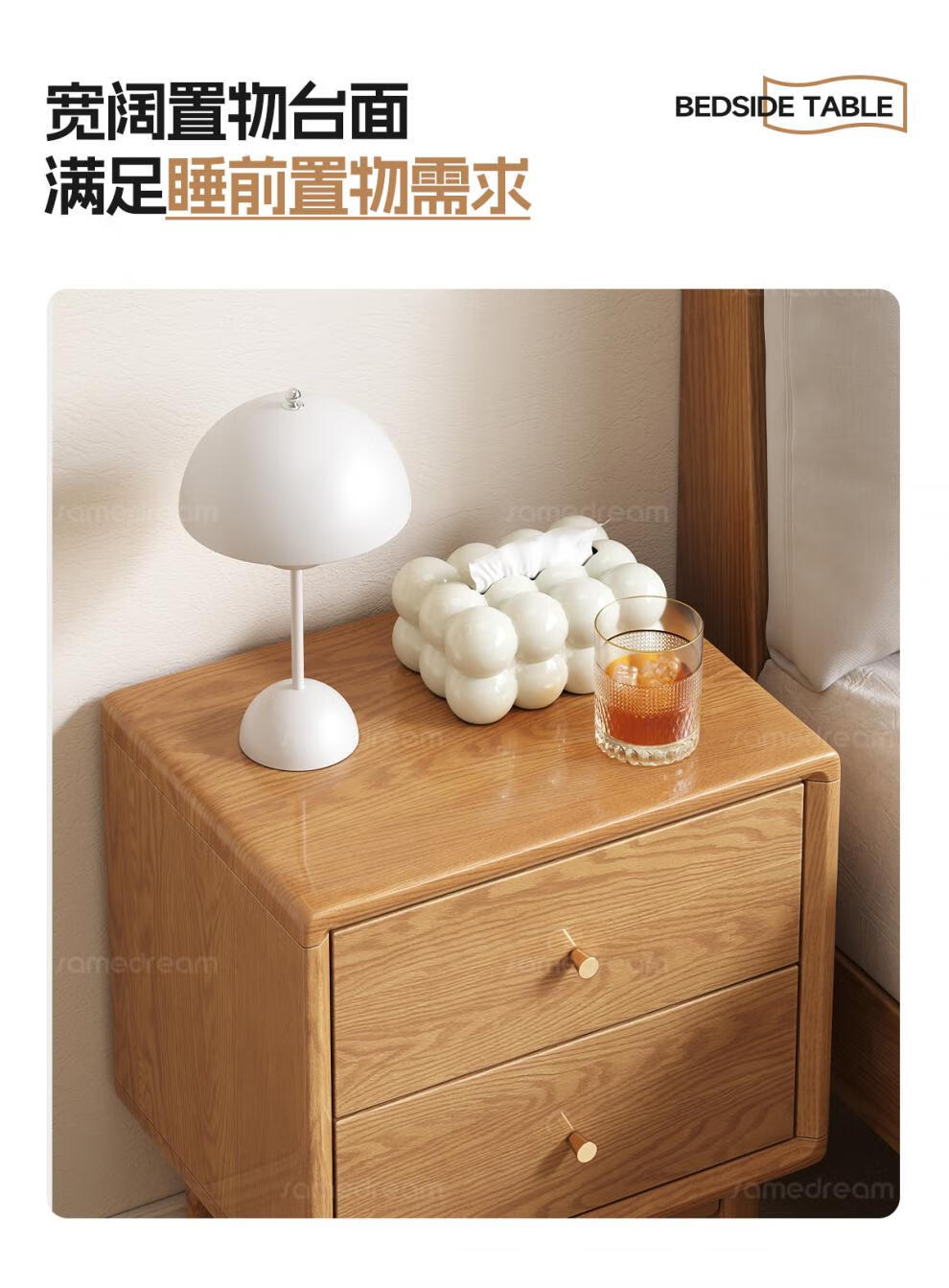 迈途森纯实木床头柜橡木家用卧室小柜子2025小型床边收纳柜子 (橡木原木色)床头柜(400*350*500)
