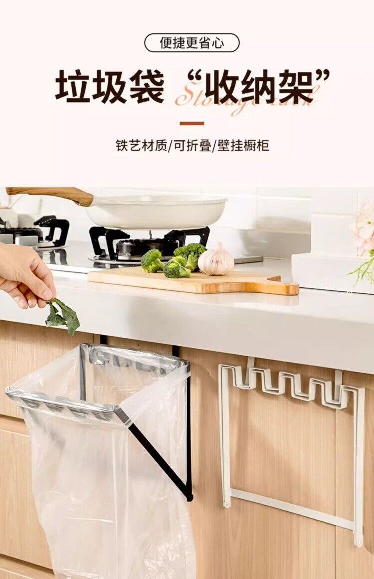 简漾可折叠垃圾桶垃圾家用厨房壁挂式卫生间塑料袋垃圾袋挂架支架收纳 黑色-单个装/无塑料袋
