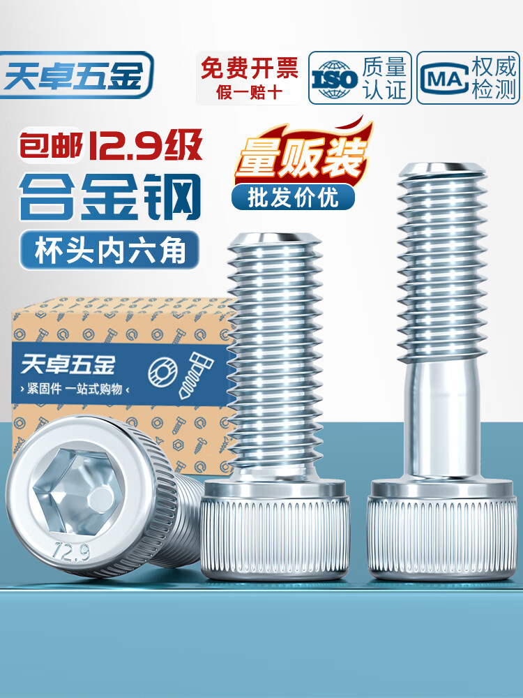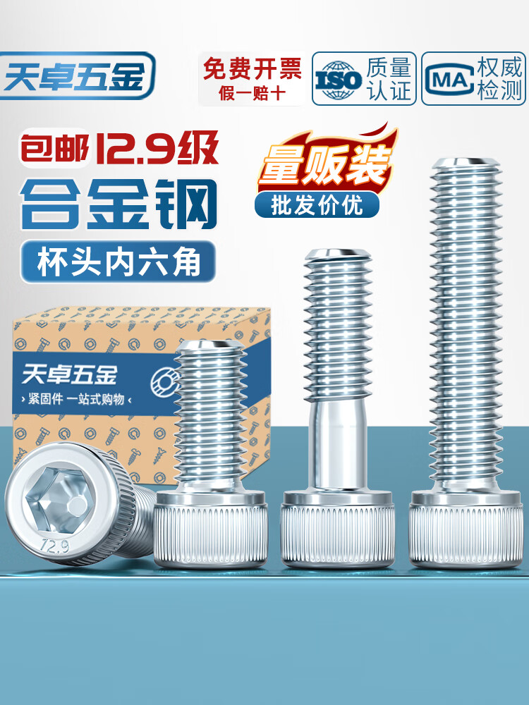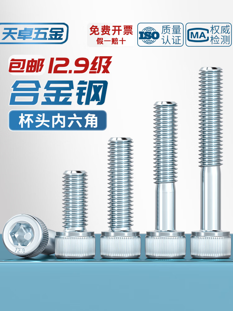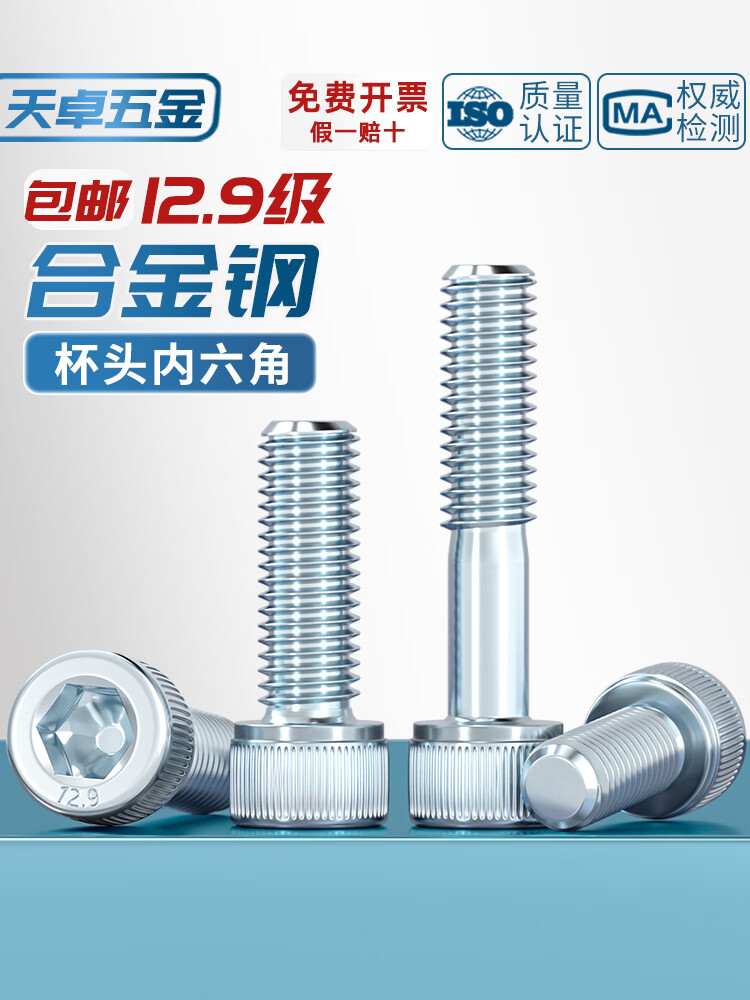 天卓五金12.9级镀锌杯头内六角螺丝钉蓝白锌圆柱头螺栓M4M5M6M8M10M12M16 M3*5【150个】