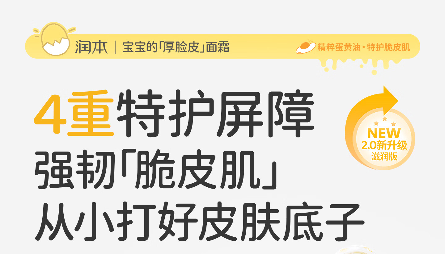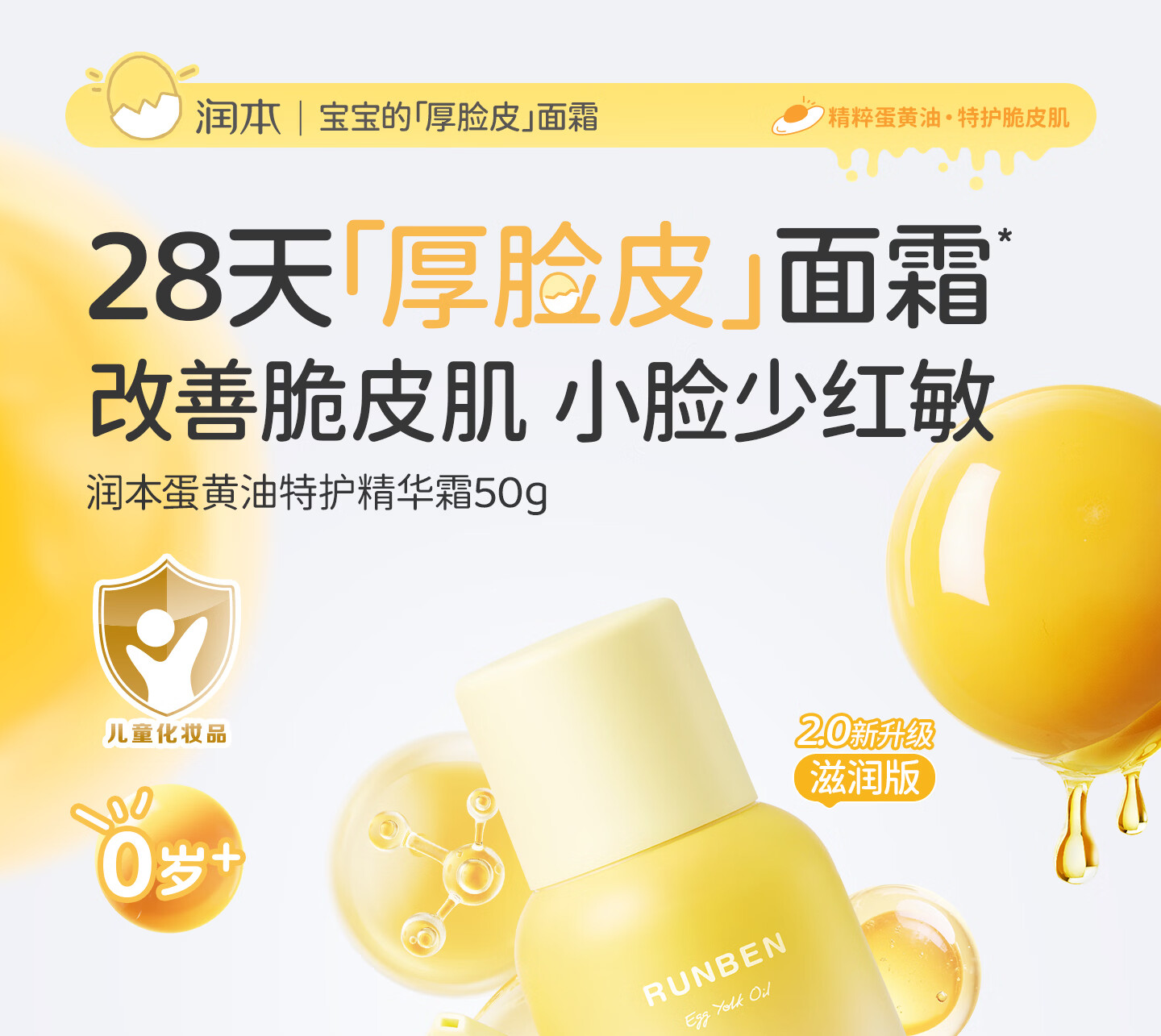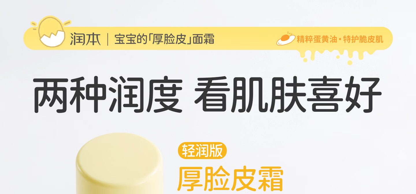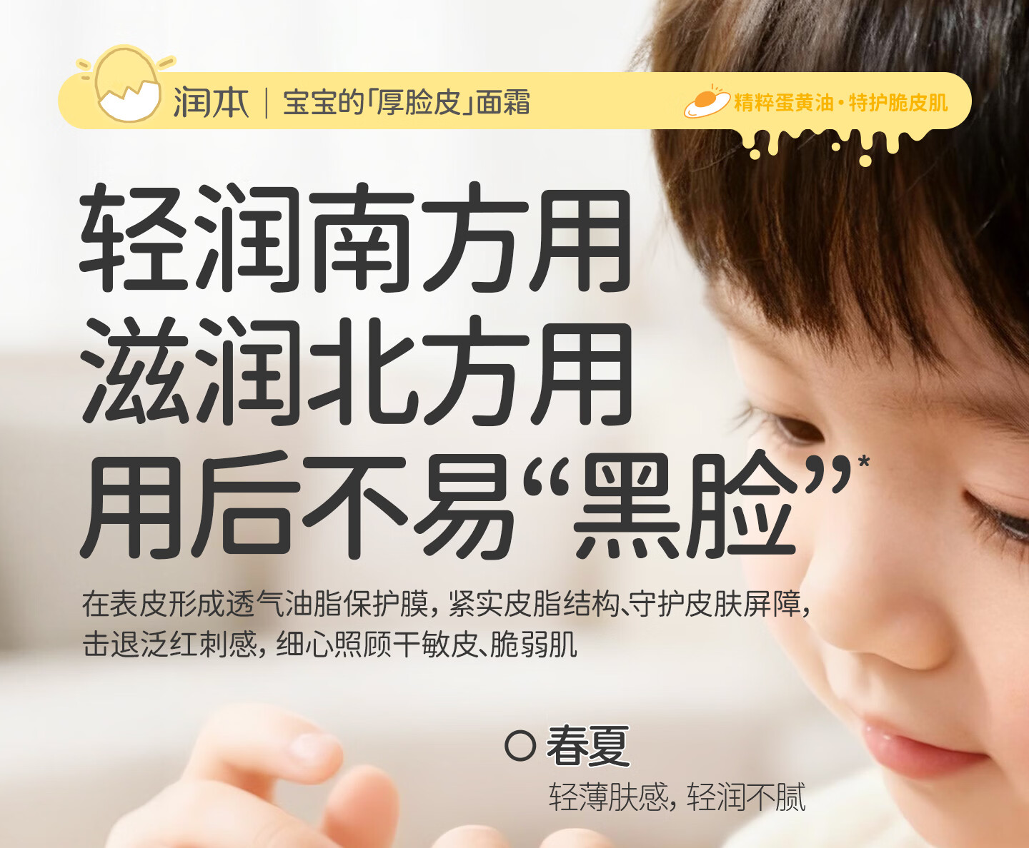 润本(RUNBEN)儿童面霜蛋黄油特护霜婴幼儿秋冬保湿滋润补水宝宝换季精华霜 轻润霜 50g 【南方换季推荐】