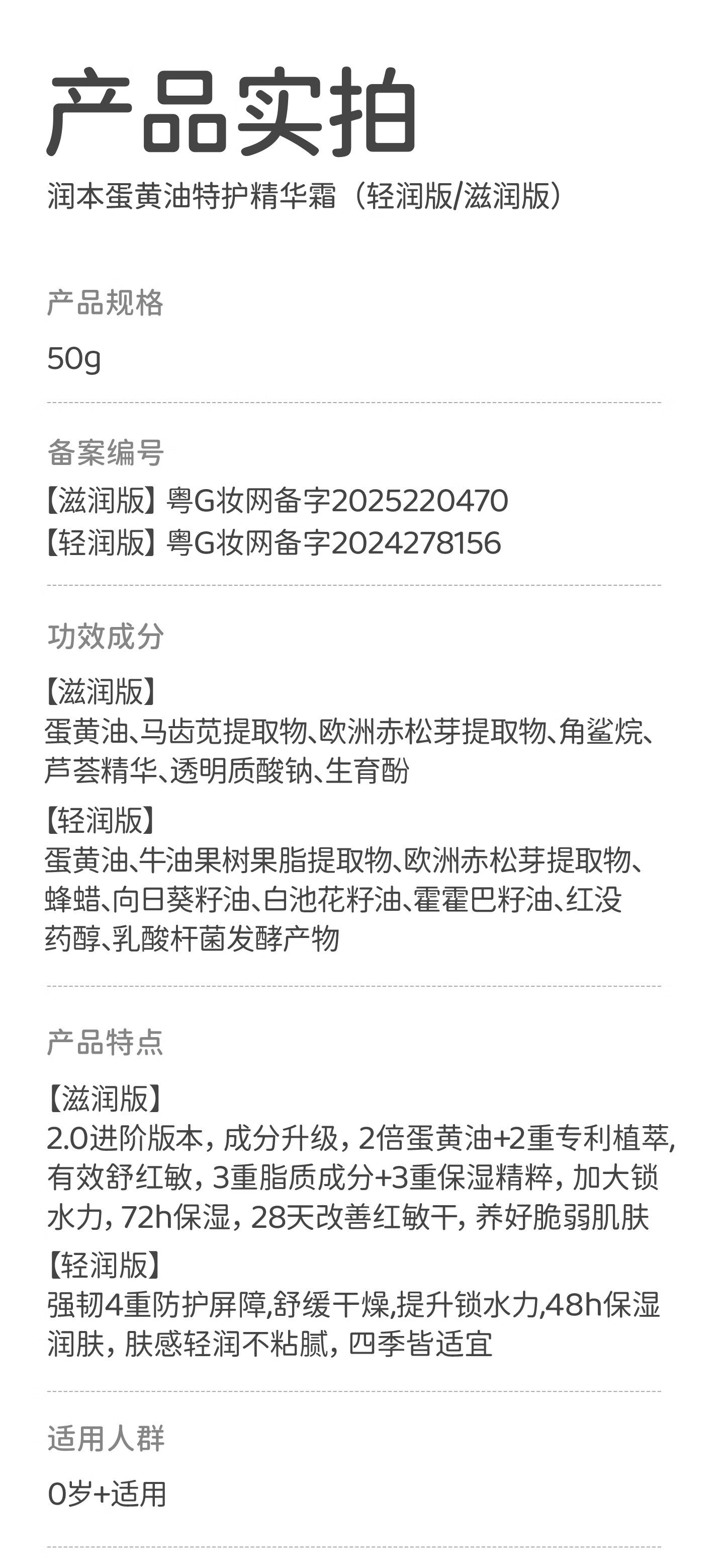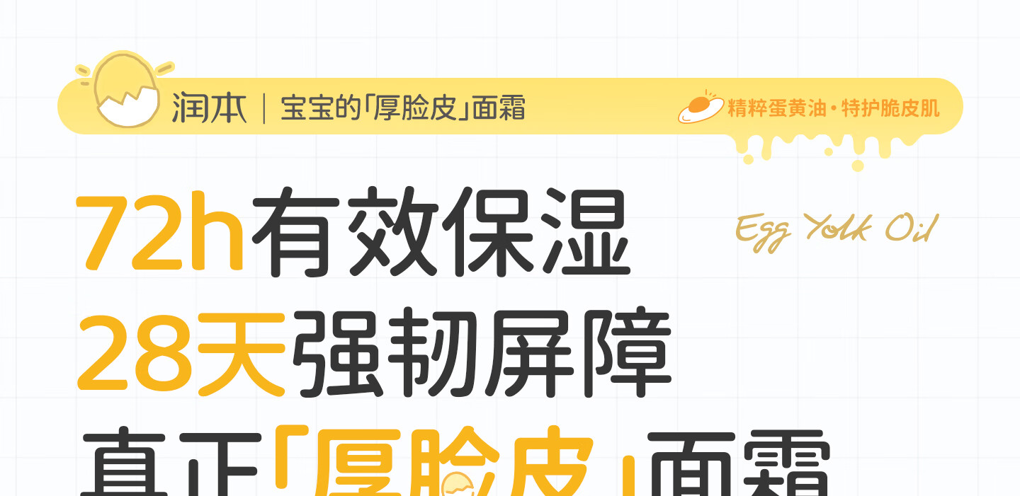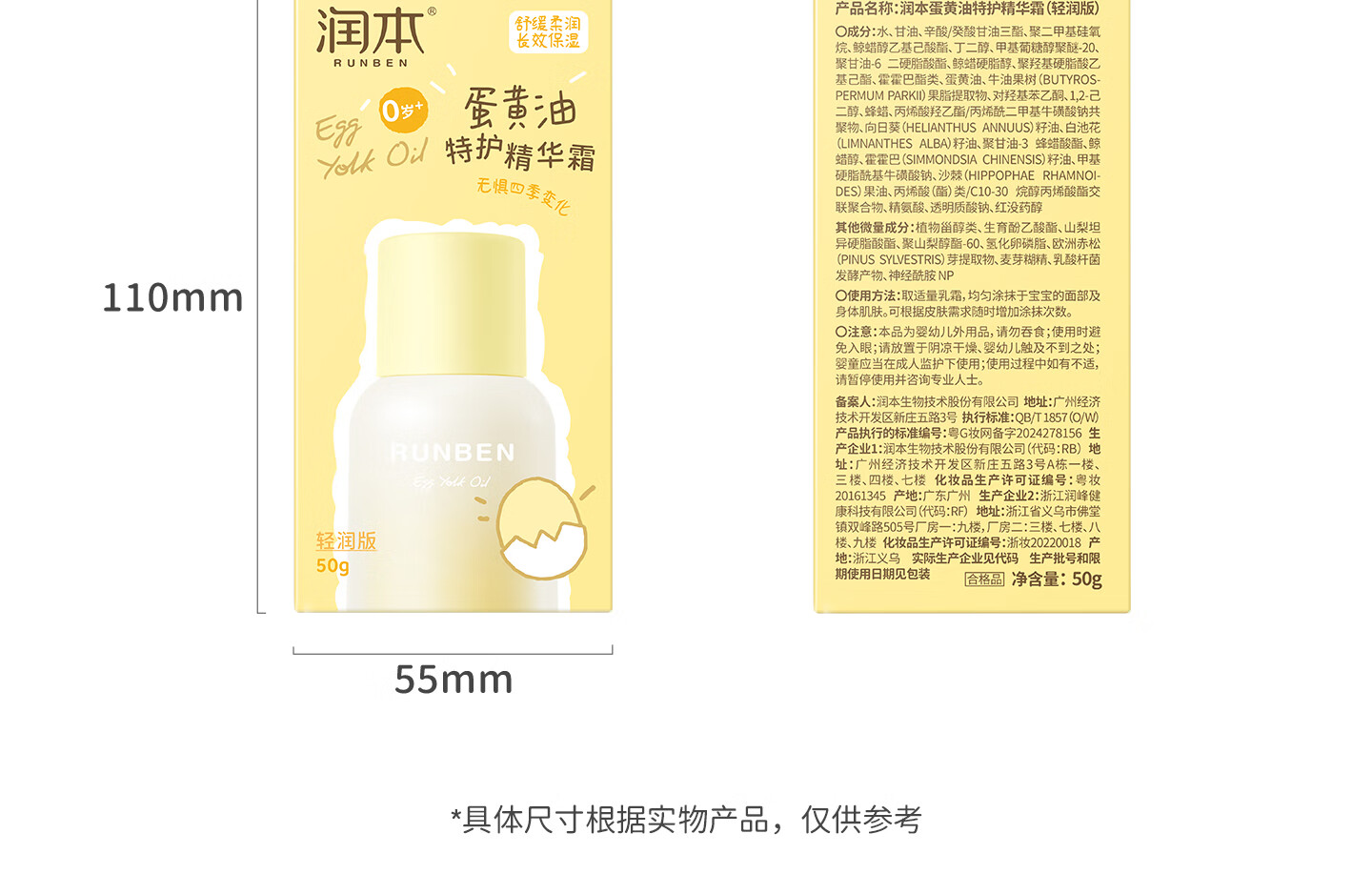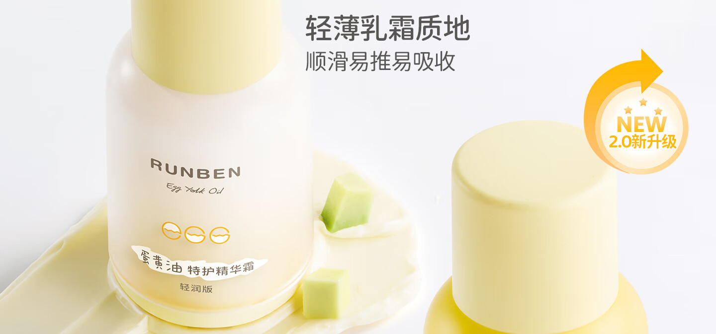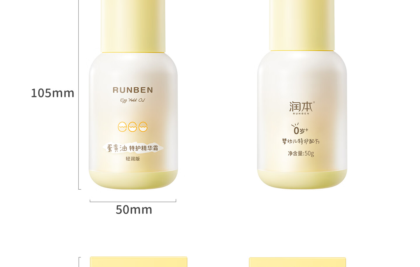 润本(RUNBEN)儿童面霜蛋黄油特护霜婴幼儿秋冬保湿滋润补水宝宝换季精华霜 轻润霜 50g 【南方换季推荐】