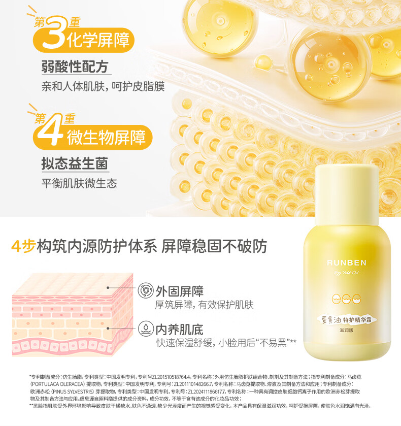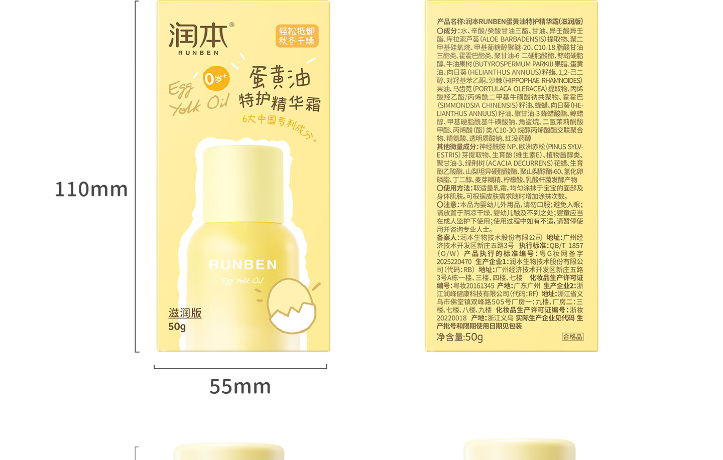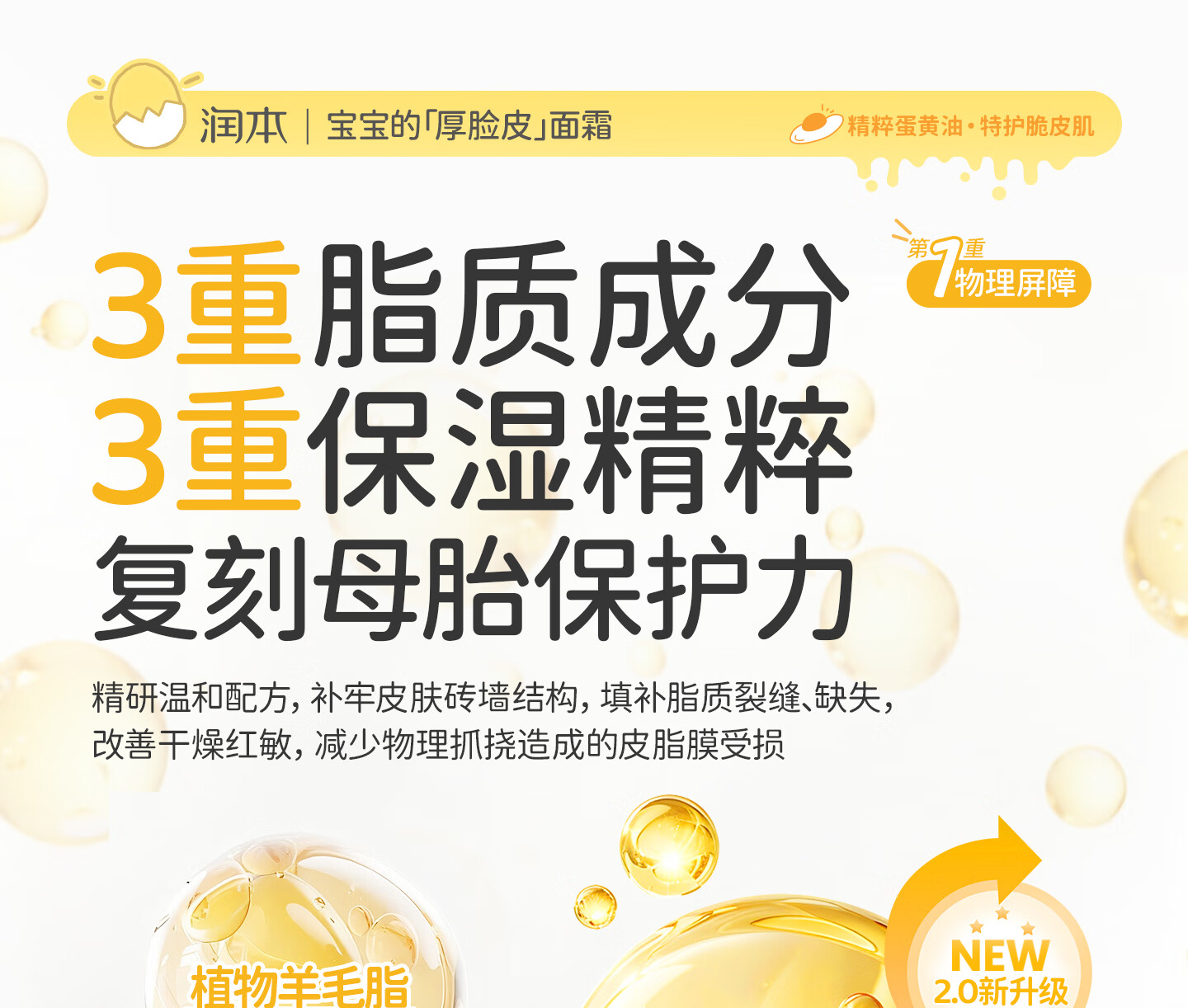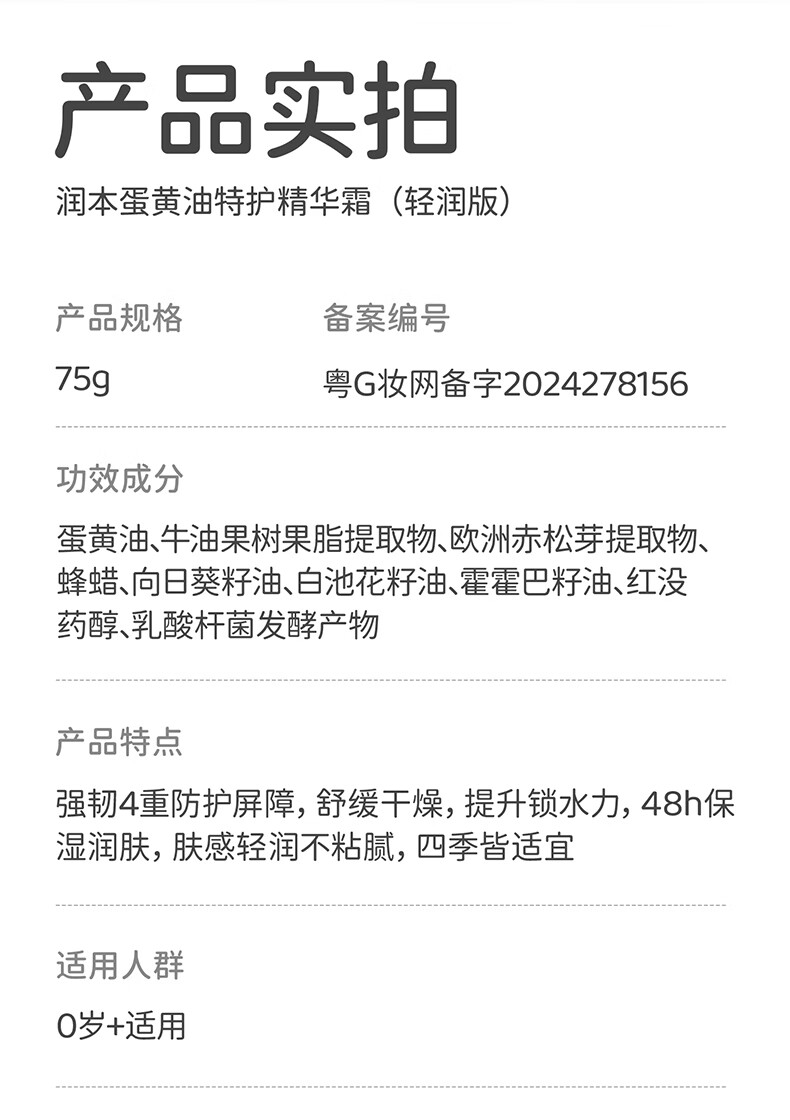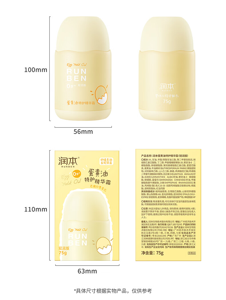 润本(RUNBEN)儿童面霜蛋黄油特护霜婴幼儿秋冬保湿滋润补水宝宝换季精华霜 轻润霜 50g 【南方换季推荐】