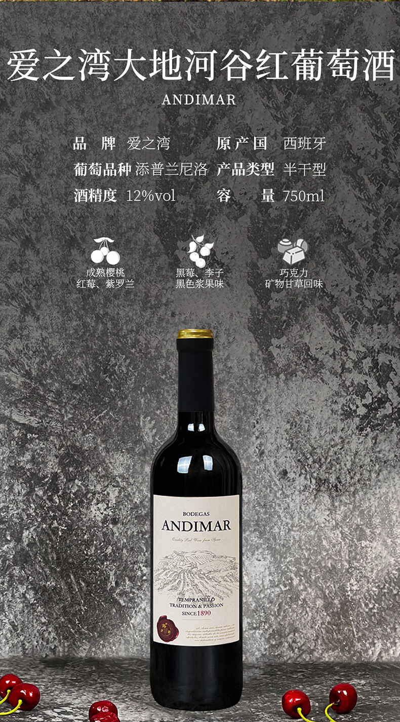 爱之湾红葡萄酒单瓶装750ml*1 西班牙原瓶进口