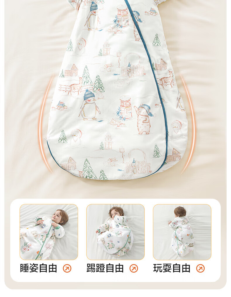 贝肽斯婴儿恒温睡袋宝宝1-3岁秋春秋儿童防踢被子保暖分腿式防惊跳睡袋 海之微笑【秋冬中厚 10-20°】 M码【适合身高62-85cm】建议年龄9个月-2岁