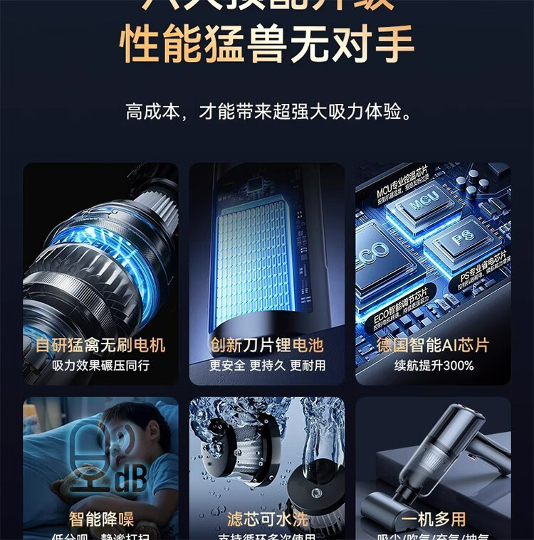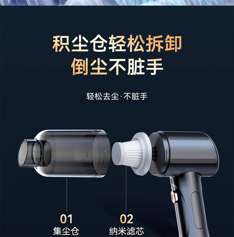 筏芯德国车载吸尘器车用无线充电汽车家用大吸力功率强力小型手持迷你 无刷豪华款【99999R爆吸】无刷电机超级快充滤芯