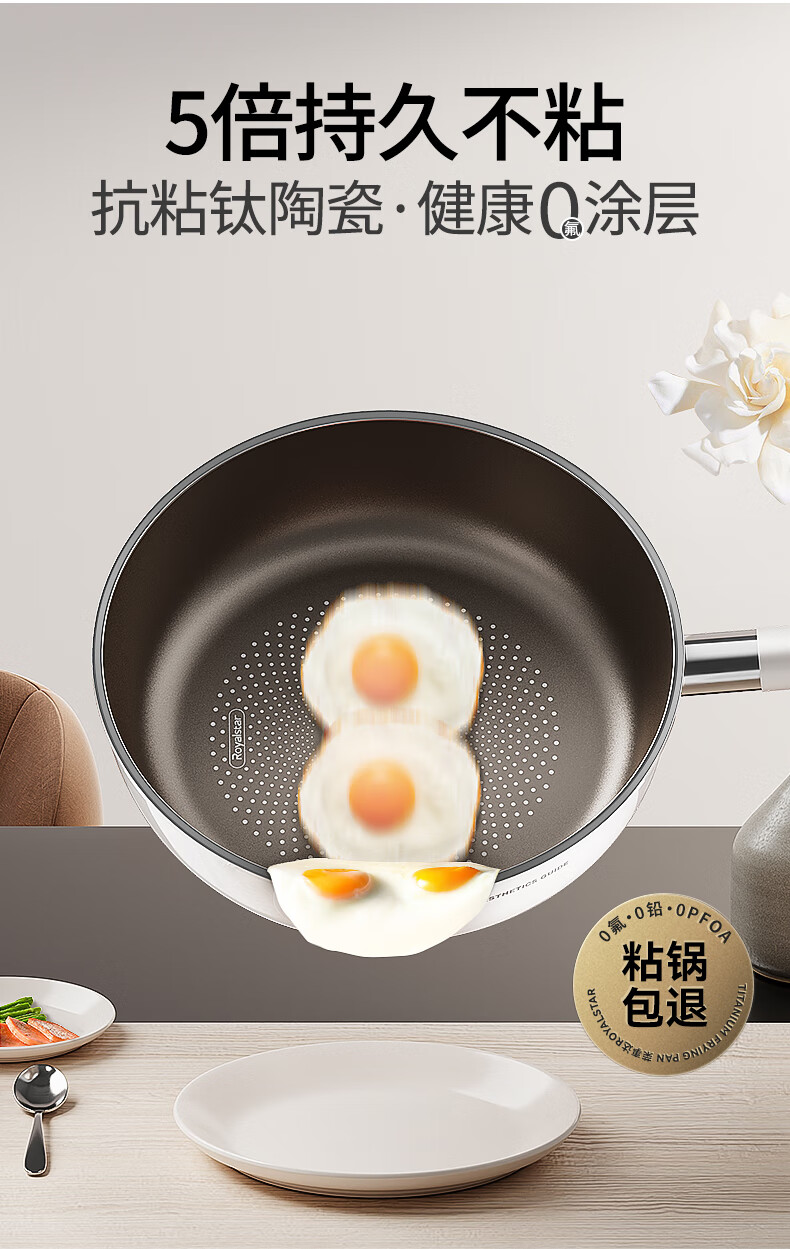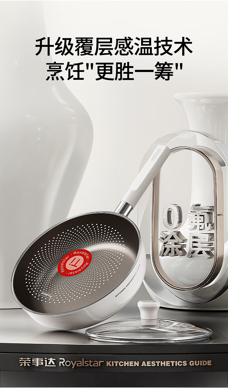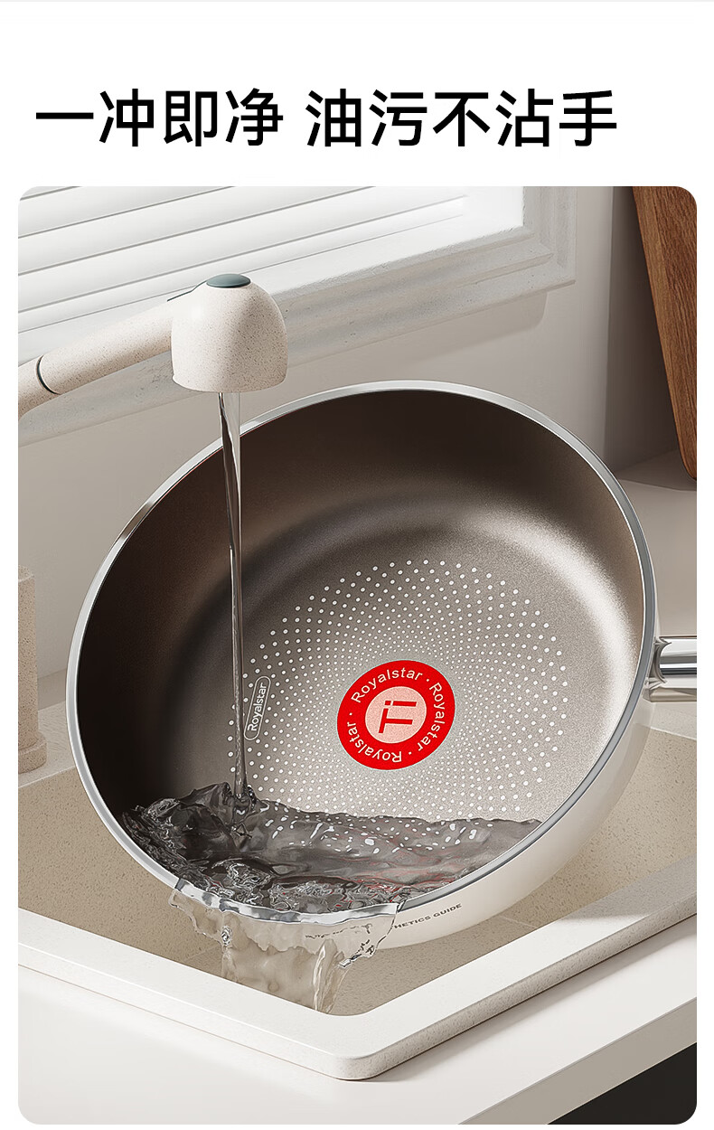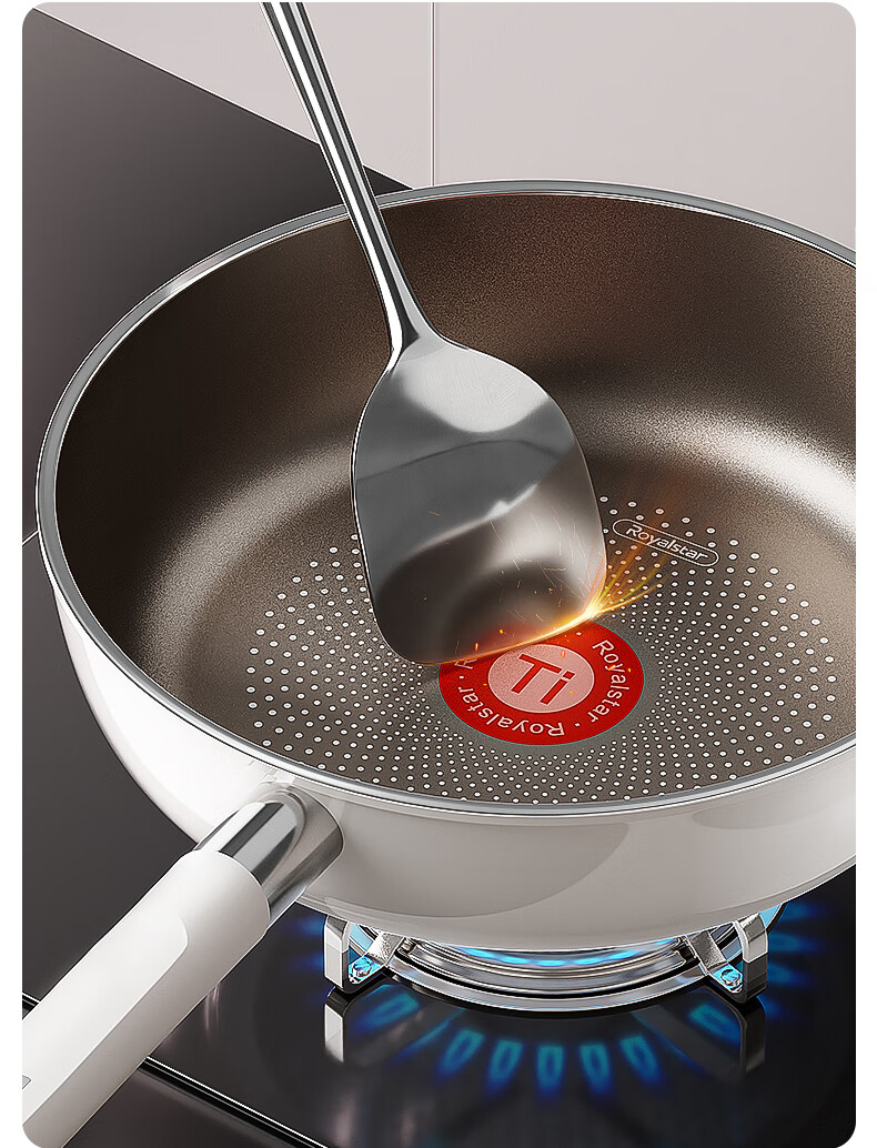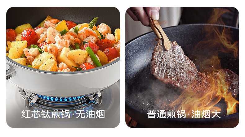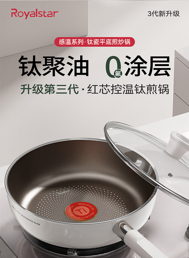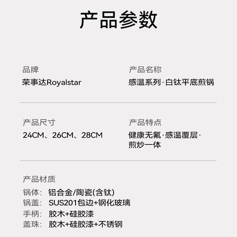 荣事达钛陶瓷无涂层不粘锅平底锅家用牛排电磁炉煤气灶专用深煎锅 升级款24cm无盖 【红芯控温 煎炒一体】1-2人使用