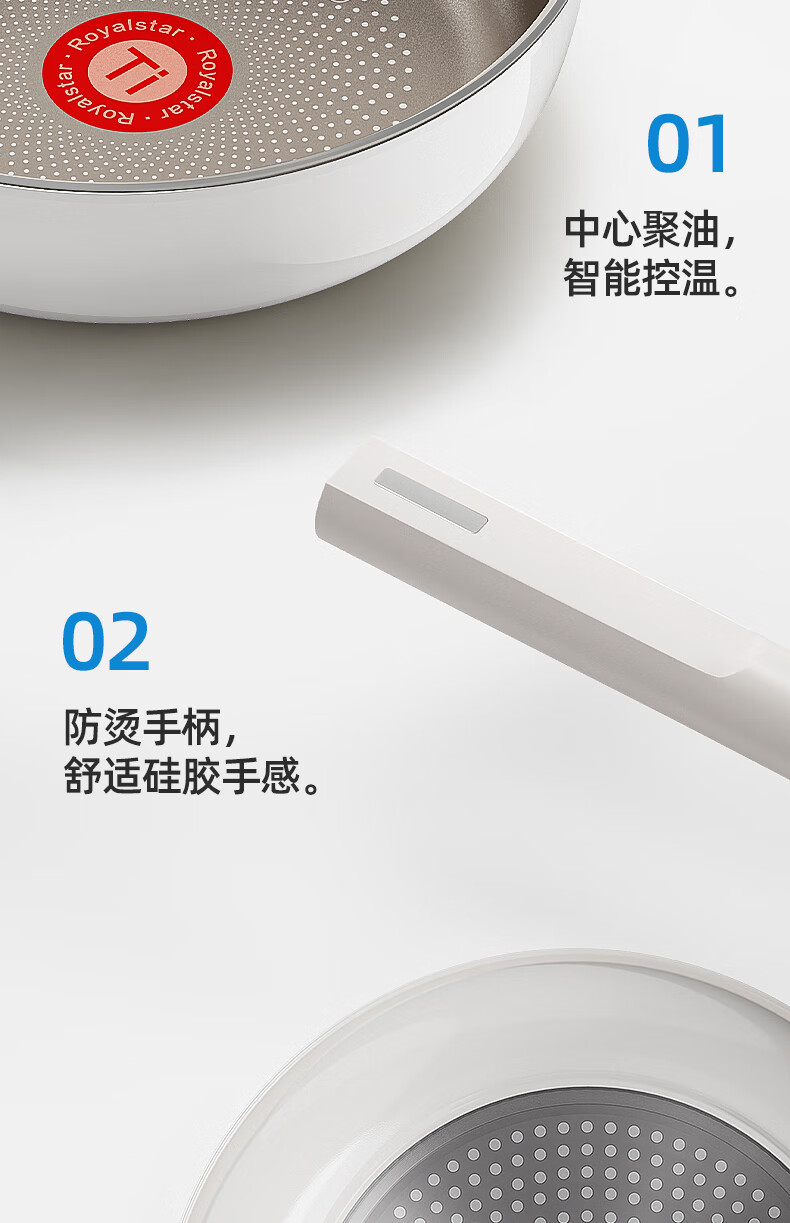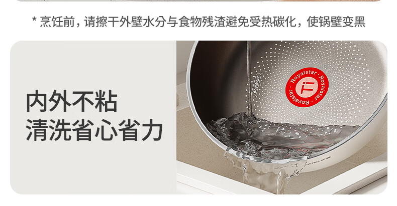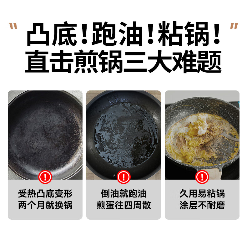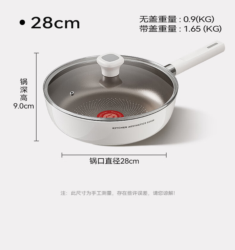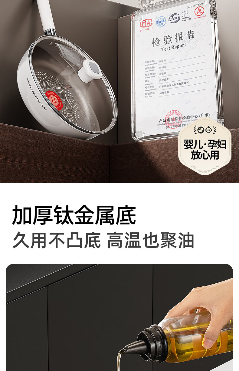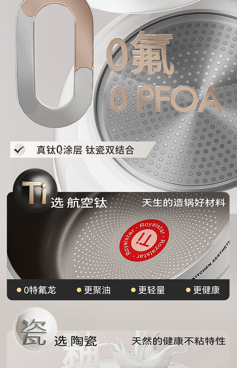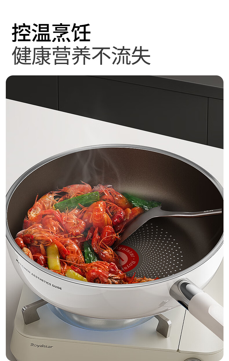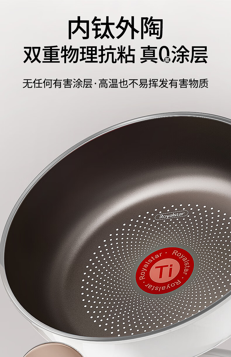 荣事达钛陶瓷无涂层不粘锅平底锅家用牛排电磁炉煤气灶专用深煎锅 升级款24cm无盖 【红芯控温 煎炒一体】1-2人使用