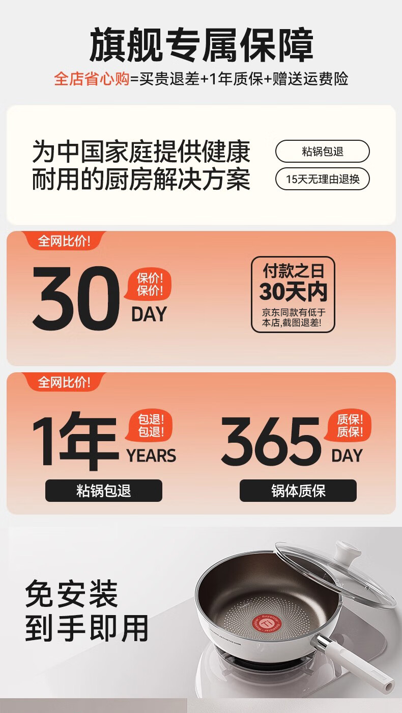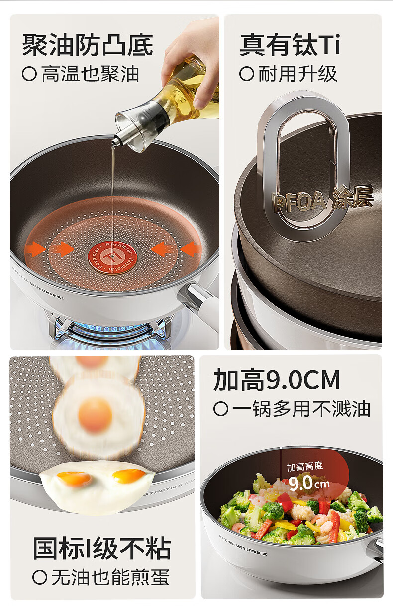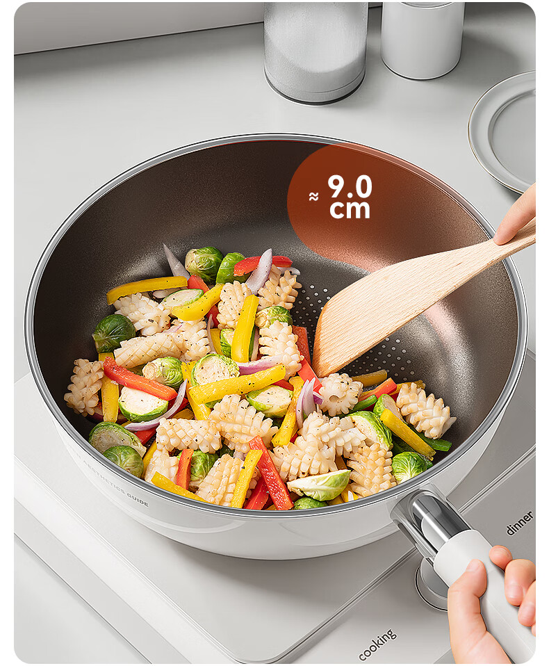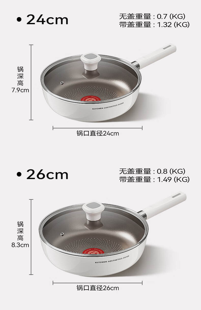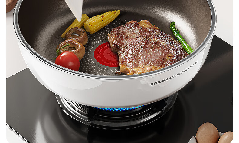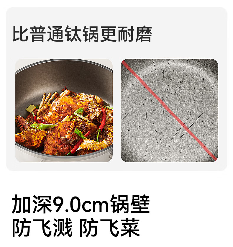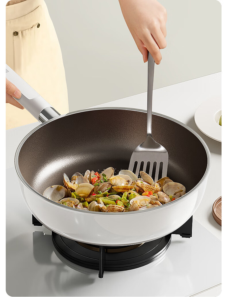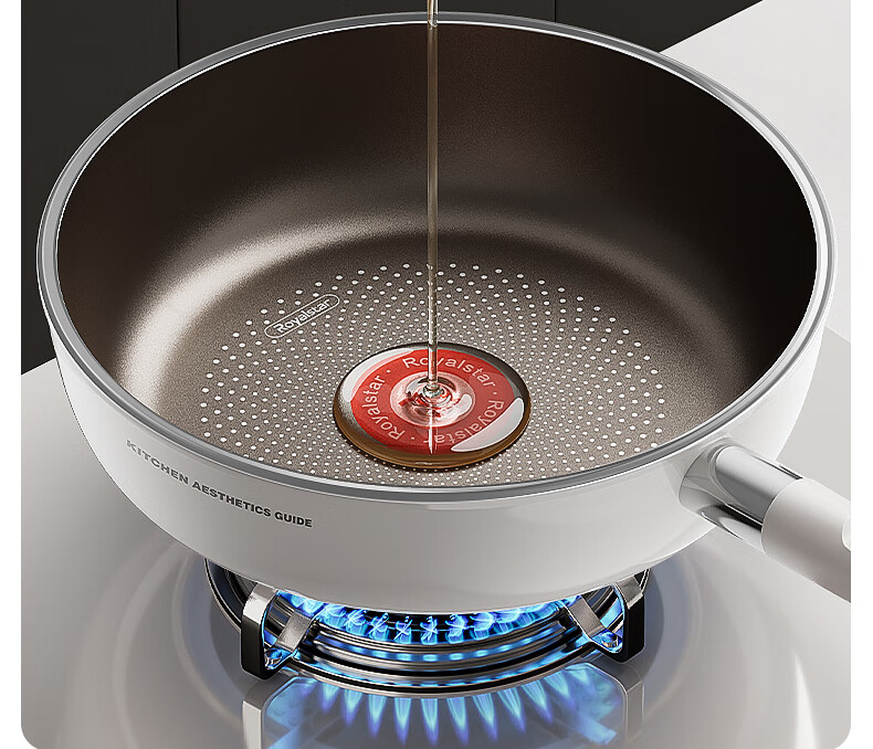 荣事达钛陶瓷无涂层不粘锅平底锅家用牛排电磁炉煤气灶专用深煎锅 升级款24cm无盖 【红芯控温 煎炒一体】1-2人使用
