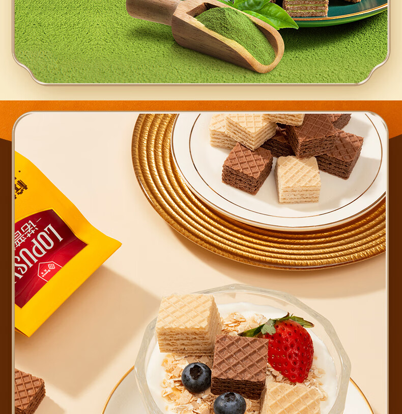 丹夫抹茶巧克力威化饼干80g/袋休闲健康早餐零食下午茶能量糕点