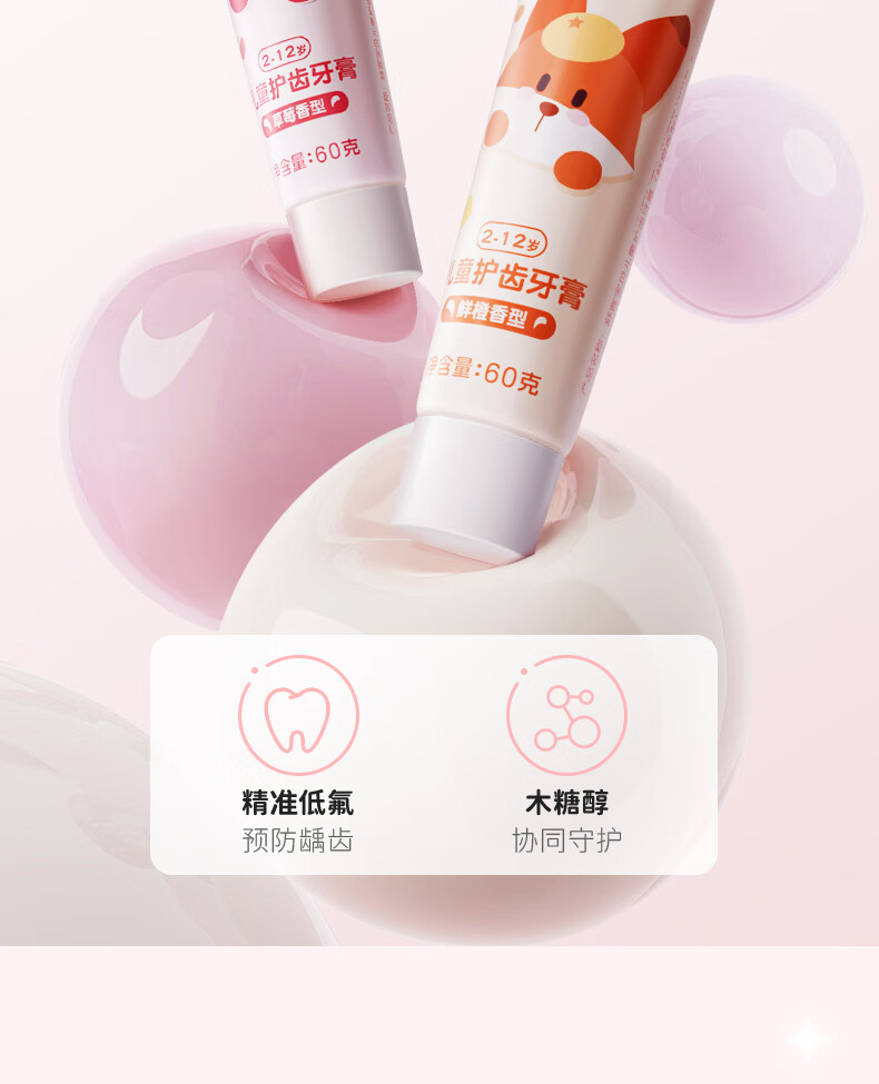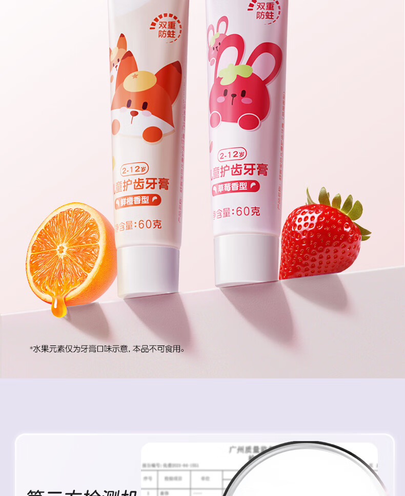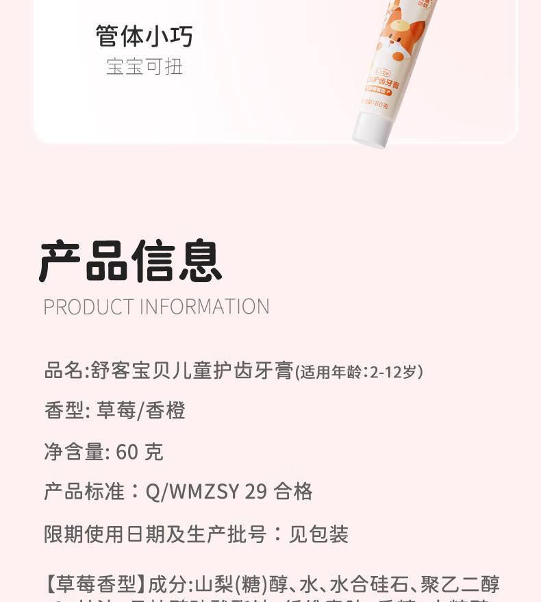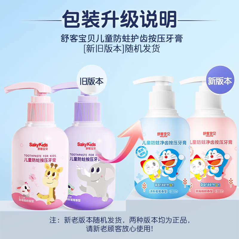 舒客按压式儿童宝宝牙膏含氟防蛀3一6一12岁以上换牙期 按压草莓+按压葡萄 150g 2瓶