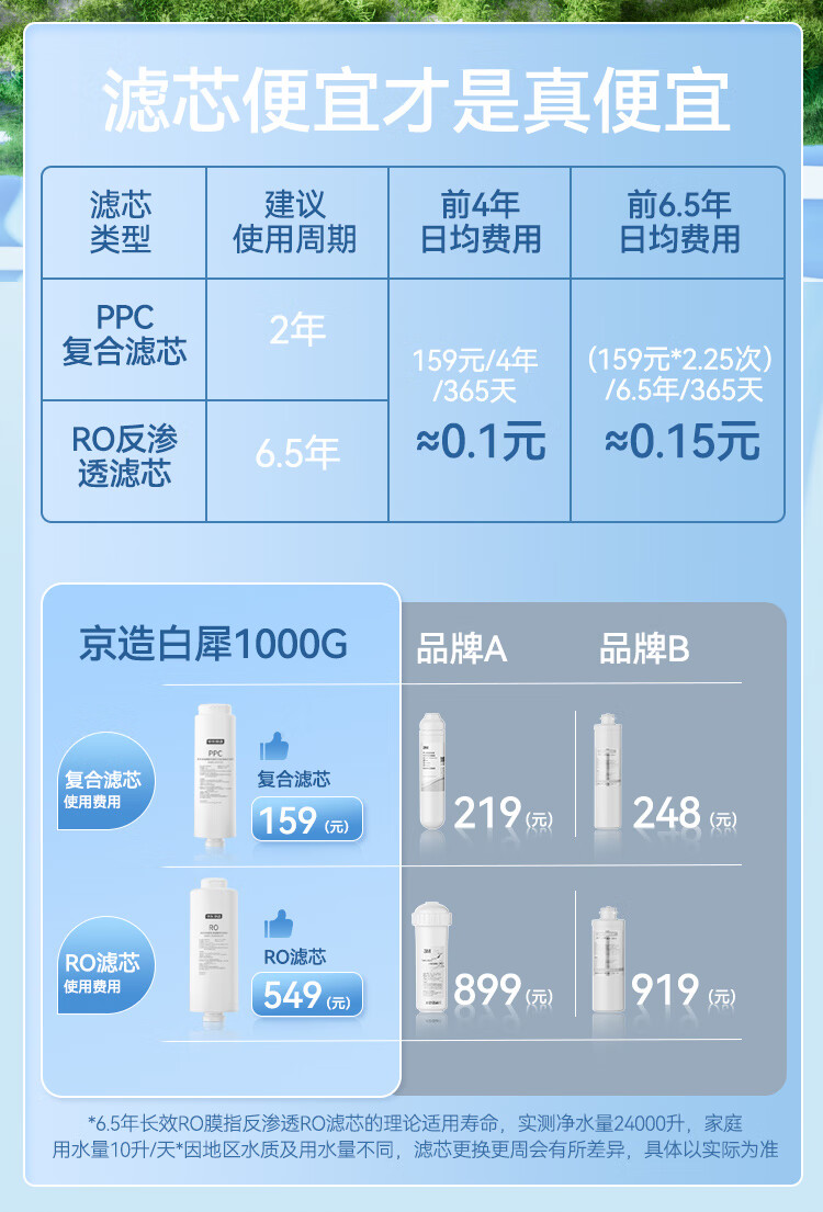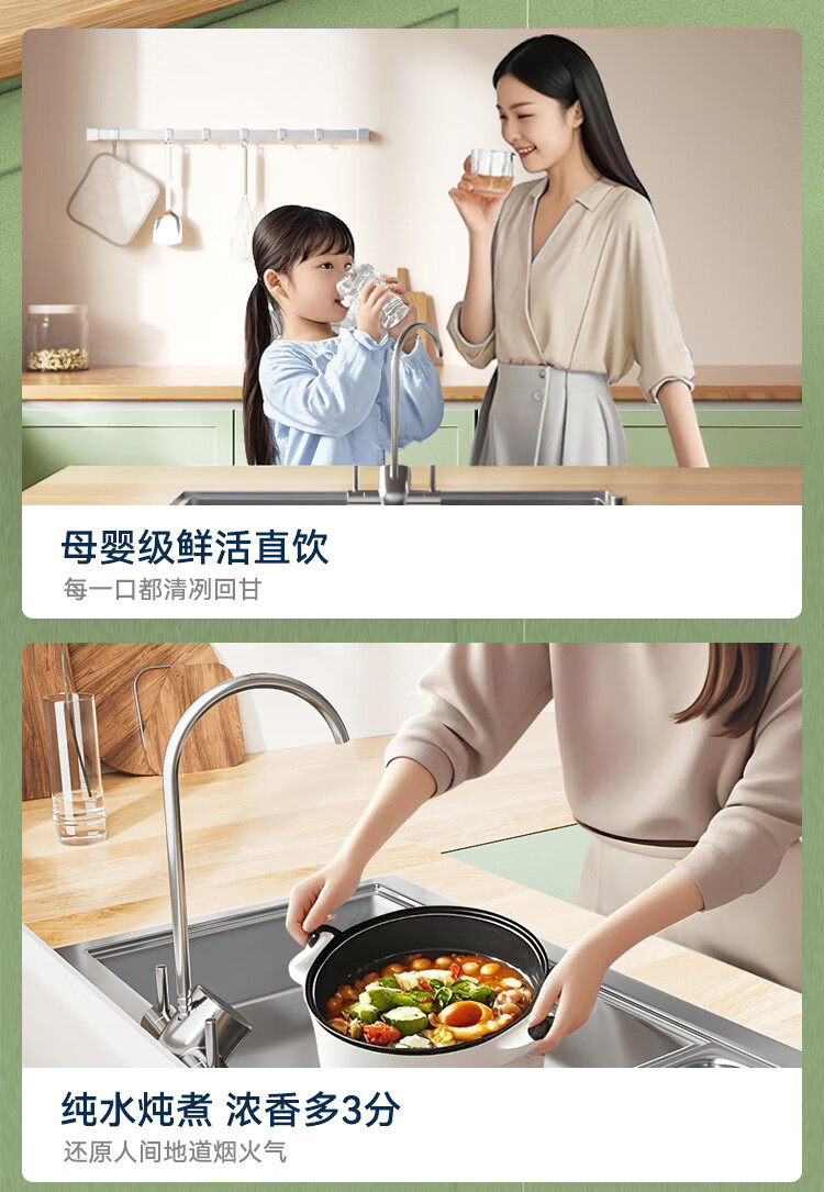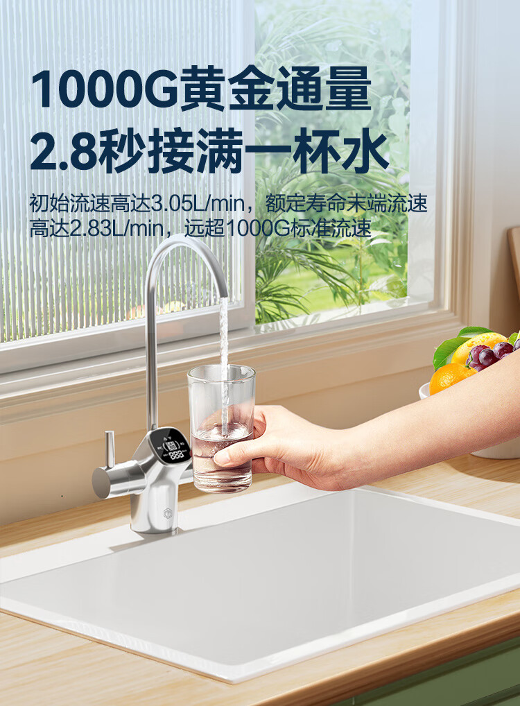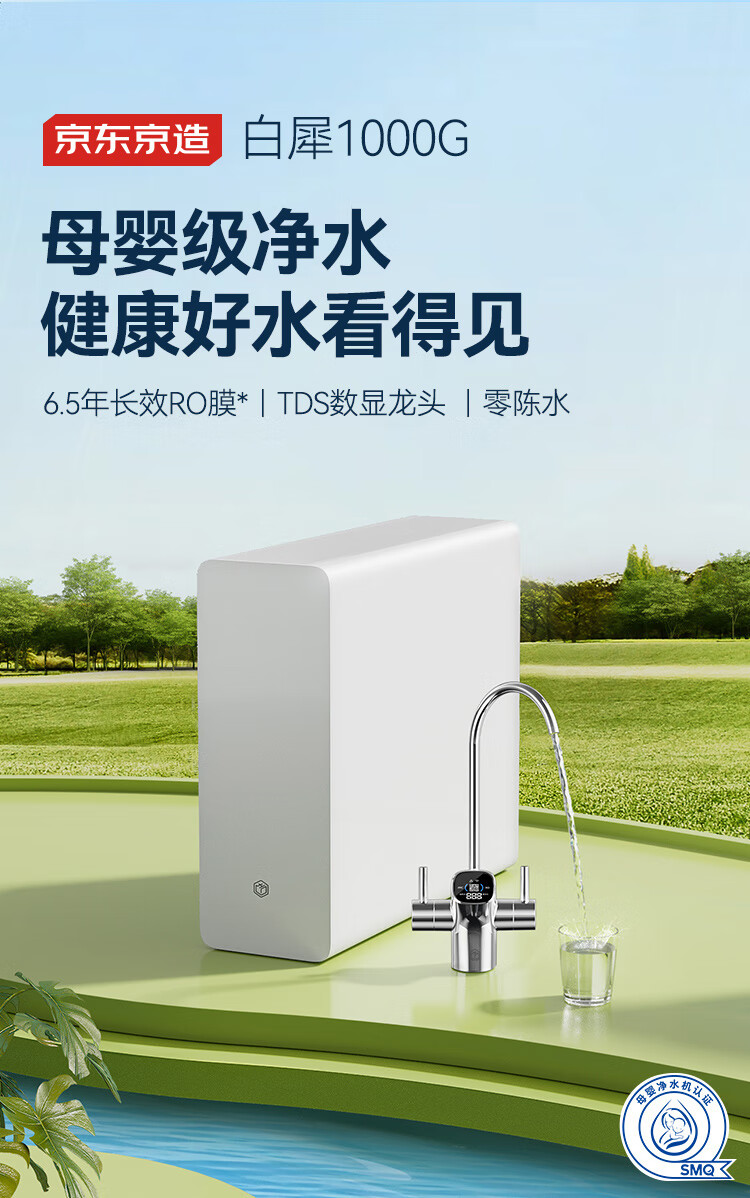京东京造鲜活水净水器家用净水机白犀1000G 长效RO反渗透无阻垢剂母婴厨下直饮机净饮机一体家电国家补贴