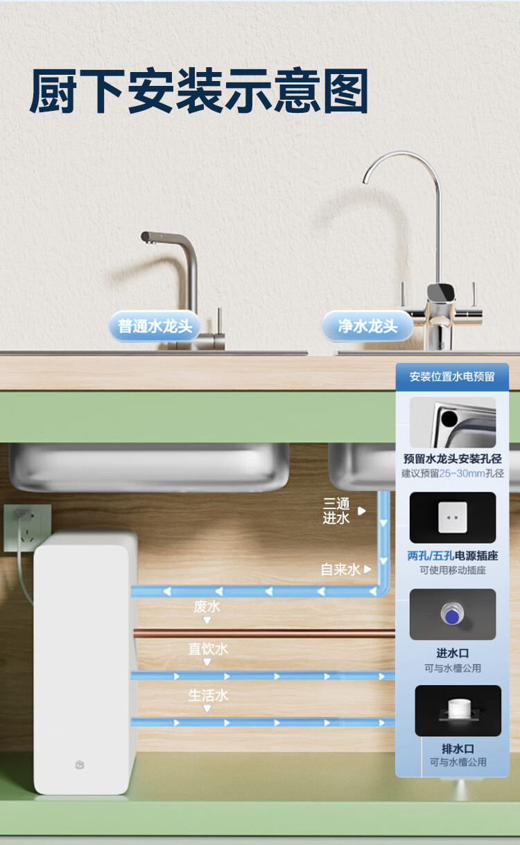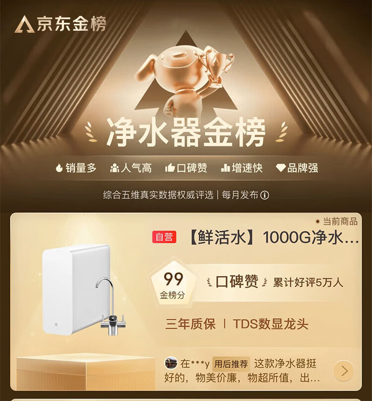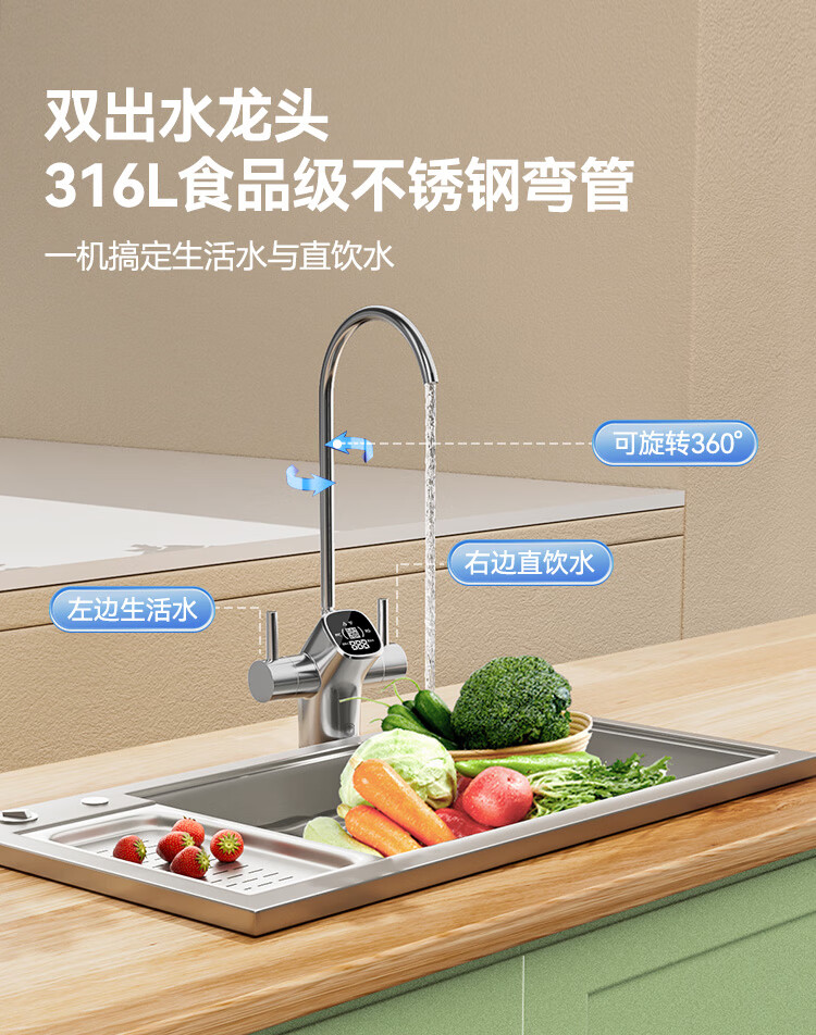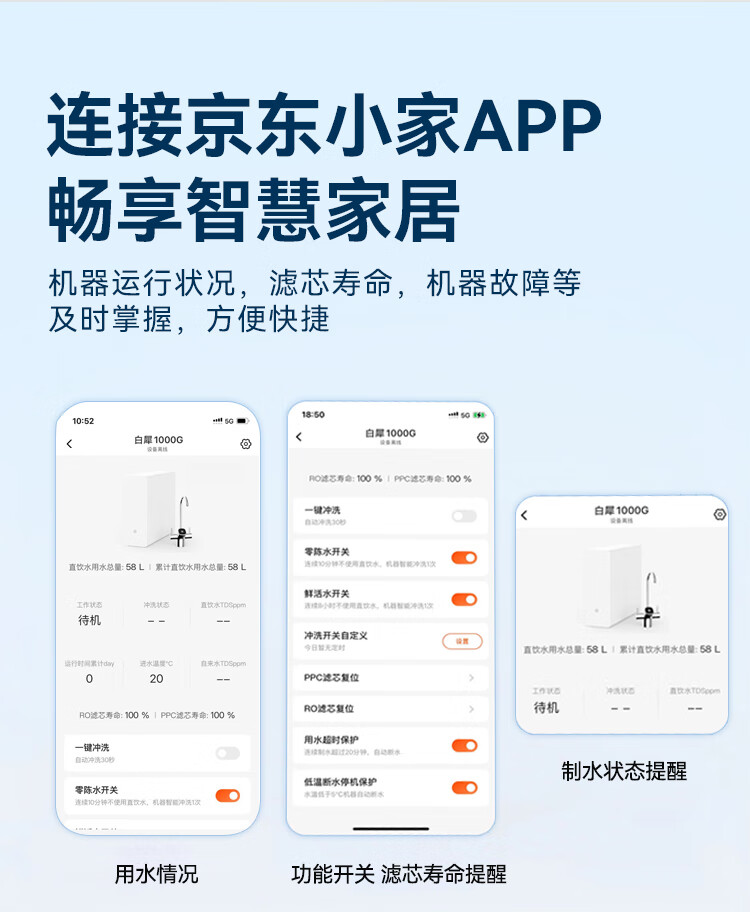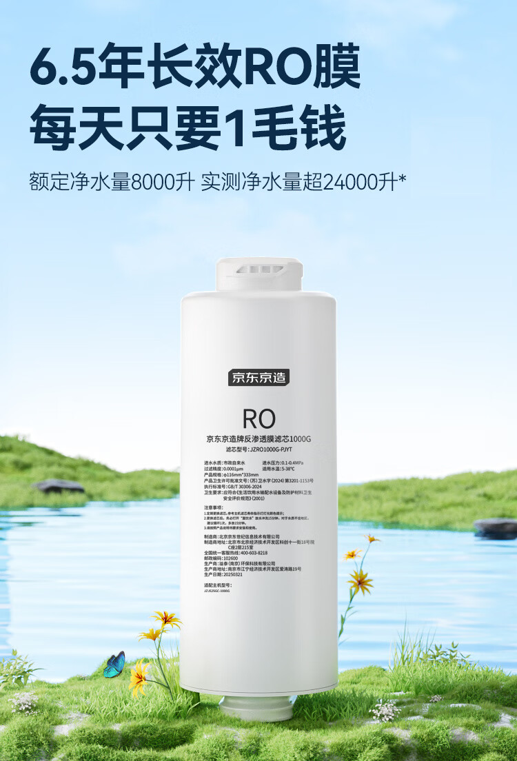 京东京造鲜活水净水器家用净水机白犀1000G 长效RO反渗透无阻垢剂母婴厨下直饮机净饮机一体家电国家补贴