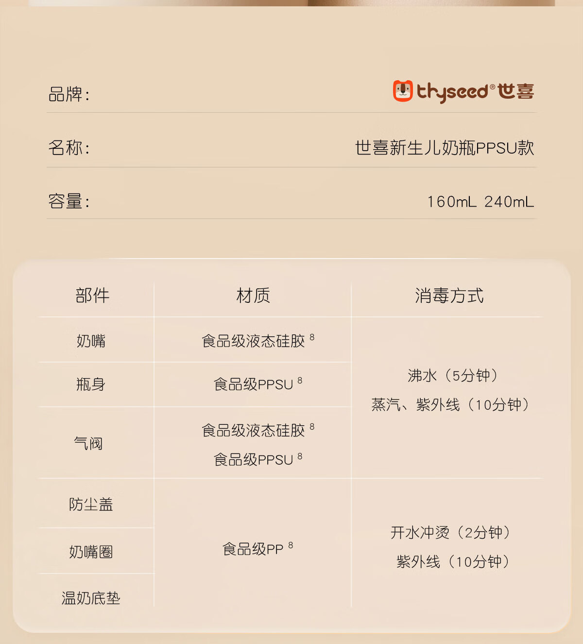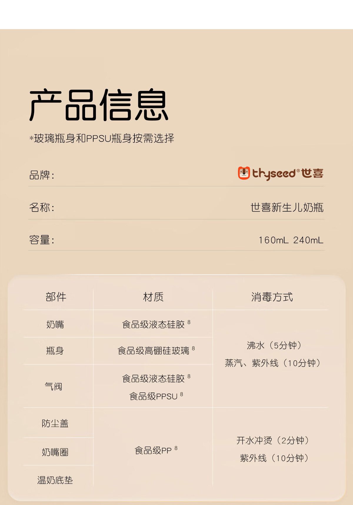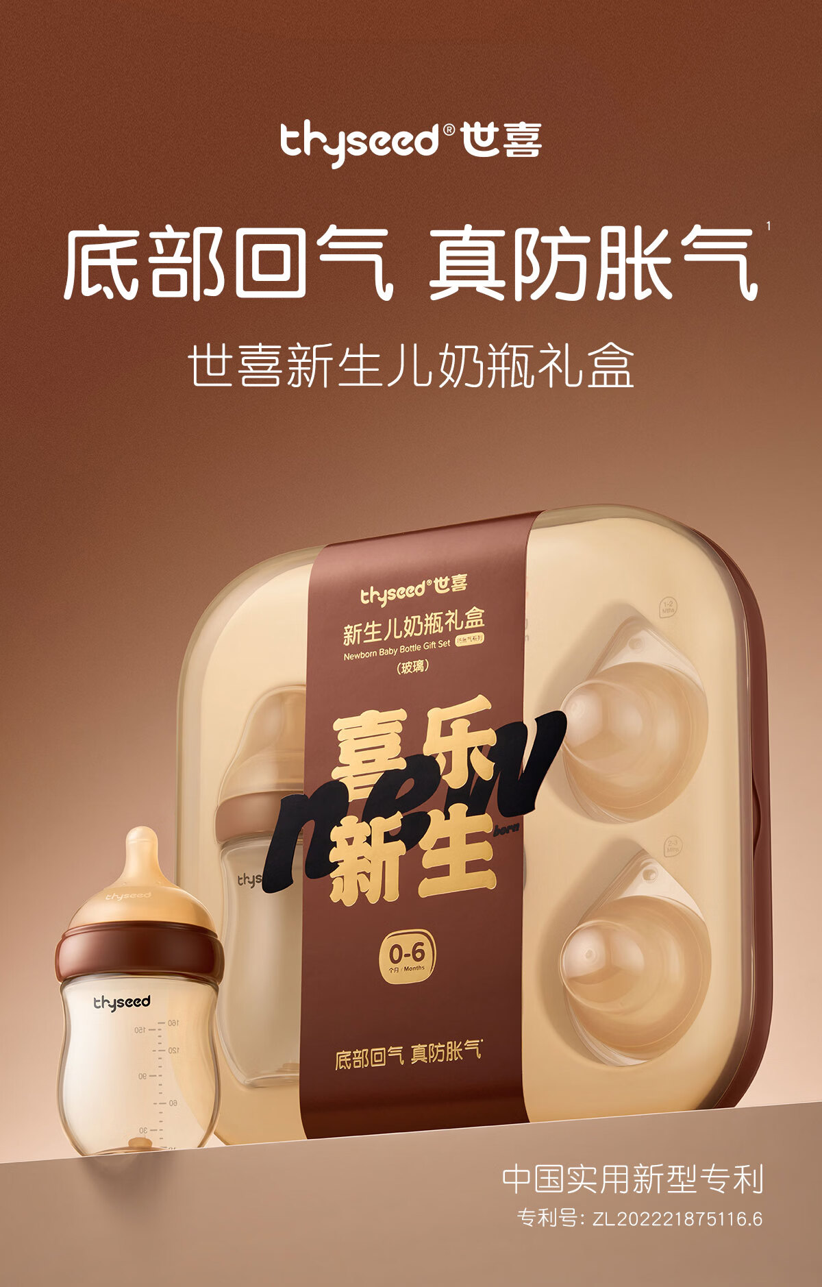 世喜奶瓶新生儿0-6个月防胀气婴儿仿母礼盒款(160ml+240ml)