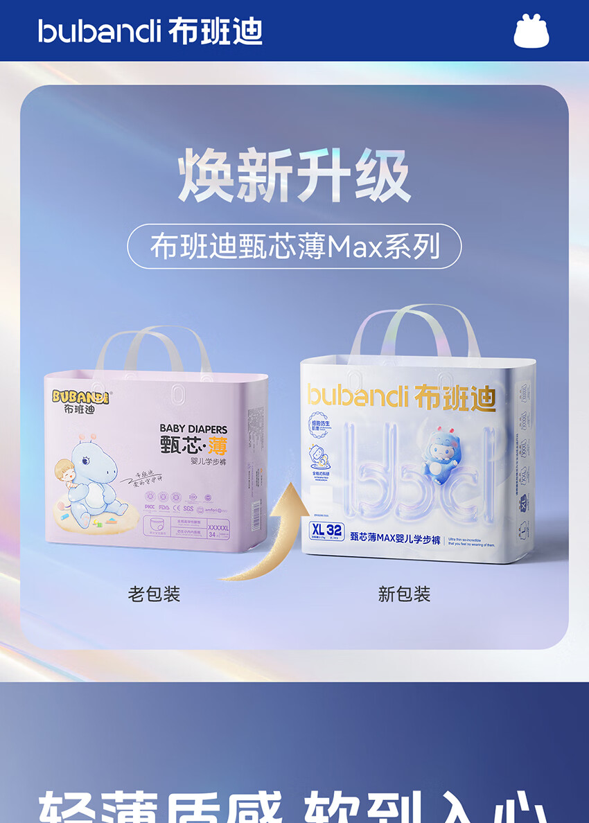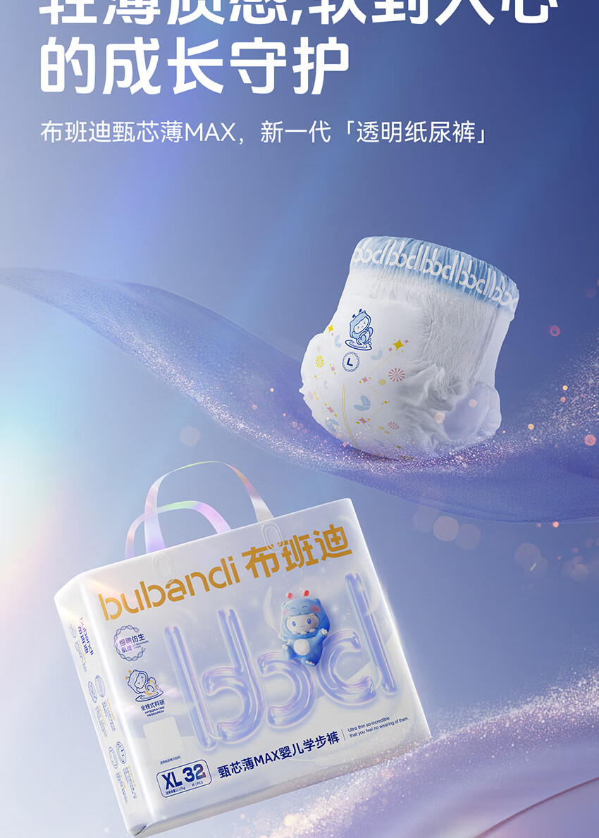 布班迪甄芯薄MAX婴儿拉拉裤3XL56片男女宝宝通用超薄尿不湿