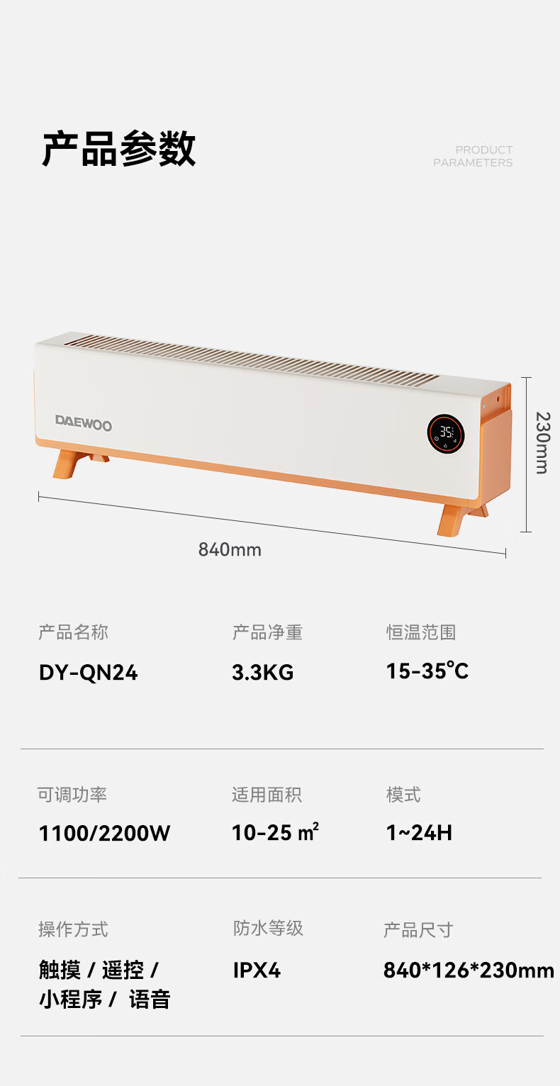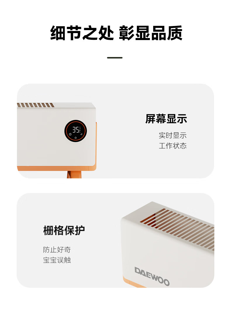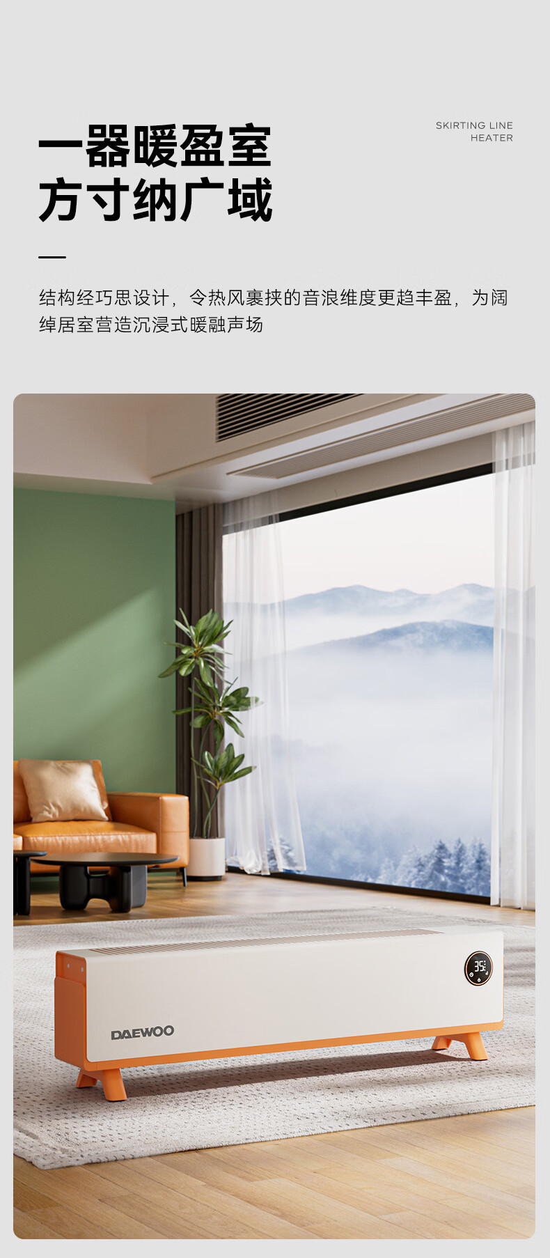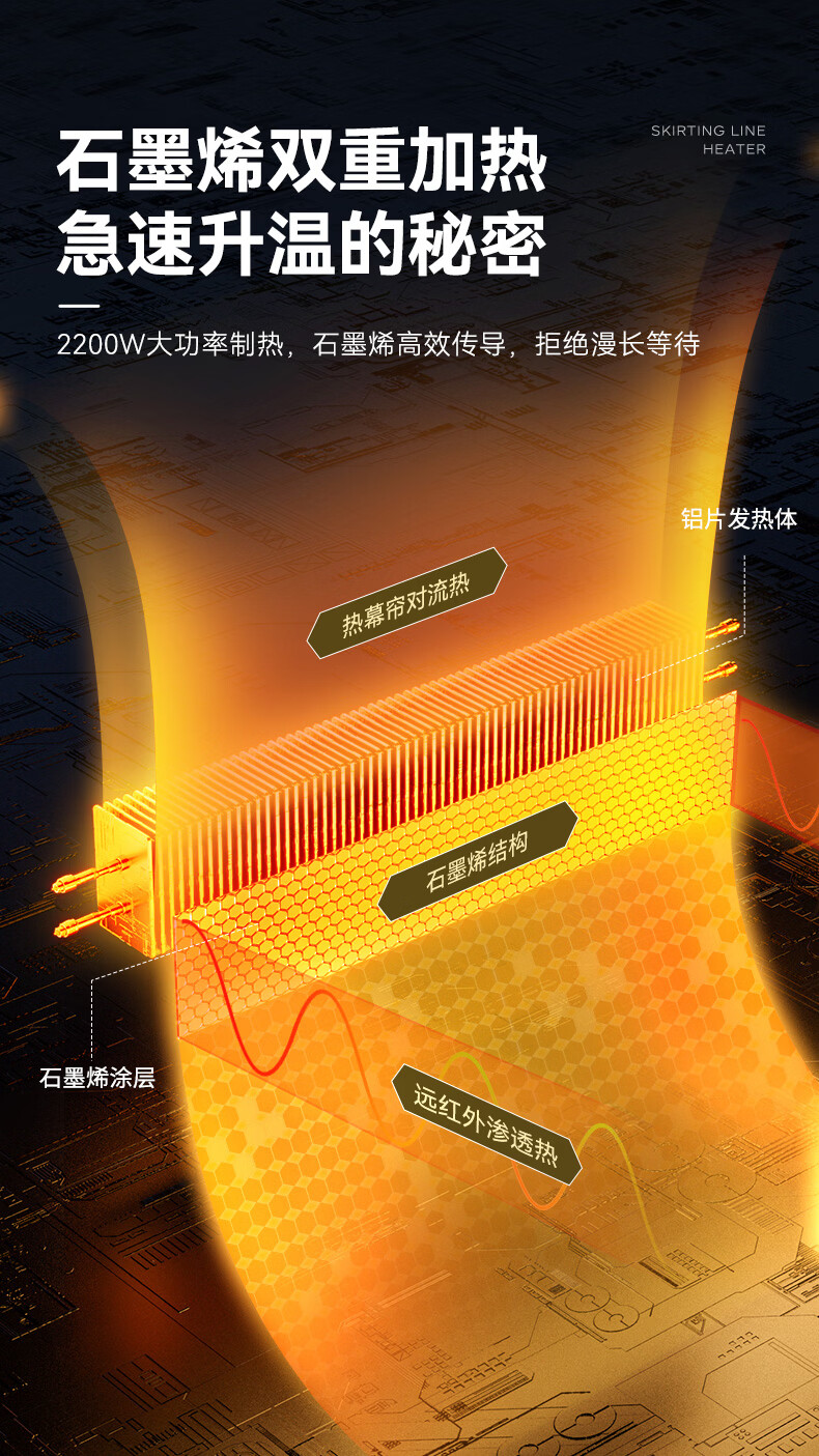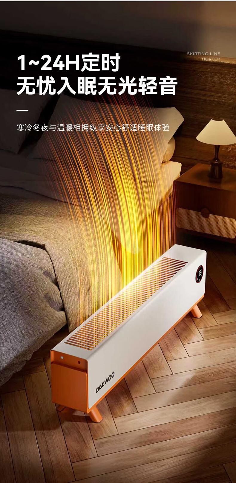 DAEWOO大宇踢脚线取暖器电热家用电暖气大面积速热暖风取暖炉石墨烯升温地暖智能恒温浴室卧室防水50平 【年度新品】石墨烯智能温控,轻音节能